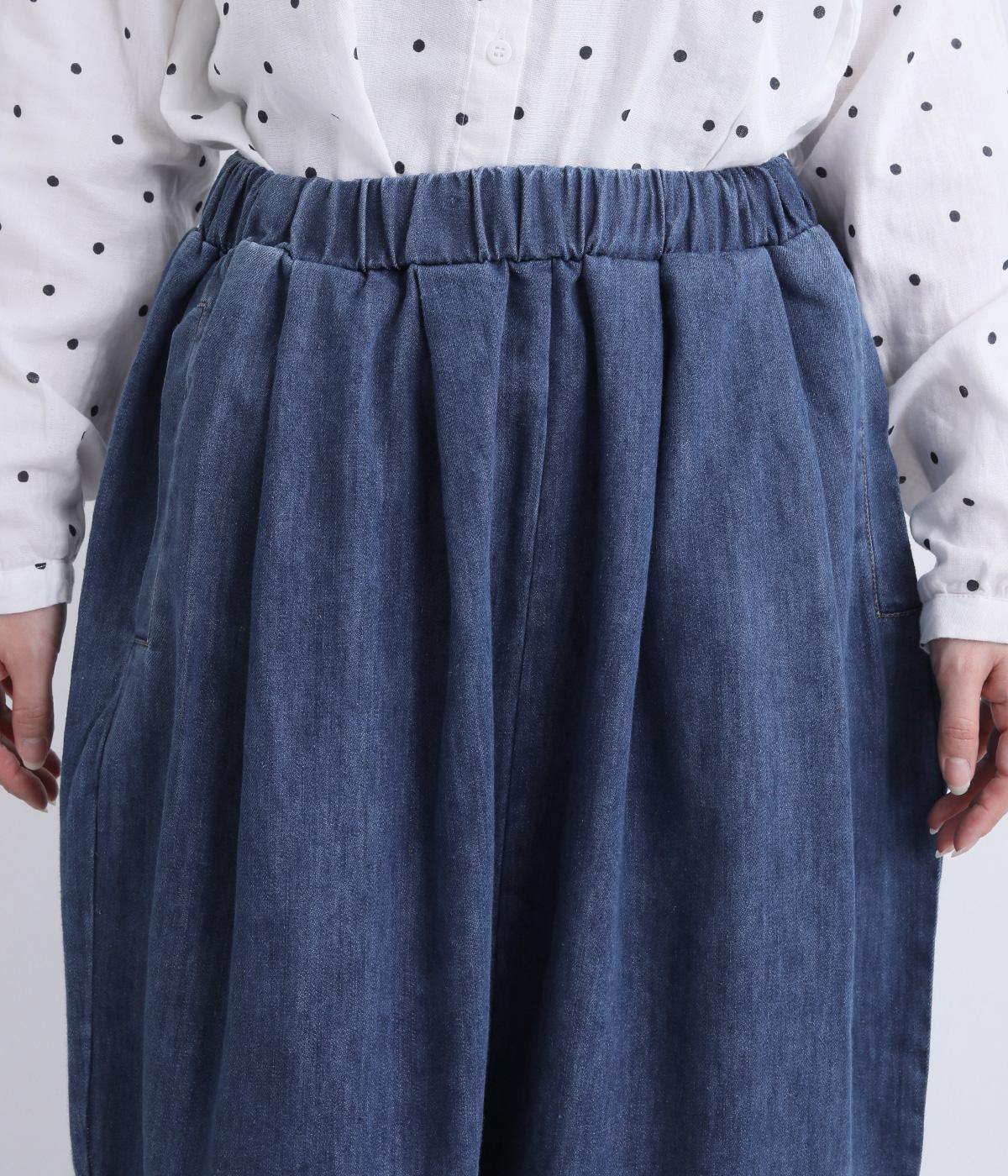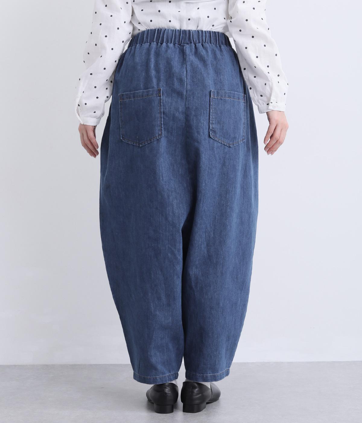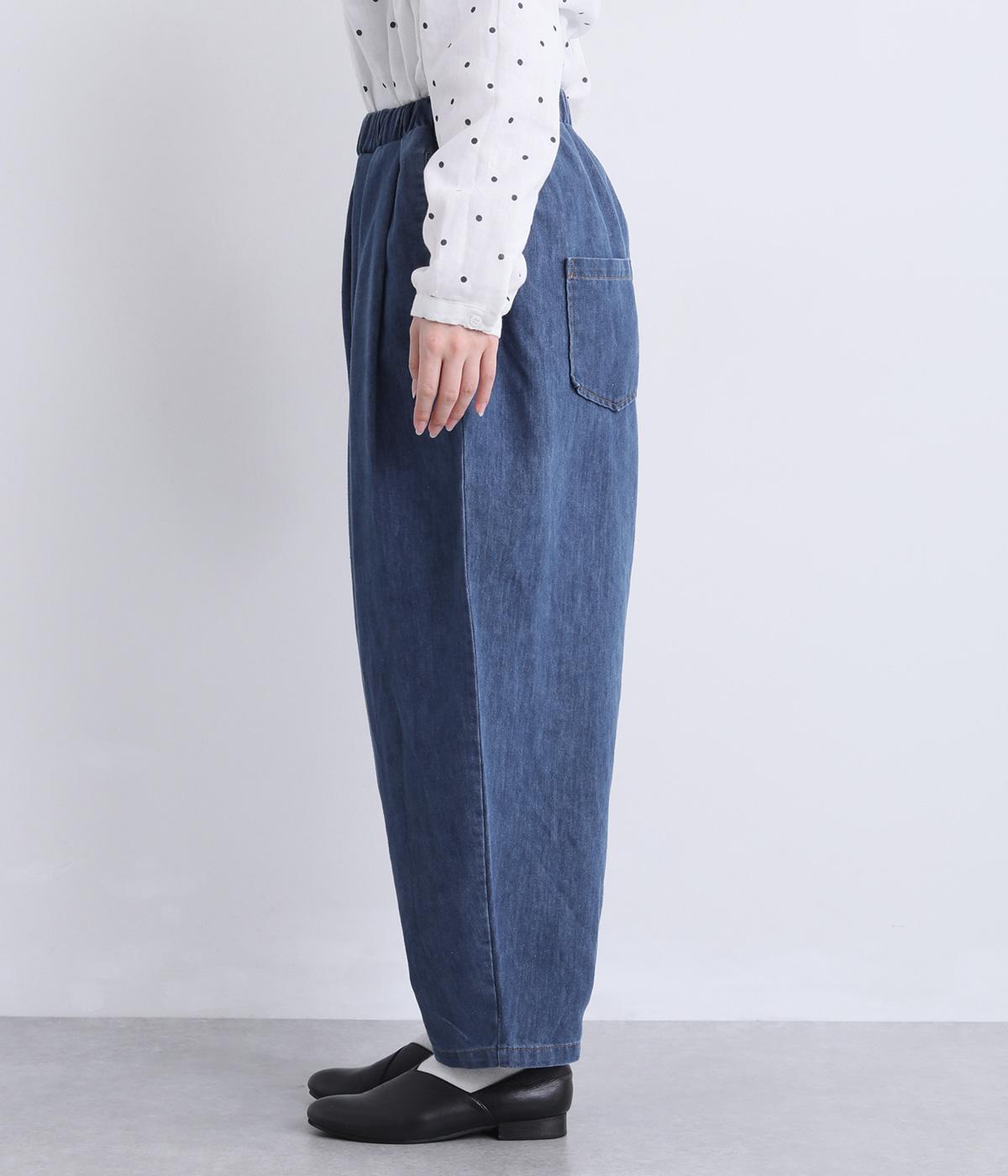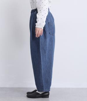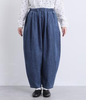 タックを取ってボリュームをもたせたサルエル調のゆったりシルエットが魅力のパンツ。ヒップポケットもやや下げて気負いのないリラックス感を表現。ウエスト総ゴムに内紐入りで着用感もストレスフリーに仕上げました。