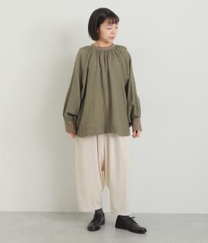 深い股上と、太ももから腰まわりにゆとりを持たせたシルエットが特徴のサルエルパンツ。気になる体のラインを自然に隠しつつ、スタイリッシュで個性のある着こなしを叶えてくれます。ウエストは総ゴム仕様で、フィット感を高める内紐をプラスしました。