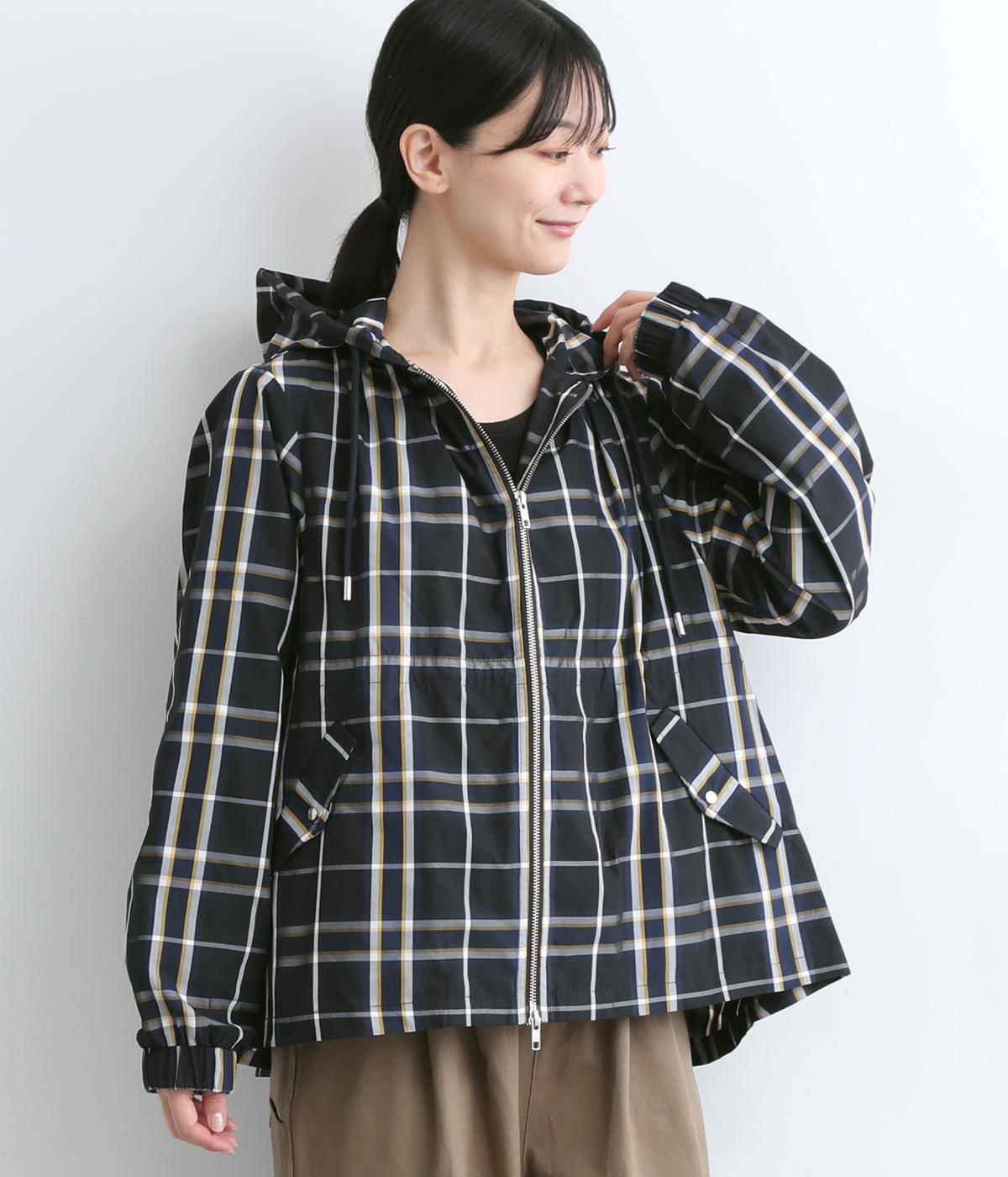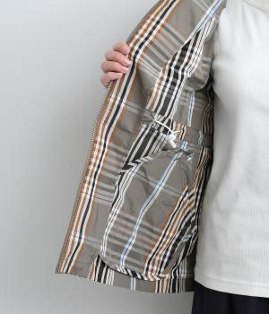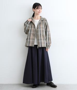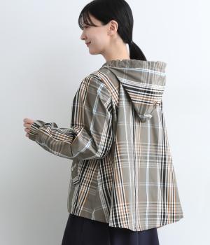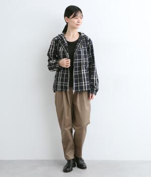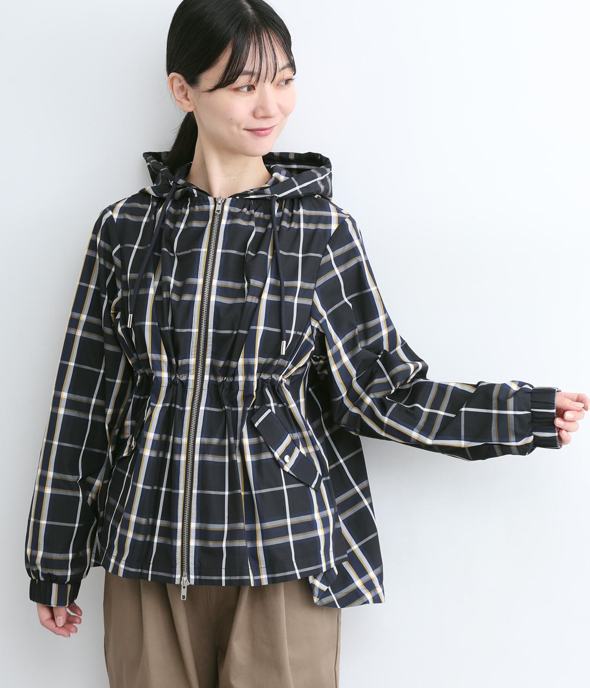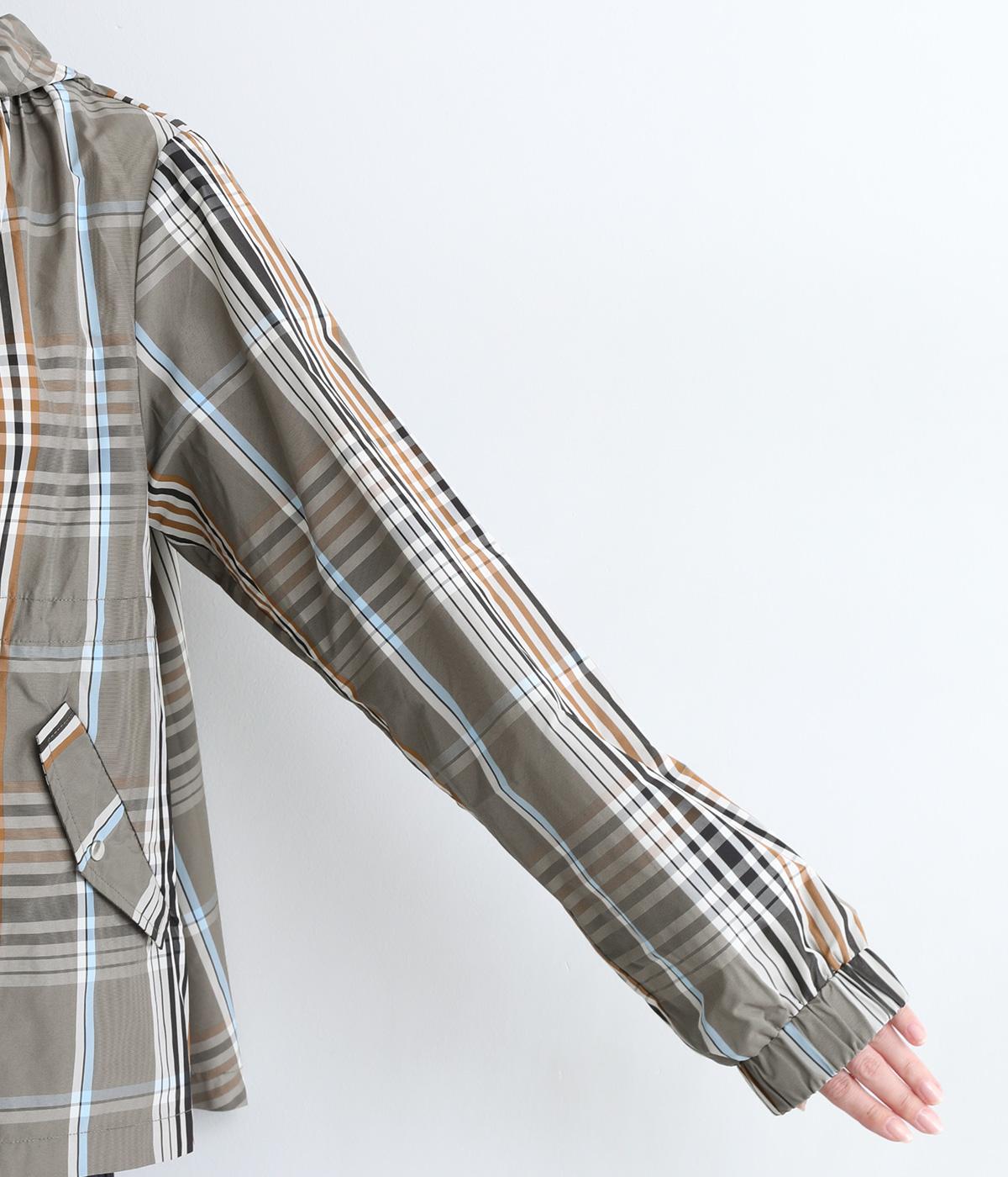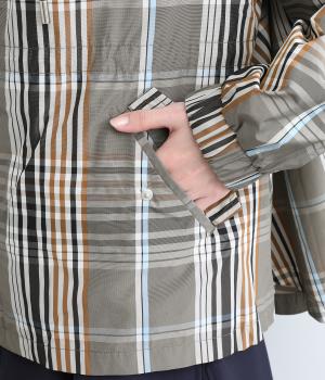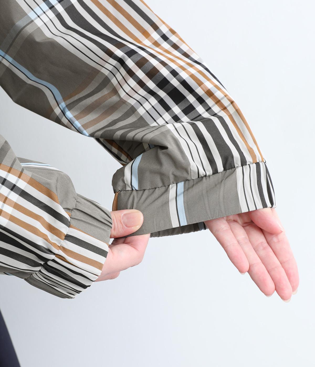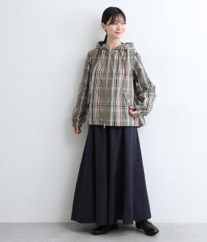 内側に仕込んだドロストコートでシルエットのアレンジがたのしめ、くしゅっとギャザーを寄せることでチェック柄もさらに表情豊かに。袖口はしっかりとしたゴムが入っているので、手仕事時のたくし上げもスムーズ。アウトドアシーンでも活躍します。
