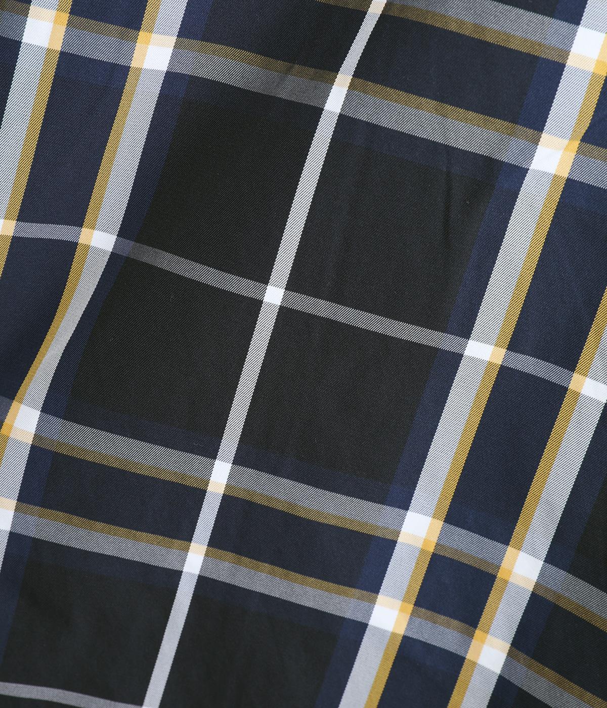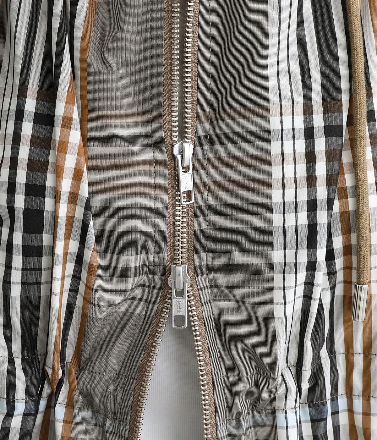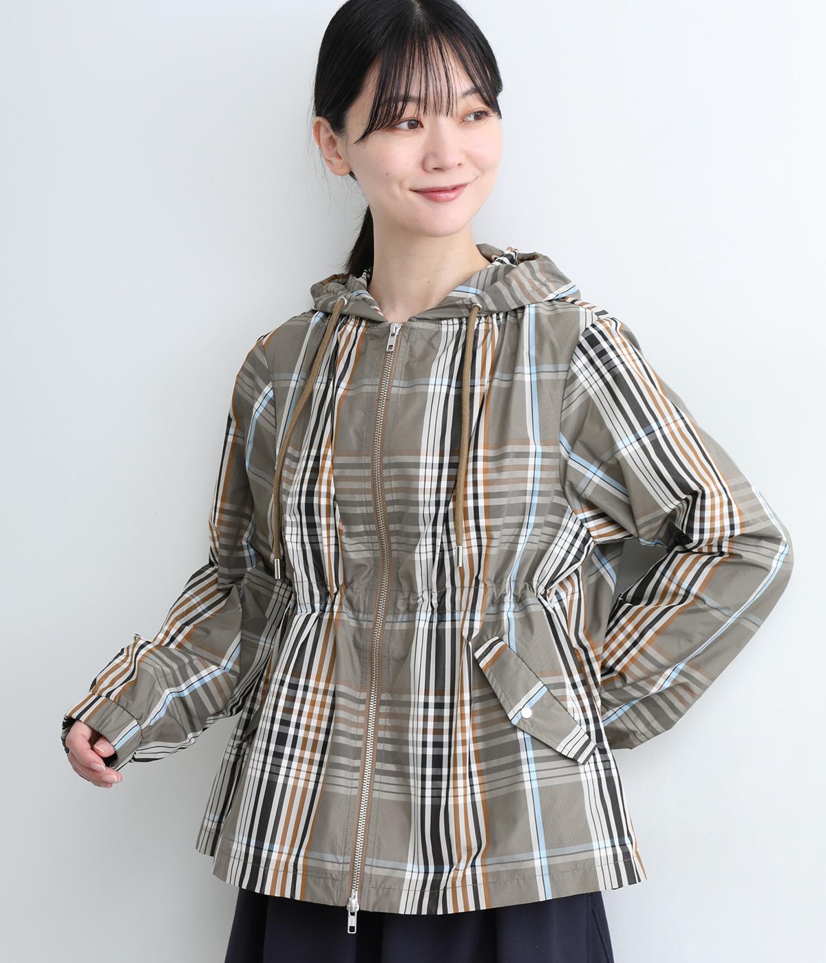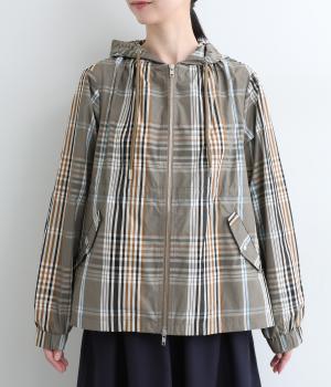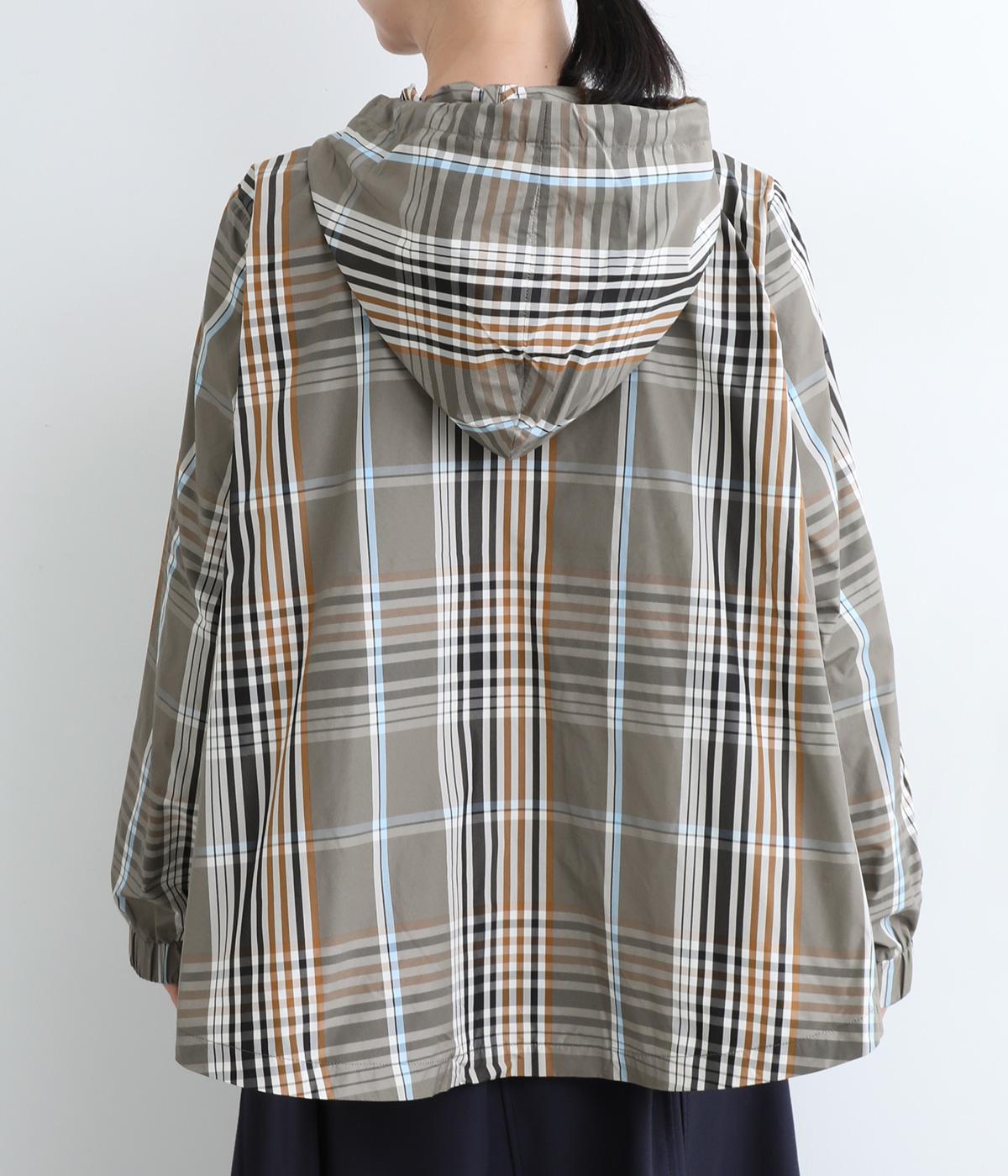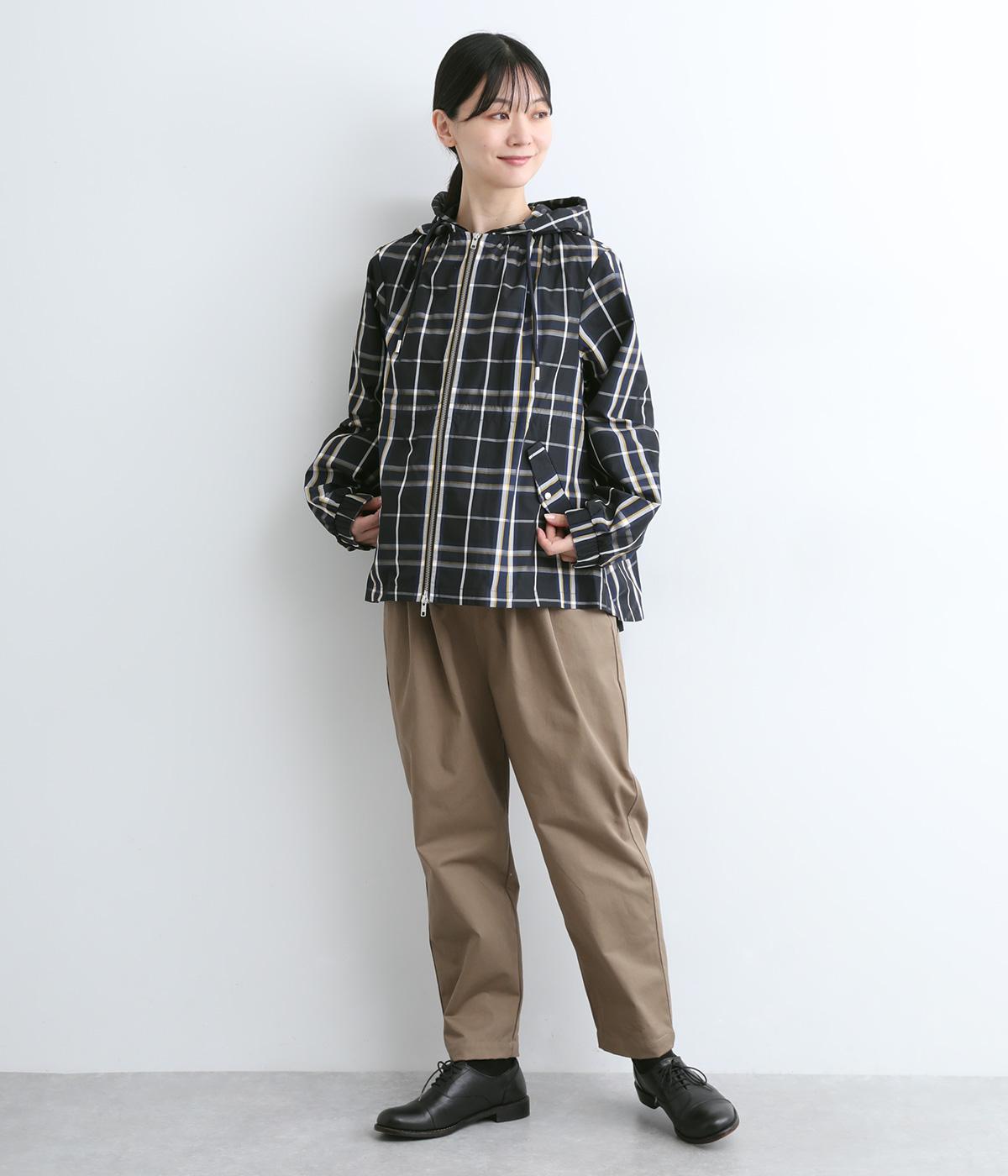 内側に仕込んだドロストコートでシルエットのアレンジがたのしめ、くしゅっとギャザーを寄せることでチェック柄もさらに表情豊かに。袖口はしっかりとしたゴムが入っているので、手仕事時のたくし上げもスムーズ。アウトドアシーンでも活躍します。