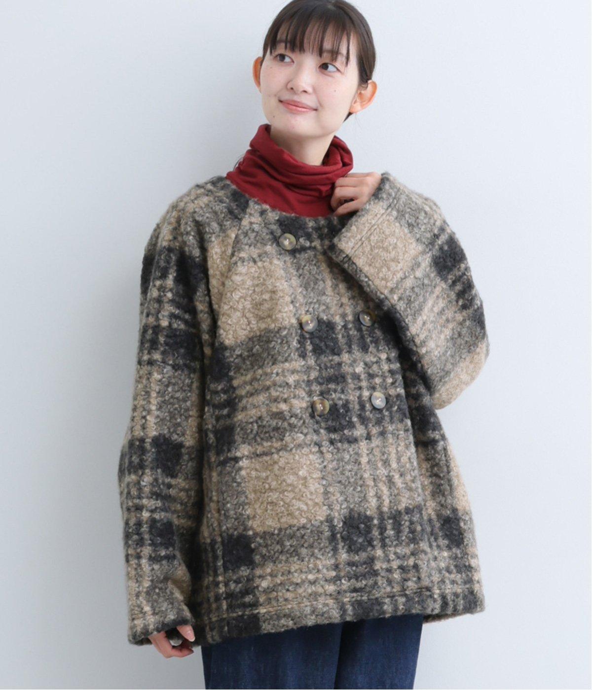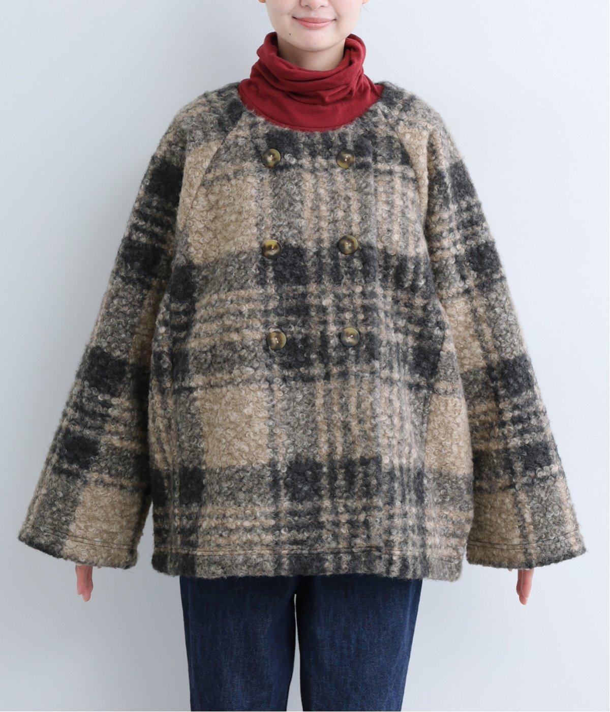 ブークレー ポンチョコート(ベージュチェック-F)