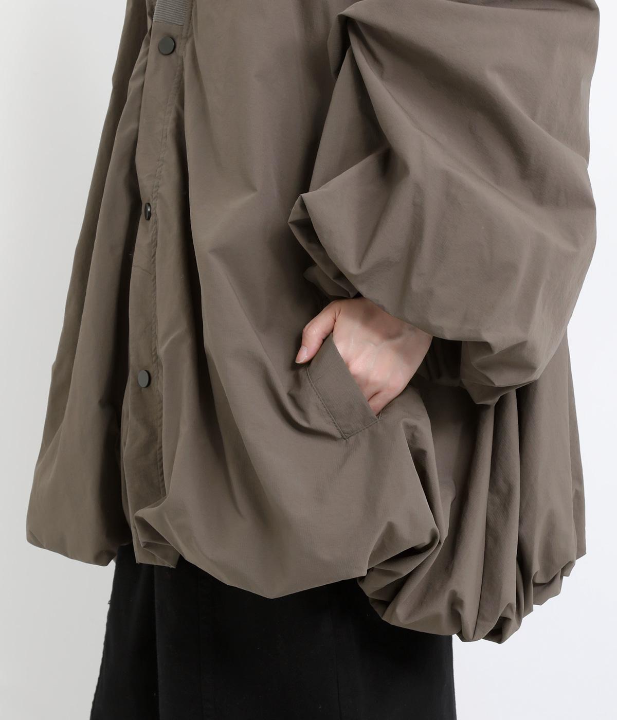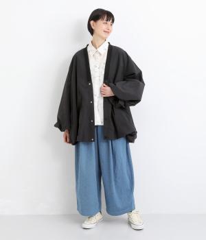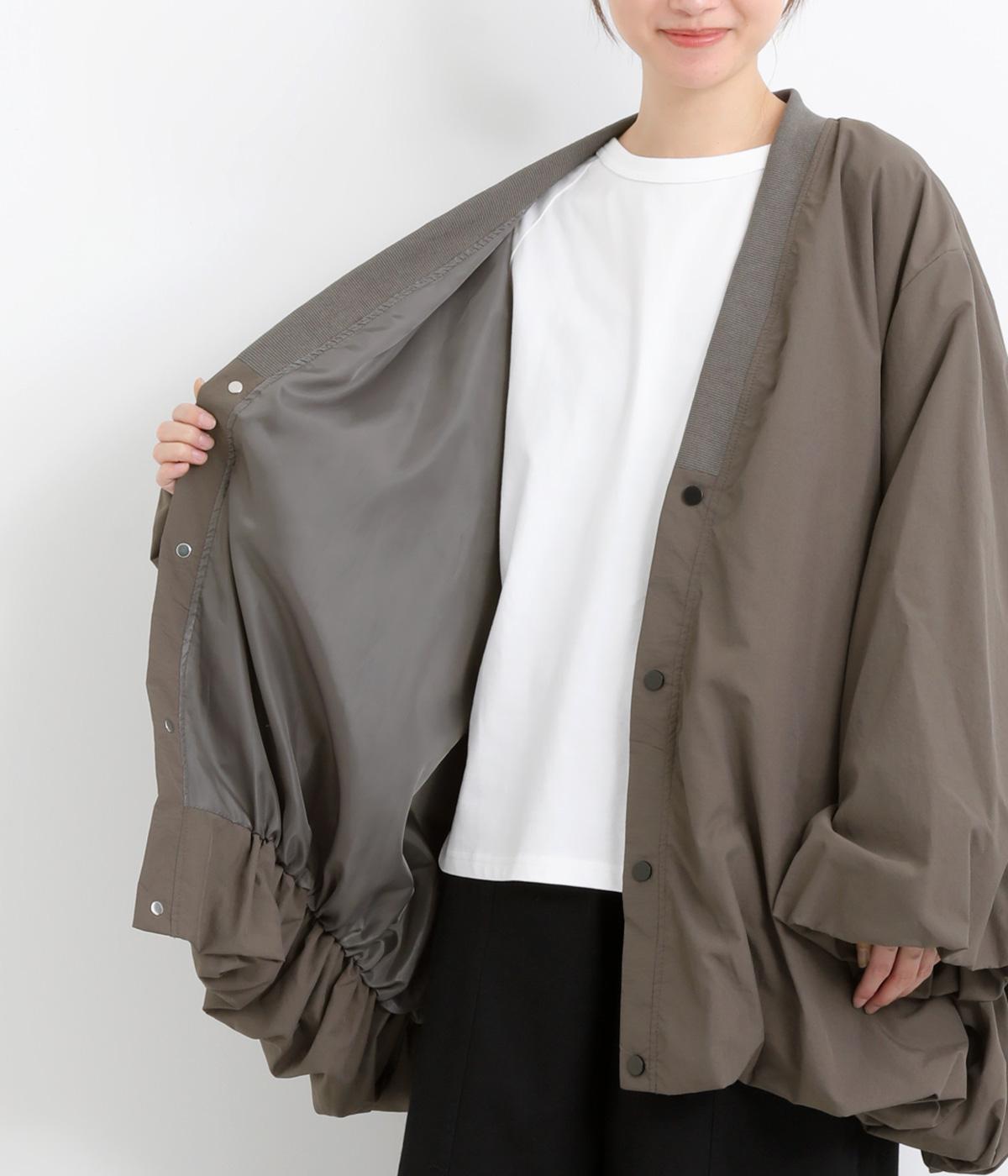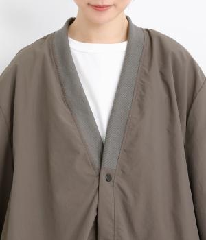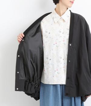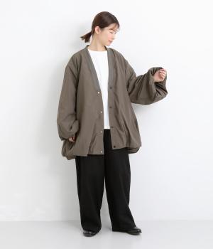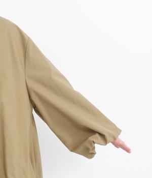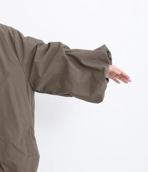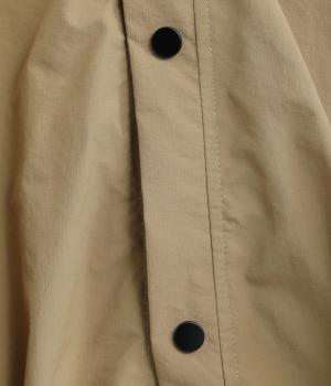 シャリシャリと軽やかなナイロン生地です。たっぷりの生地でボリュームがありながらも510gと軽量で、デイリーに羽織りやすく仕立てました。ポリエステルの滑りのいい裏地付きです。