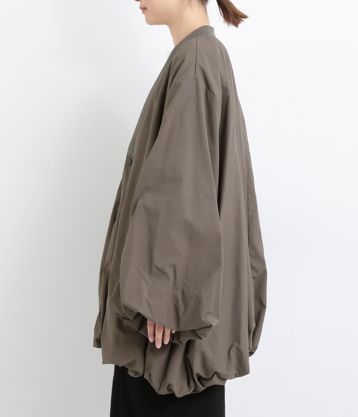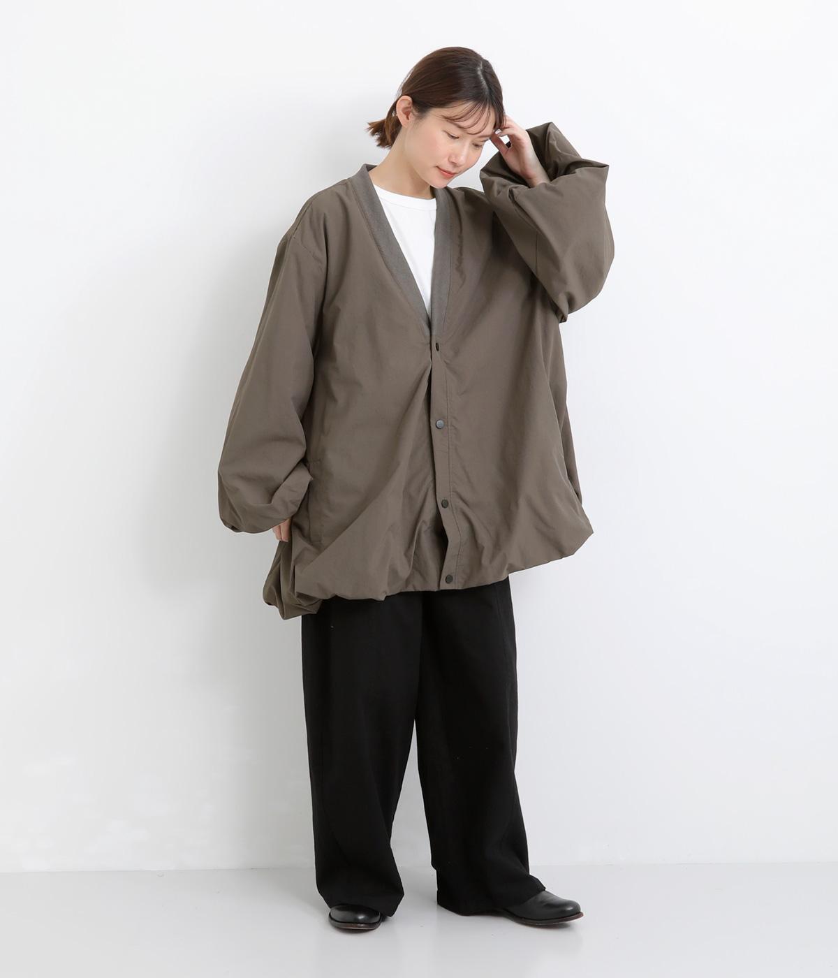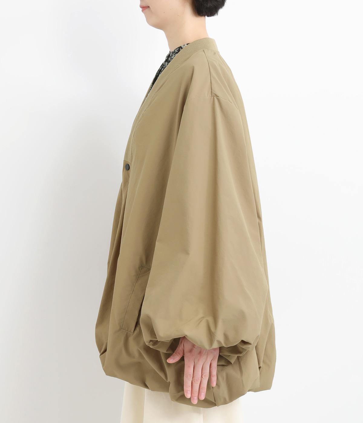 シャリシャリと軽やかなナイロン生地です。たっぷりの生地でボリュームがありながらも510gと軽量で、デイリーに羽織りやすく仕立てました。ポリエステルの滑りのいい裏地付きです。