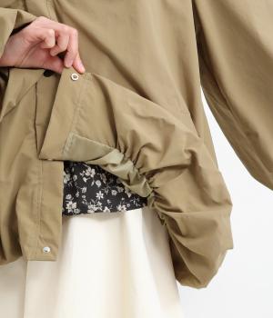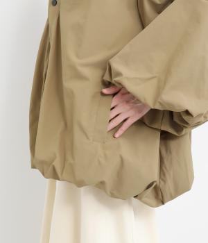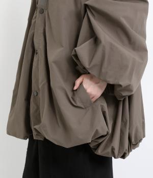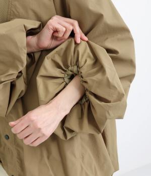 贅沢に生地をつかった存在感たっぷりのアウターです。裾と袖口にはゴムを配し、ふんわりとしたシルエットを描きながら冷たい風の侵入も防ぎます。袖や背面にも優雅なラインを持たせ、横姿もうしろ姿もこなれ感のある雰囲気に仕上げました。