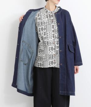 やさしい着心地とゆとりのあるシルエットで、軽やかに羽織れるジャケットです。曲線を描くフラップポケットがさりげないかわいらしさを添えています。背中にほどこしたタックと三角のステッチが、後ろ姿にも豊かな表情をもたらします。