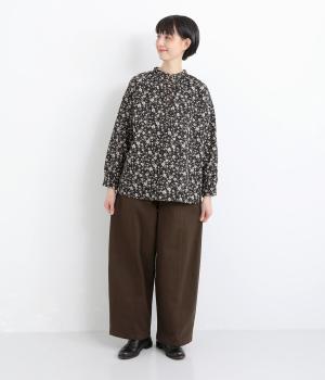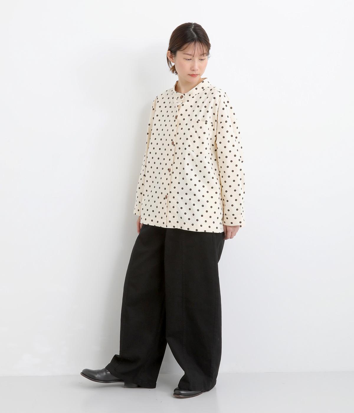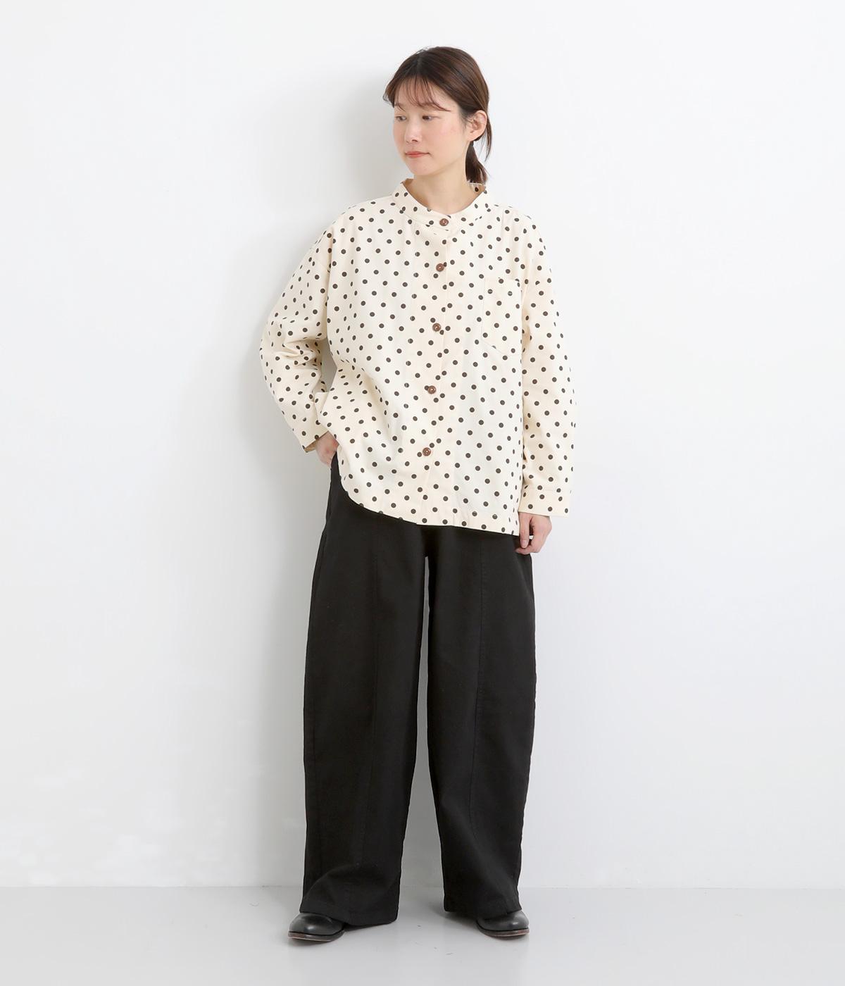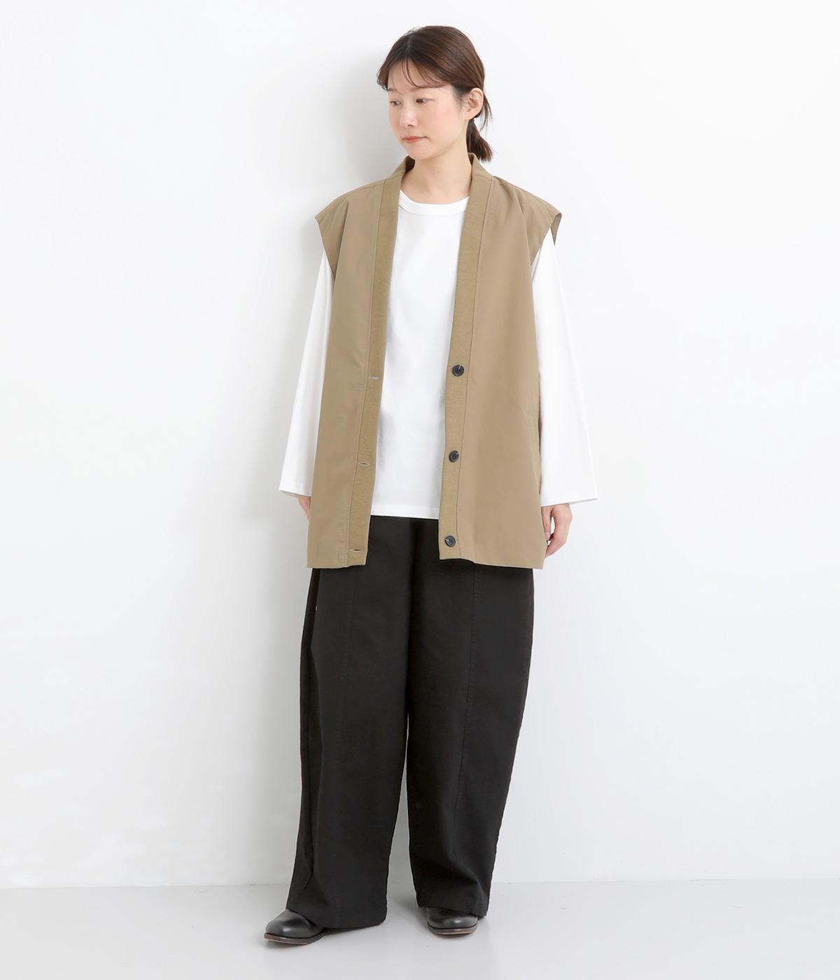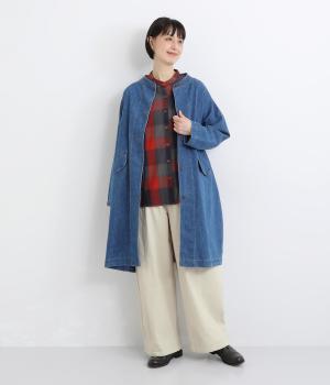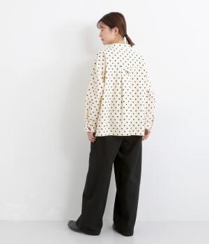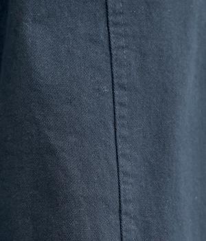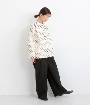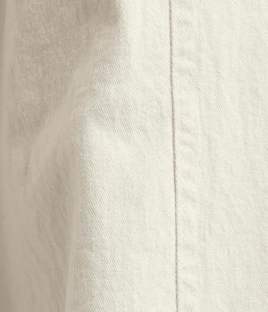 ほどよい厚みのコットンツイル生地を使用しました。しなやかな肌ざわりとナチュラルな風合いが魅力です。やわらかなハリがシルエットをきれいに保ちます。
