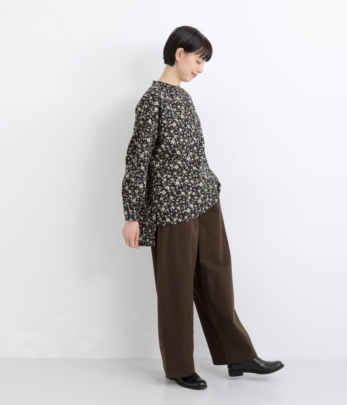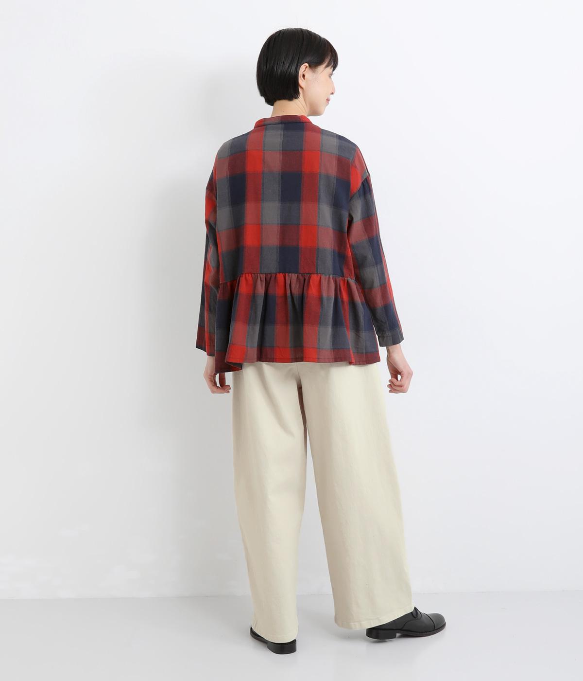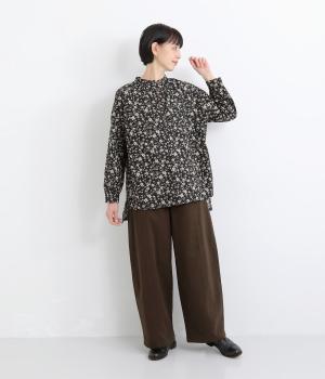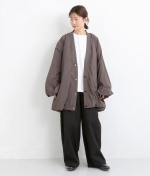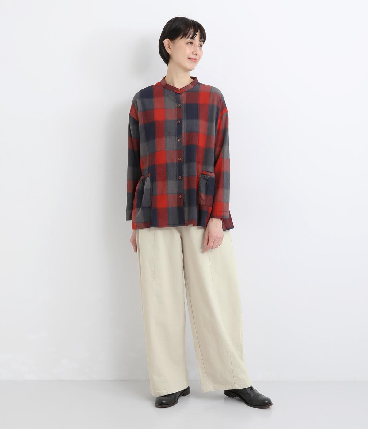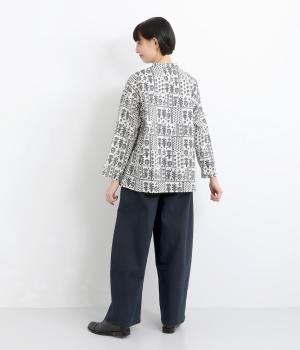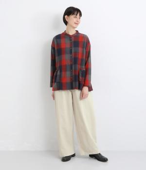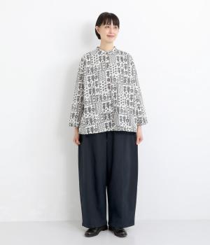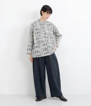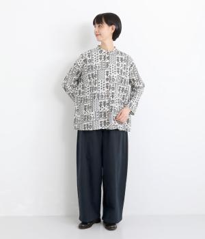 ほどよい厚みのコットンツイル生地を使用しました。しなやかな肌ざわりとナチュラルな風合いが魅力です。やわらかなハリがシルエットをきれいに保ちます。