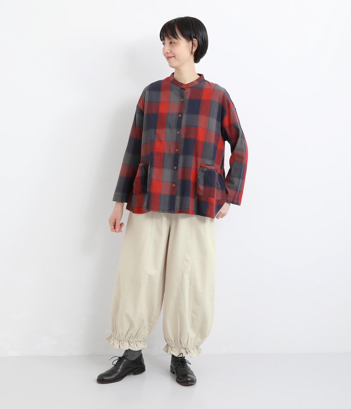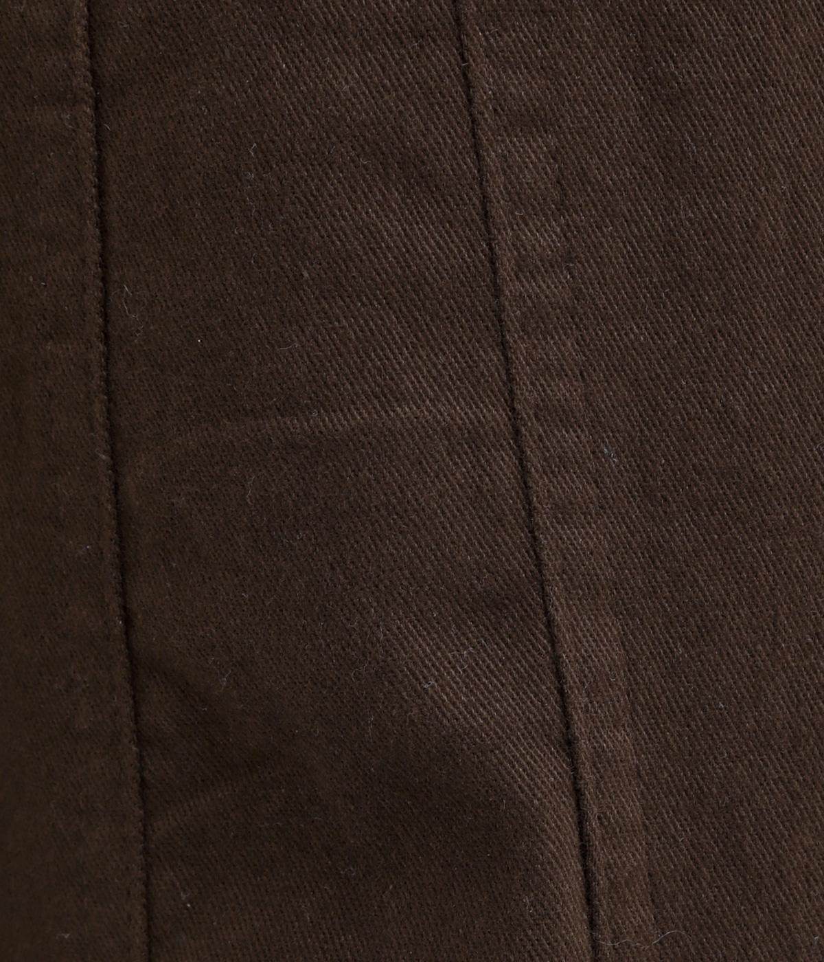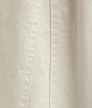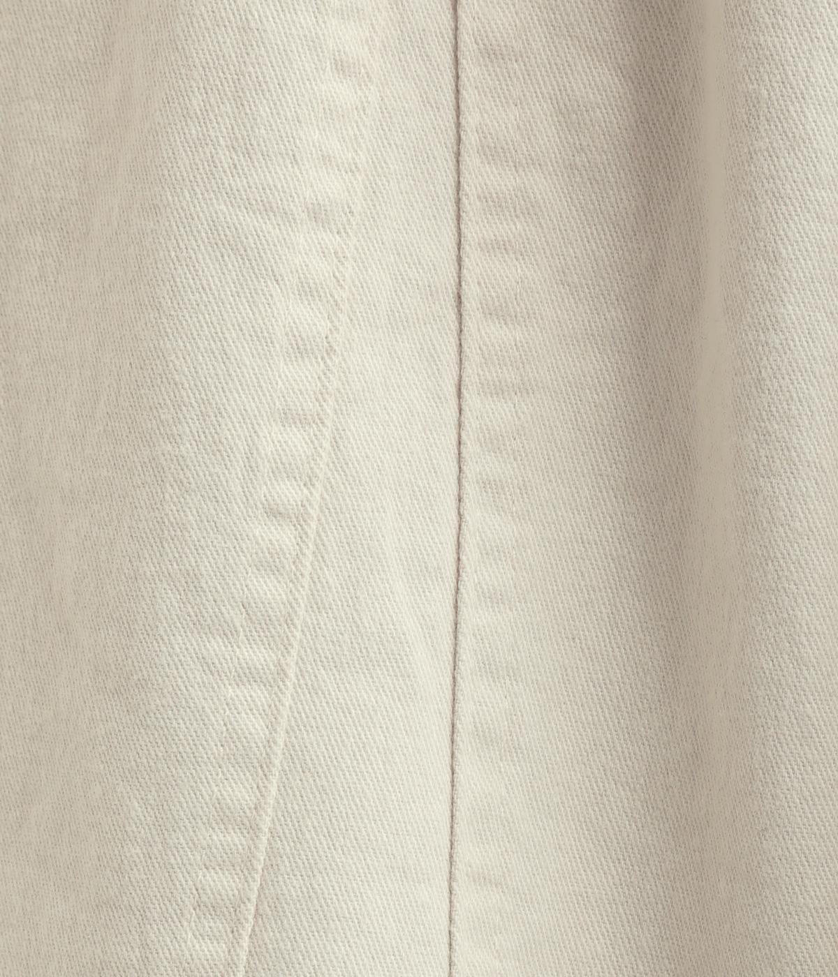 ほどよい厚みのコットンツイル生地を使用しました。しなやかな肌ざわりとナチュラルな風合いが魅力です。やわらかなハリがシルエットをきれいに保ちます。