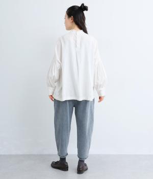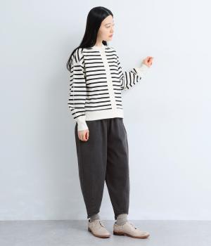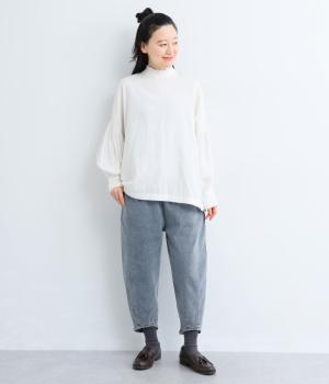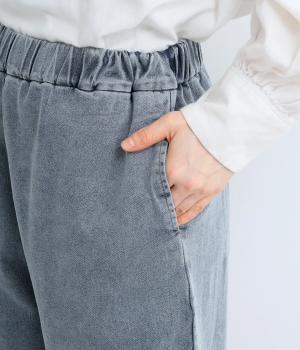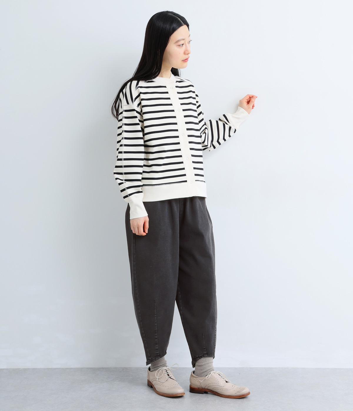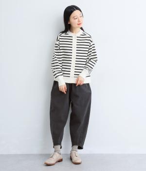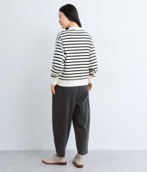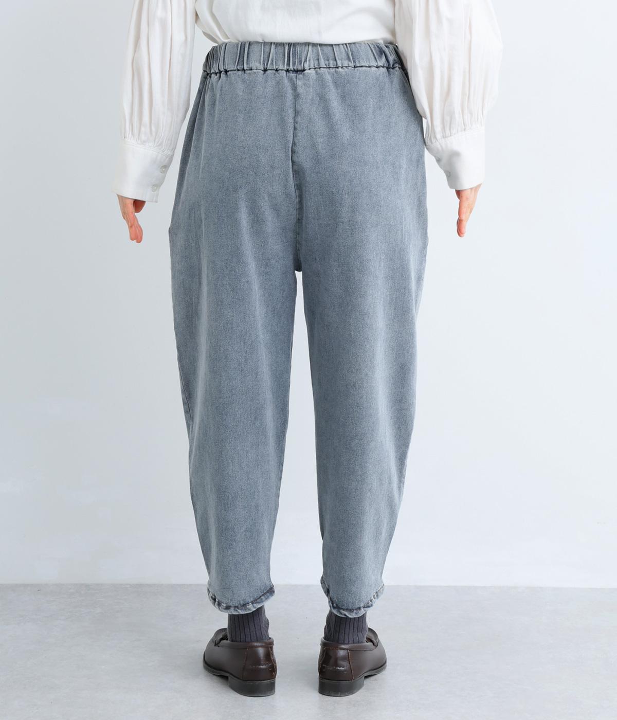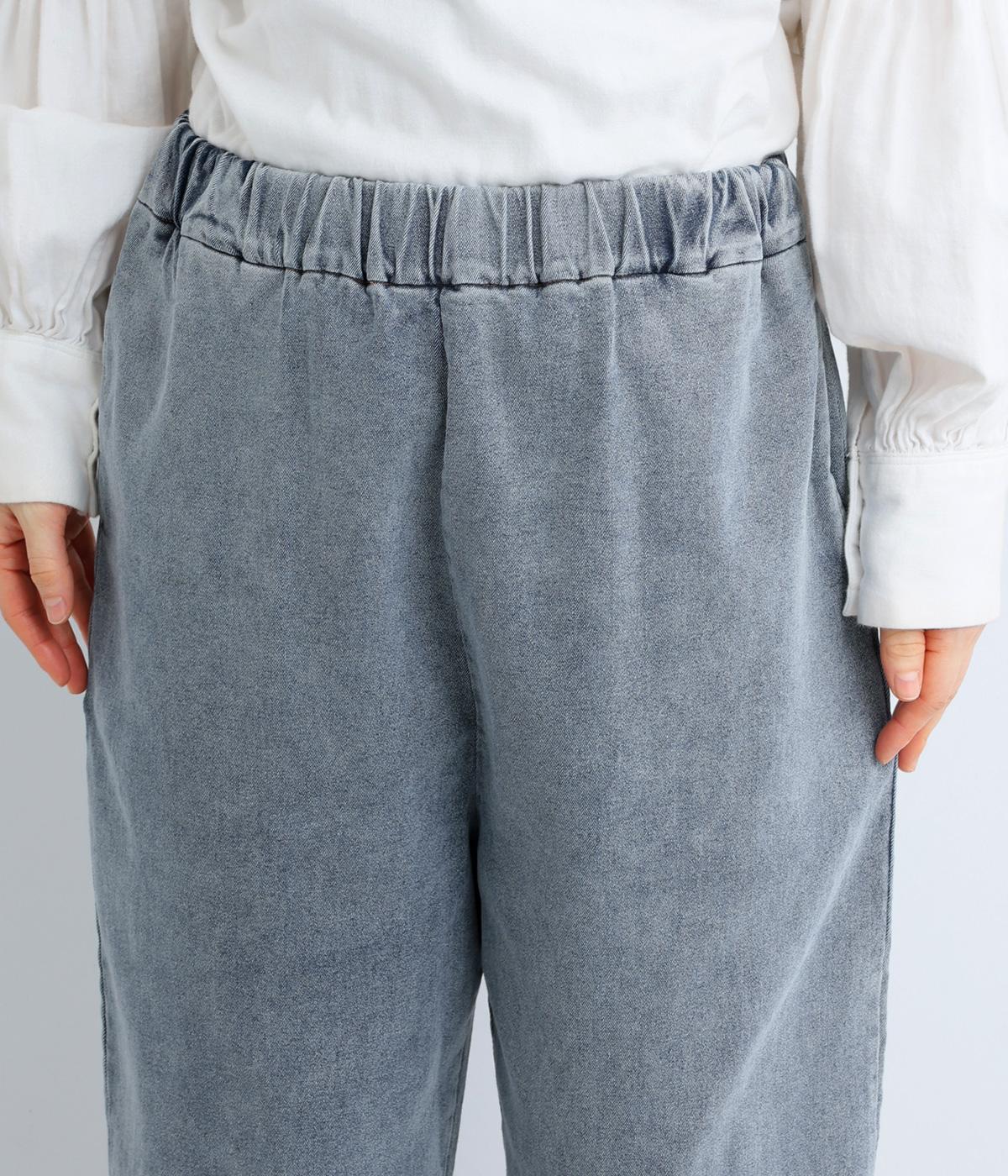 ヴィンテージライクなほどよい色落ち感が特徴的なパンツです。裾にダーツを入れて、足元をすっきりと仕上げた好バランスなシルエット。ウエストはお腹にほどよくフィットする総ゴム仕様で、内紐で調節もできます。