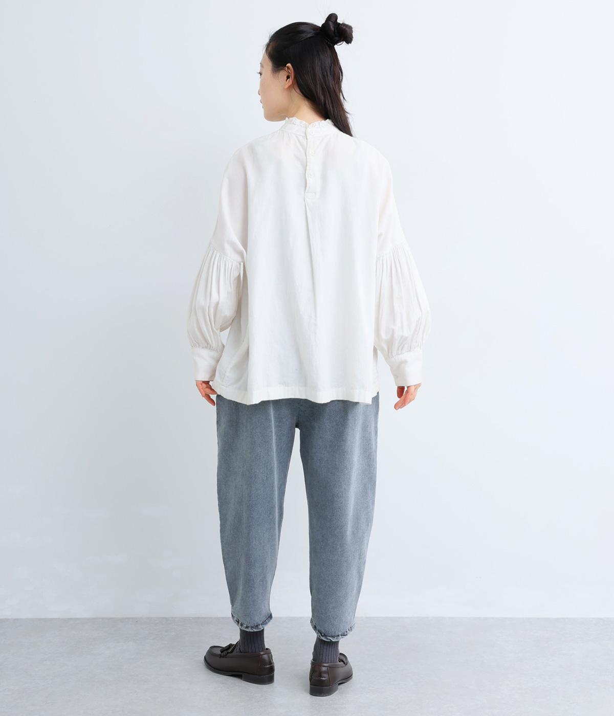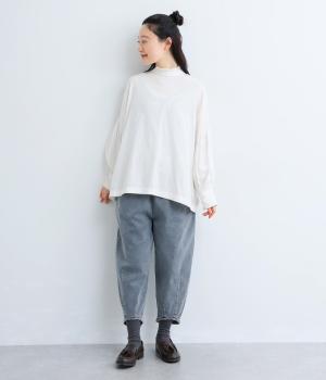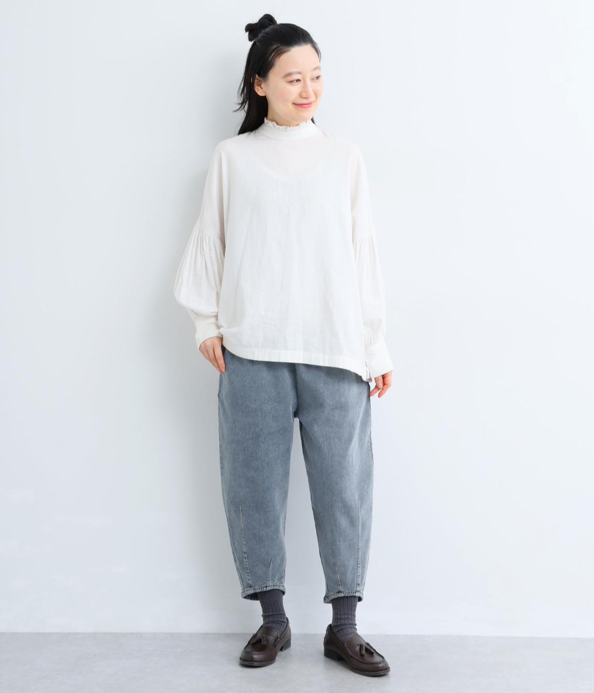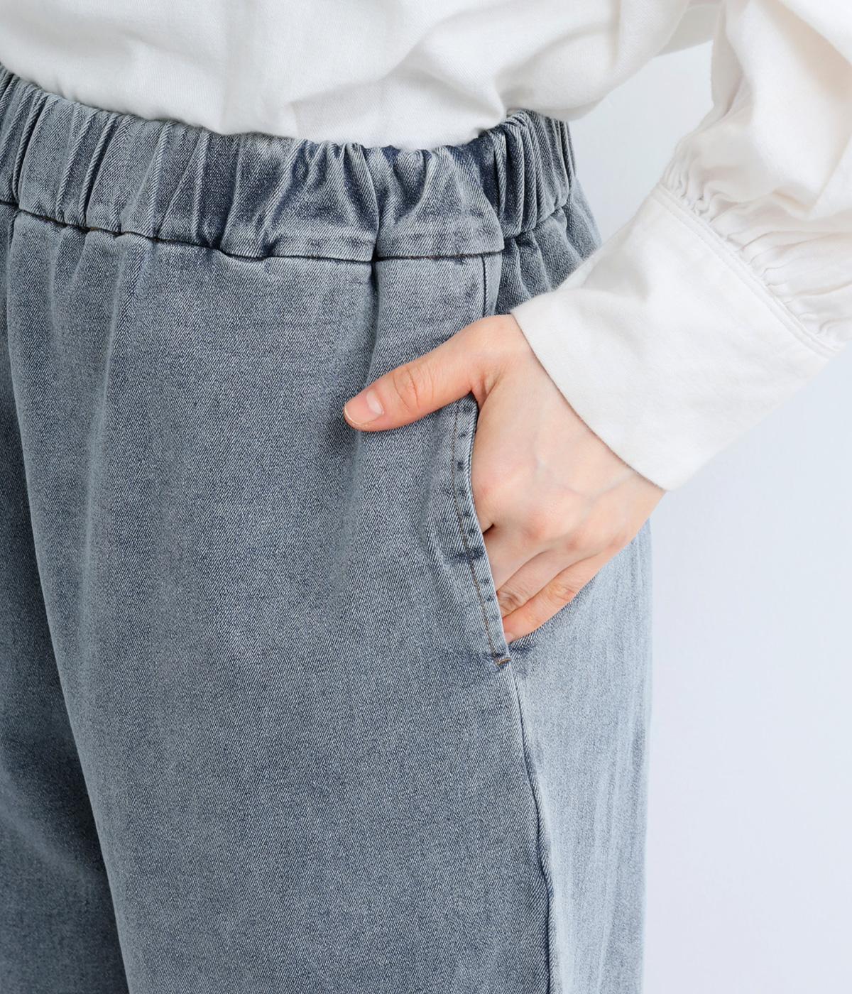ソフトな質感のコットン混紡デニムを使用しています。ストレッチ素材なので動きやすく、ロングシーズン穿けるほどよい肉感も魅力です。