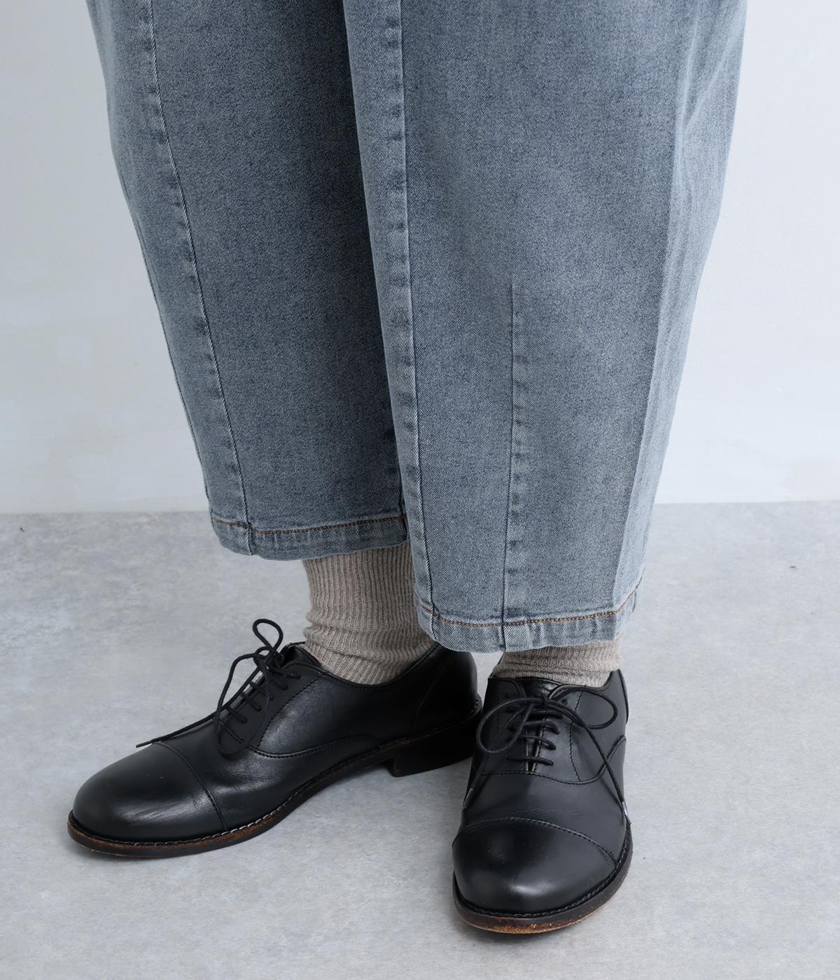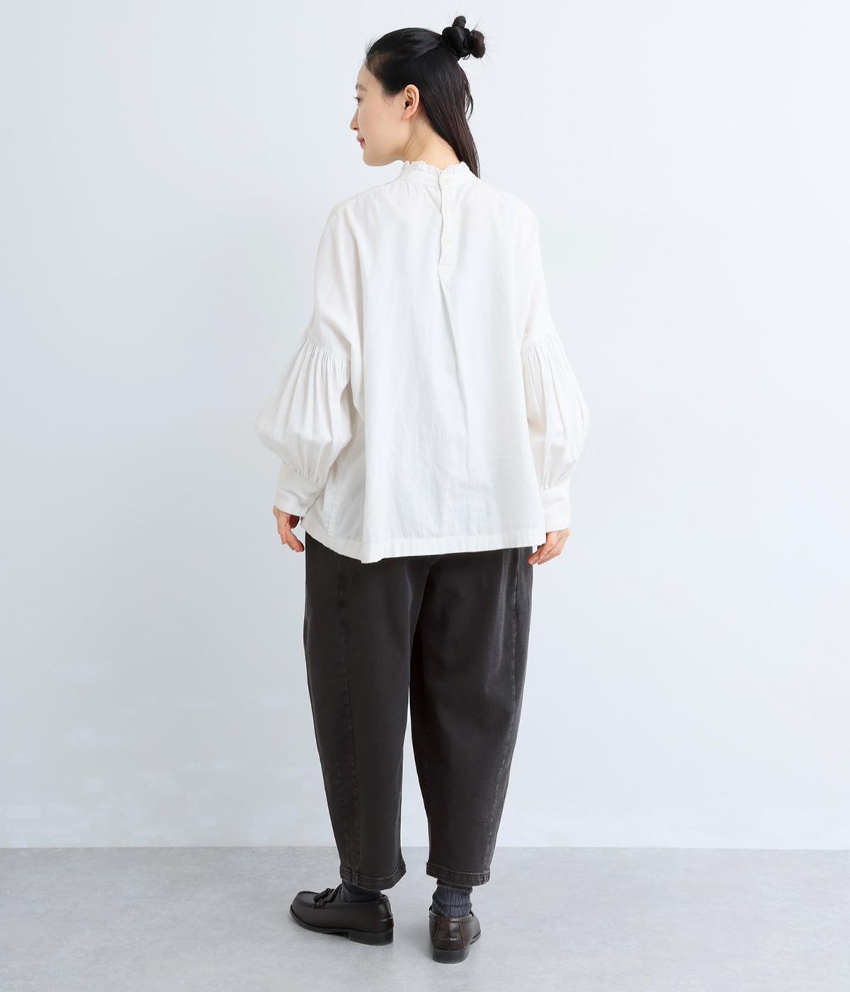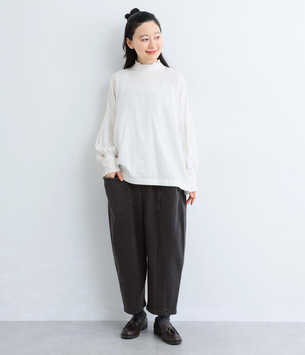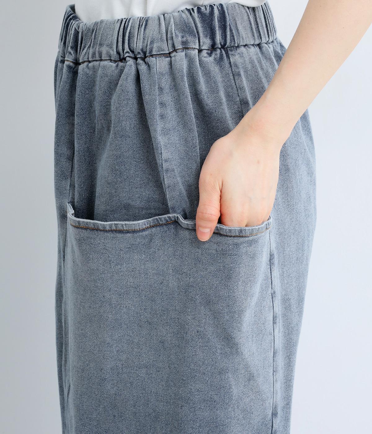 ソフトな質感のコットン混紡デニムを使用しています。ストレッチ素材なので動きやすく、ロングシーズン穿けるほどよい肉感も魅力です。