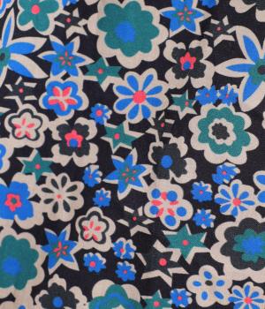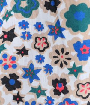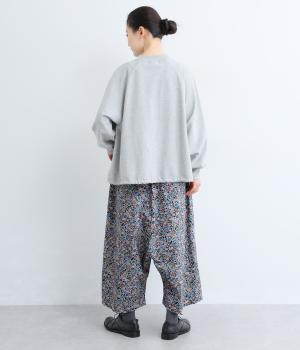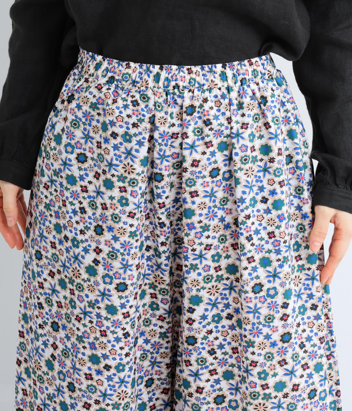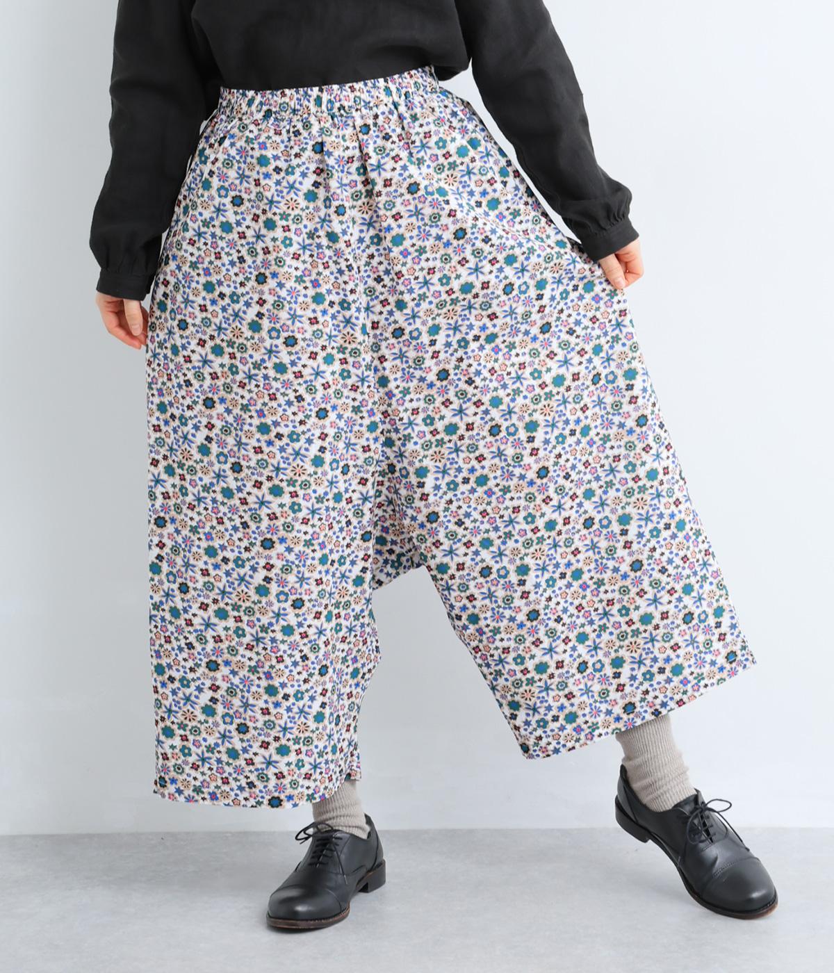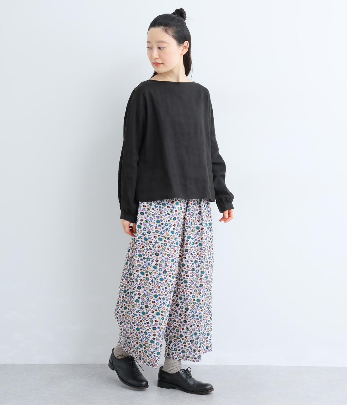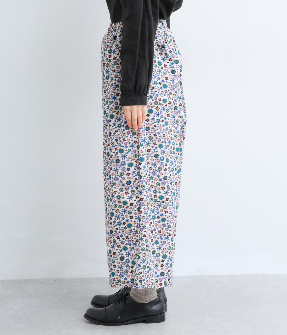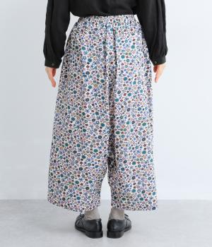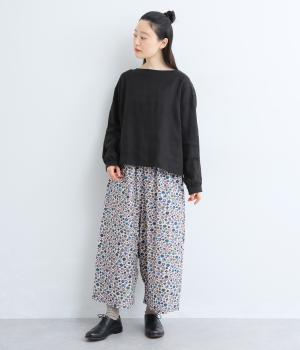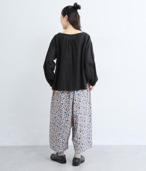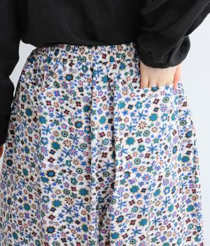 ややハリのある、さらりとした質感のコットン素材を使用しました。色とりどりのアンティークフラワーが、大人かわいいスタイリングに仕上げてくれます。