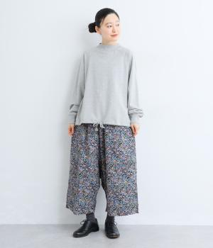 股上を深めに取った、ふわりと立体感のあるシルエット。足のラインを拾いにくく、リラクシーなはき心地もポイントです。ウエストはフィットが心地よい総ゴム仕様で、内側に通した紐で微調整も可能です。