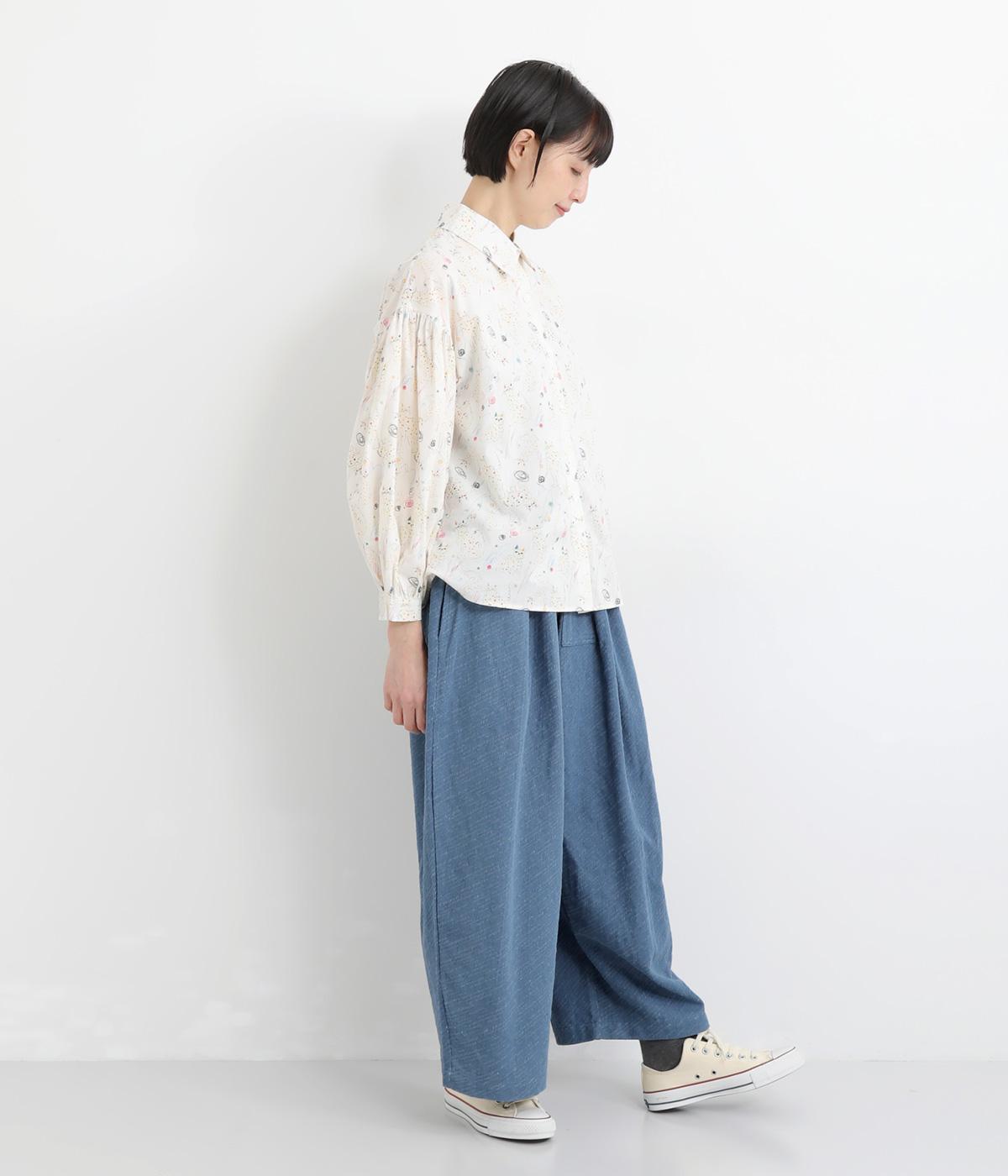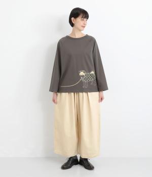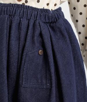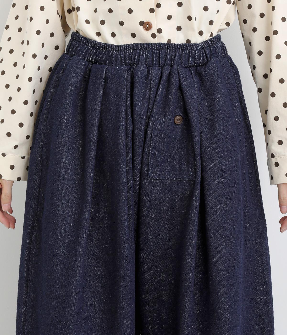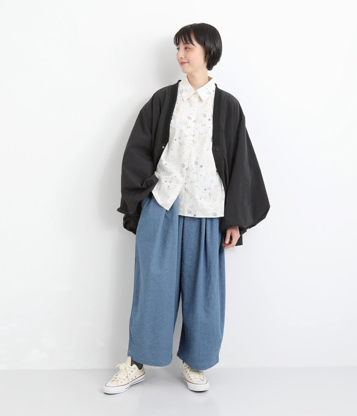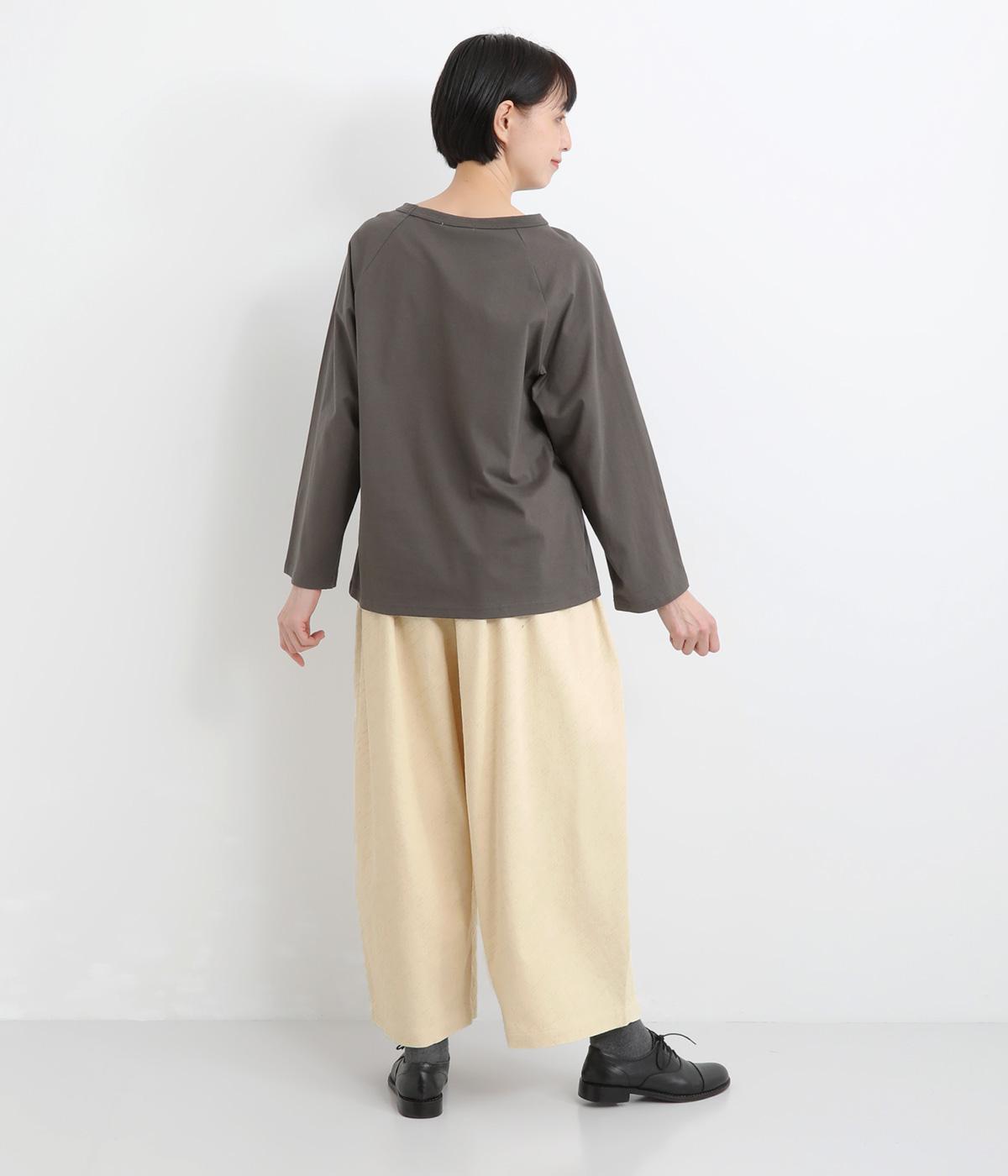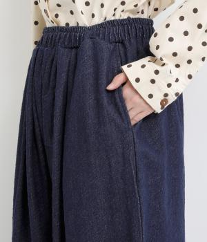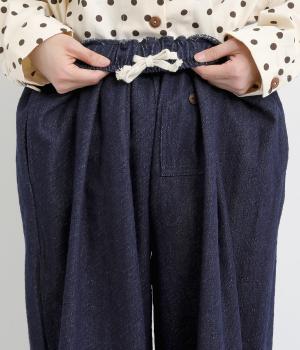 ニュアンスのある表情で、カジュアルにもきれいめにも着こなせるパンツです。脚のラインを拾いにくいワイドシルエットを、すっきりとした丈感で仕上げました。フロントにほどこしたボタン付きのミニポケットがさりげないアクセントになっています。