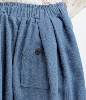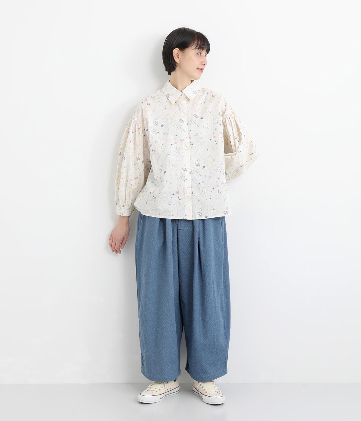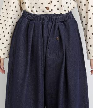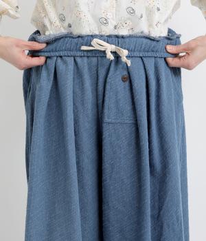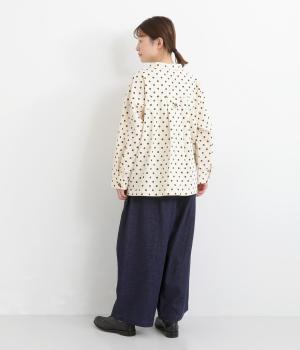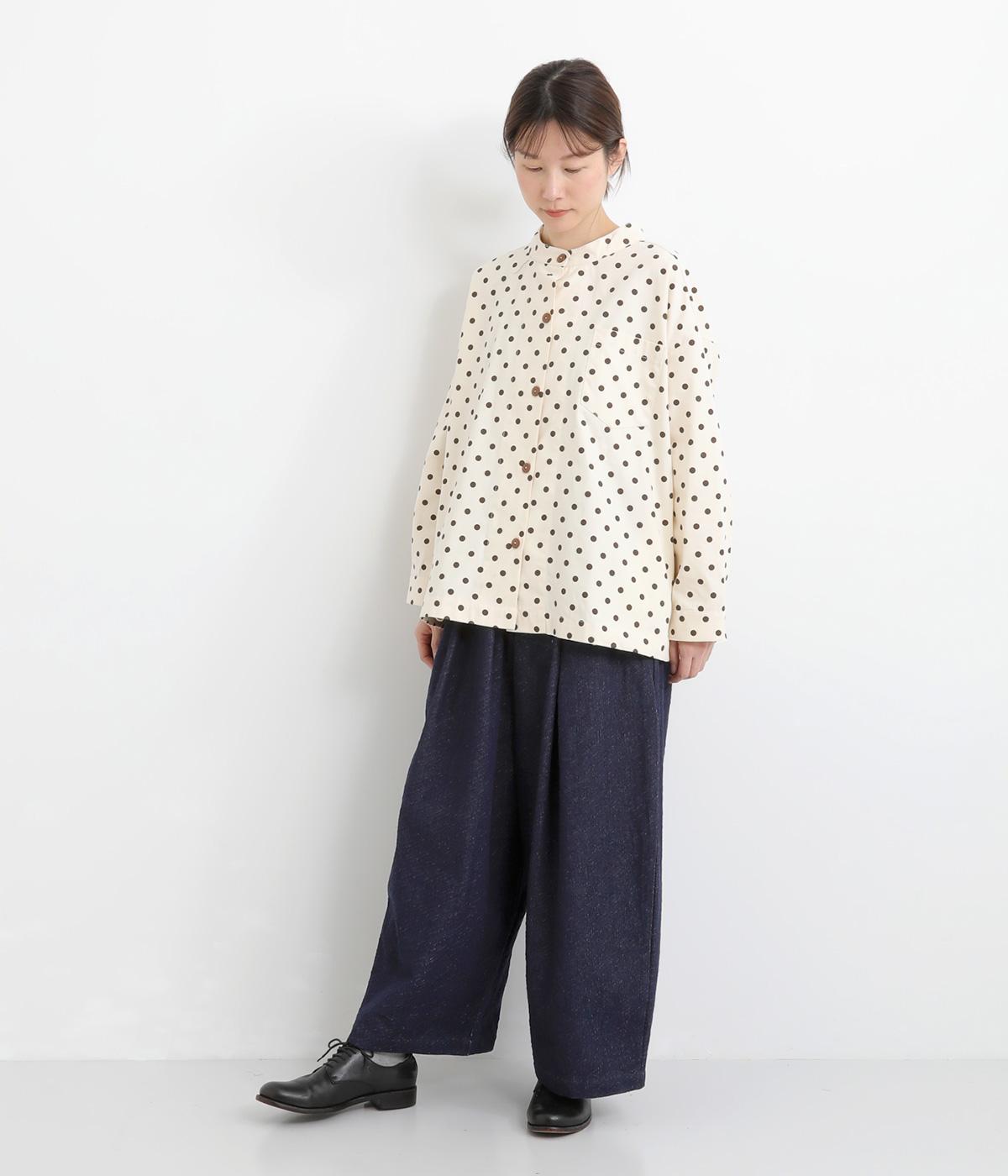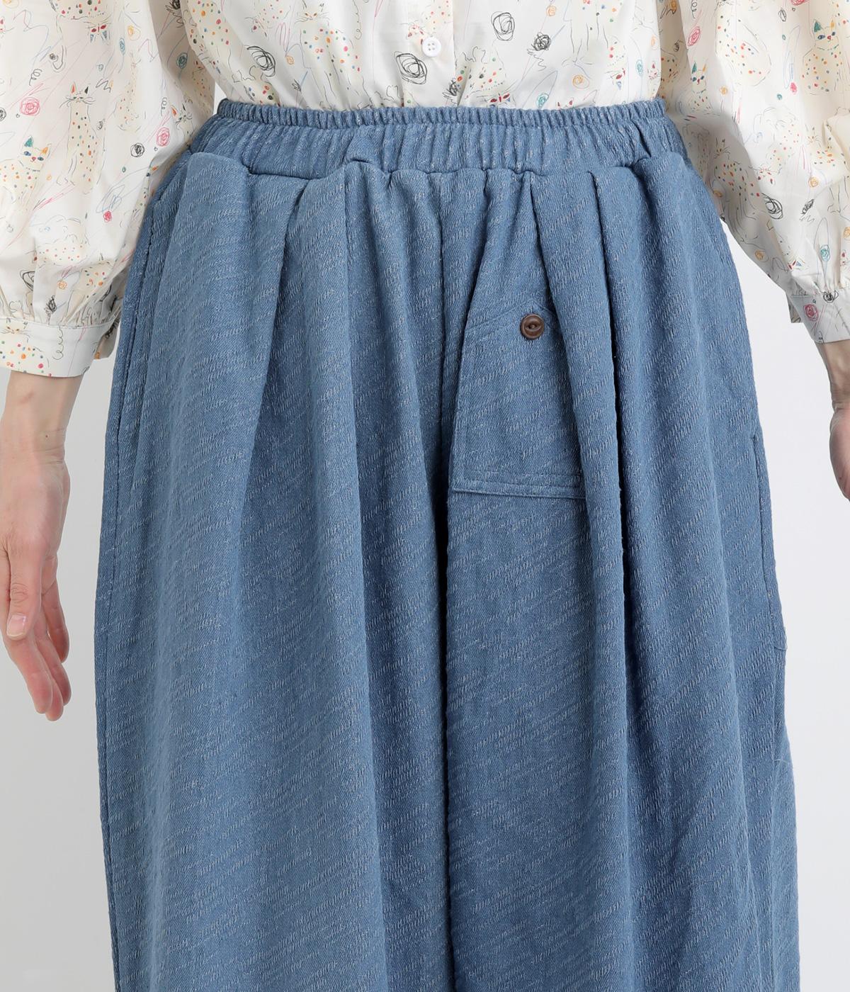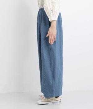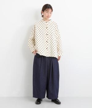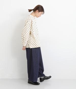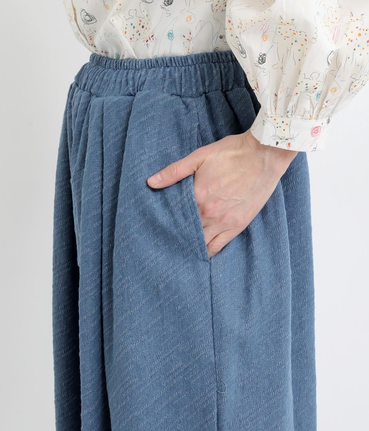 織り柄がほのかに浮かび上がるジャカードデニムです。やわらかな肌なじみのコットンデニムで、軽やかに仕立てました。カジュアル感をほどよく抑えた落ち着きのある雰囲気です。