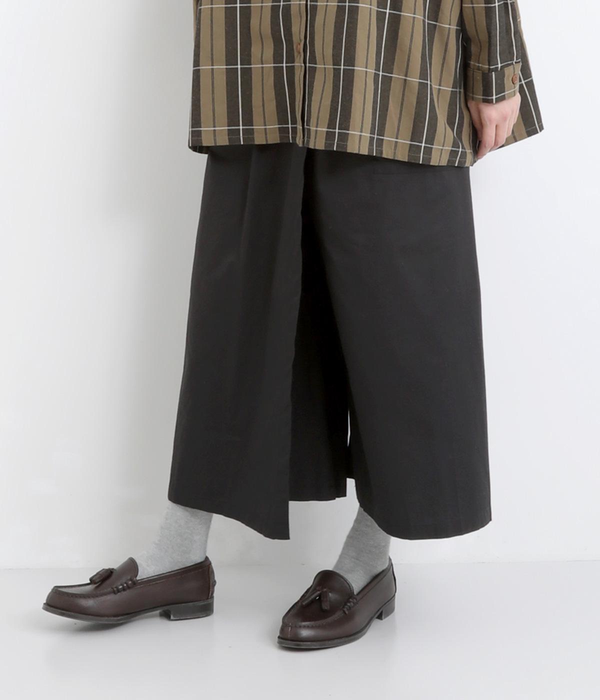 ラップスカートのように重ねた生地が個性的な雰囲気を醸すパンツです。存在感がありながらも、さらりと軽やかな穿き心地で、ロングシーズン着用できます。ウエストゴム仕様でフィット感も抜群です。