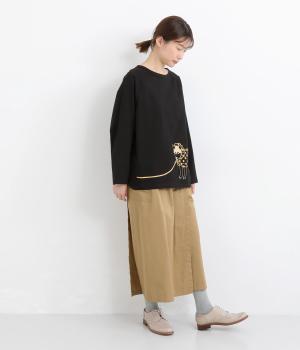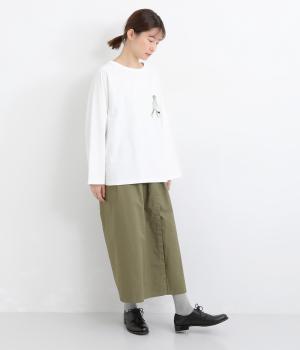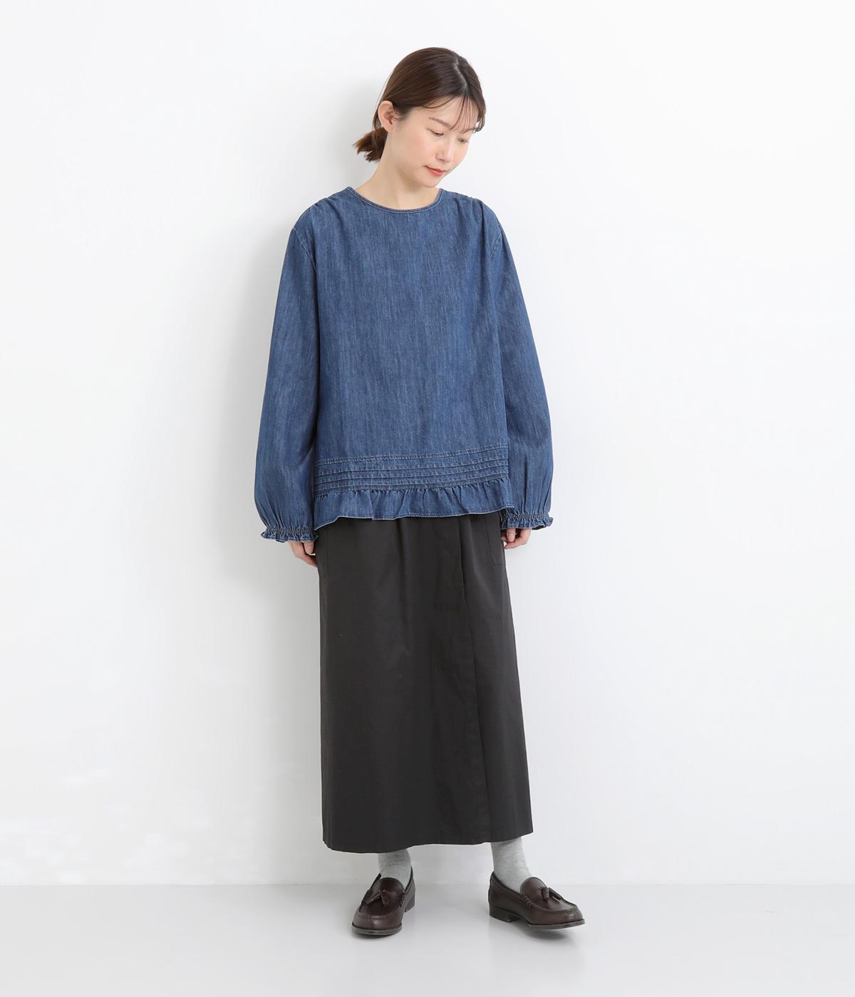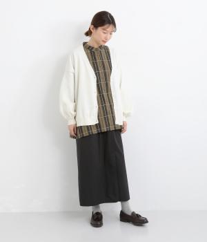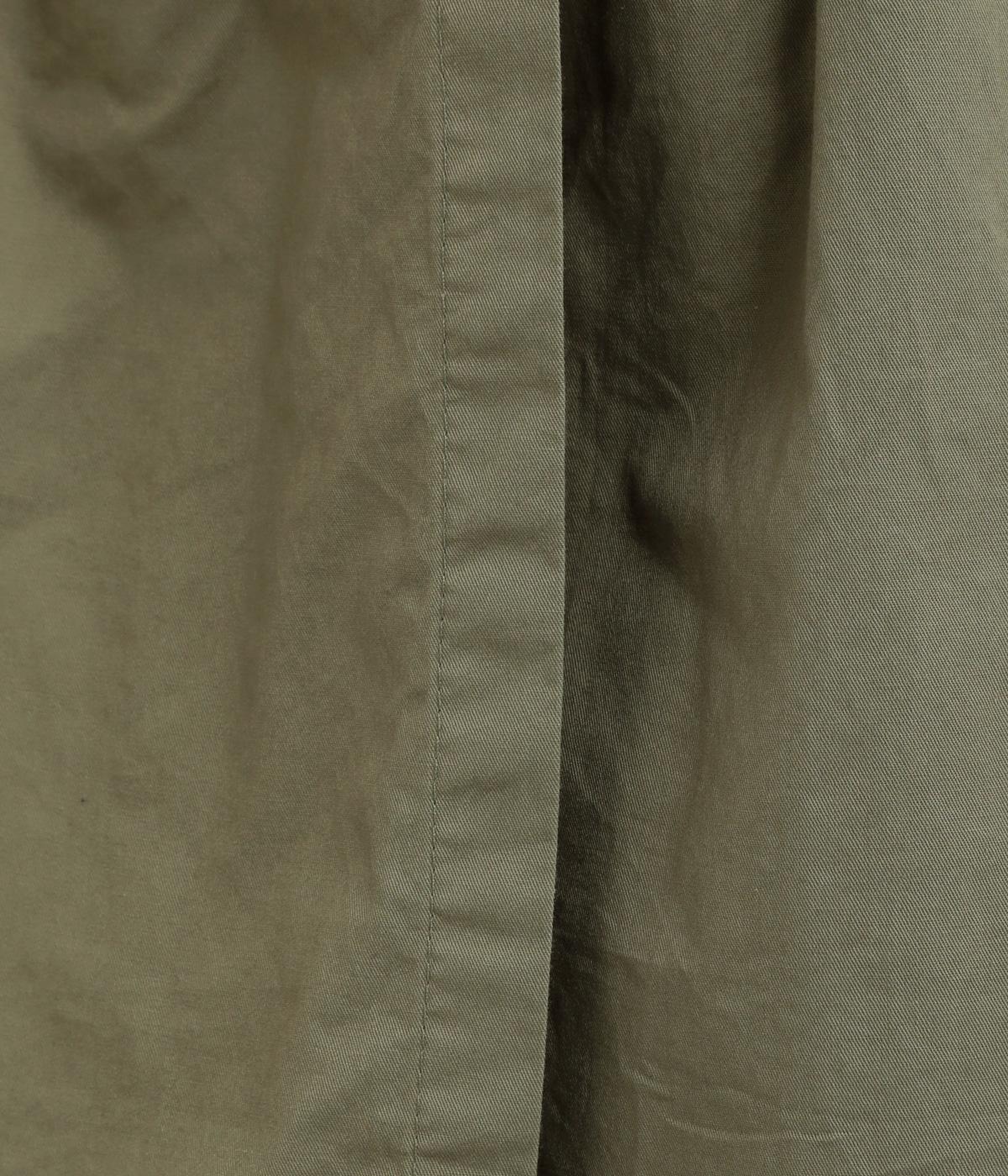 やや薄手で軽やかなコットン生地を使用しています。穿き込んだような味わいのある風合いが魅力です。ほどよいハリがタックをきれいに表現します。