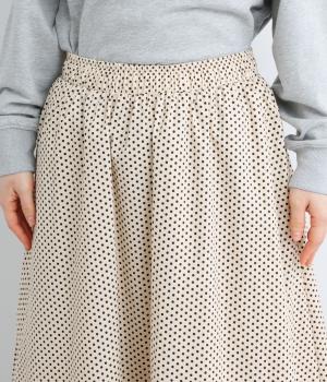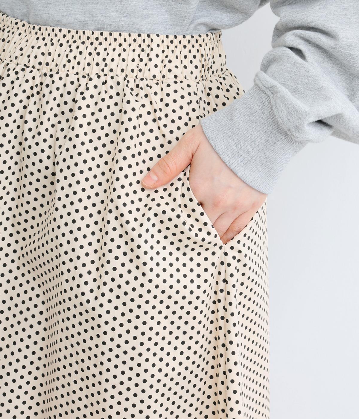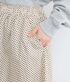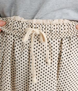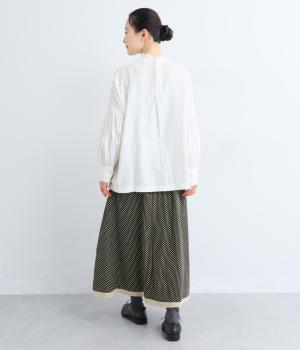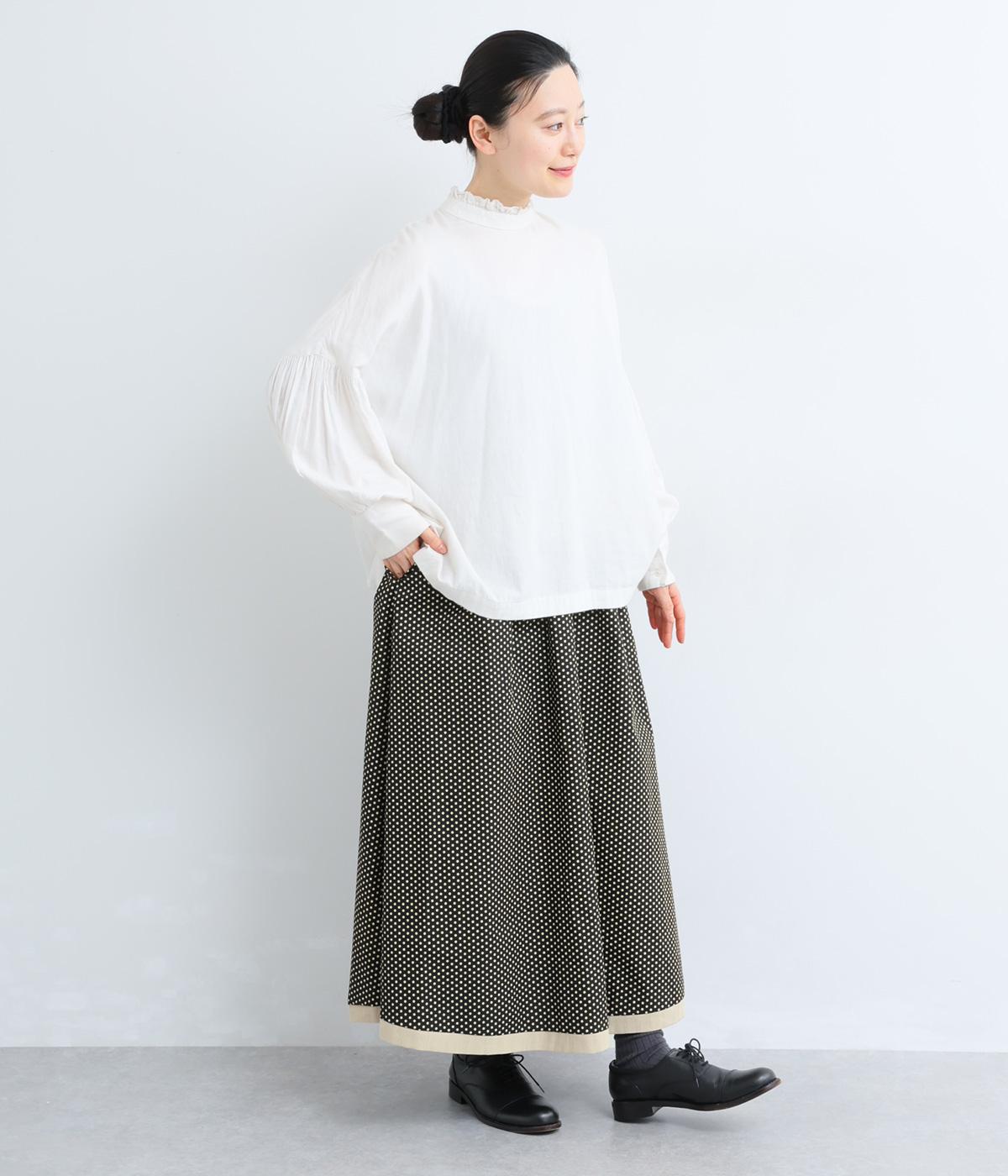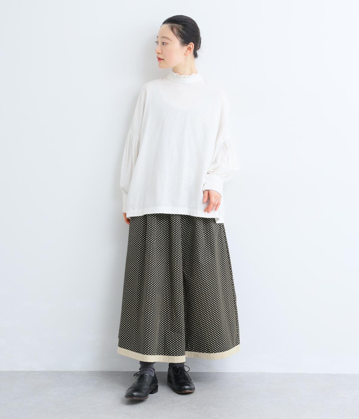 ややハリのある、さらりとした質感のコットン素材を使用しています。落ち着いた小さめのドット柄が大人顔。コットンの裏地つきで、透け感が気になりにくいのもポイントに。