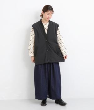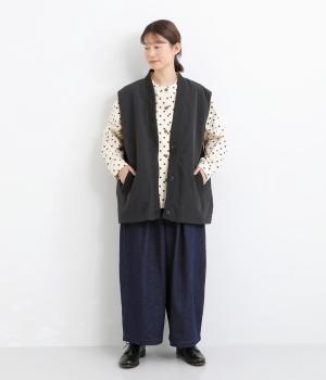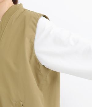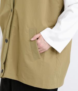 シャリシャリと軽やかなナイロン生地です。たっぷりの生地でボリュームがありながらも345gと軽量で、デイリーに羽織りやすく仕立てました。ポリエステルの滑りのいい裏地付きです。