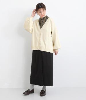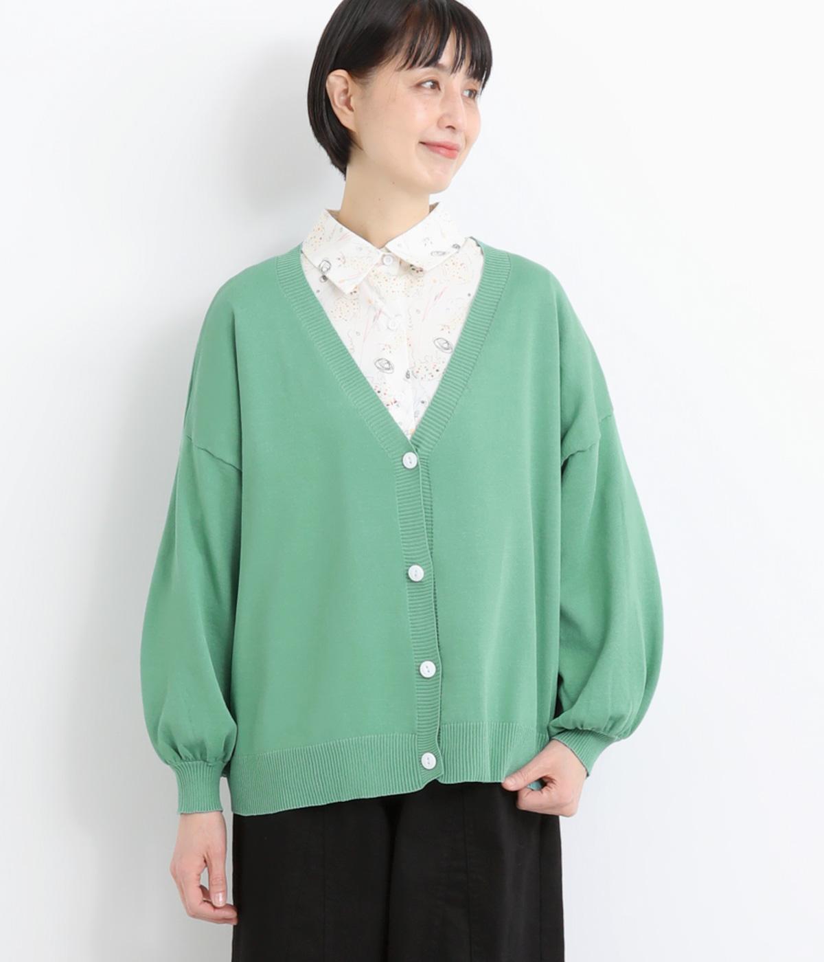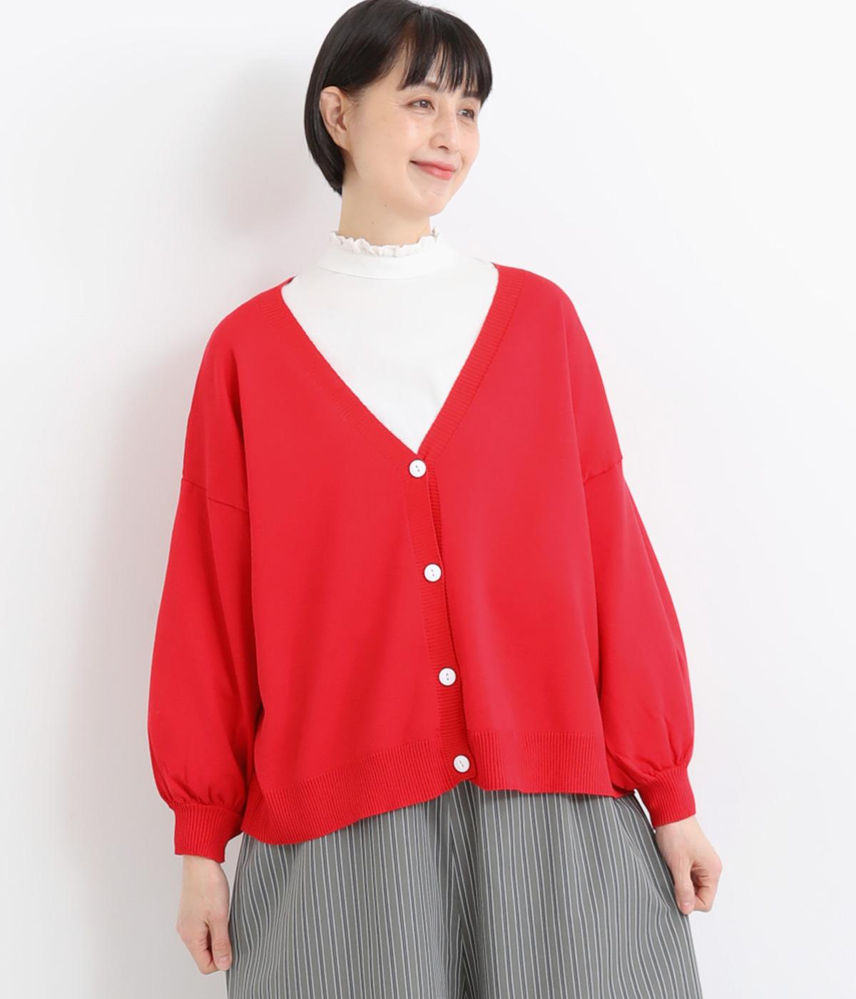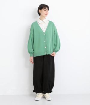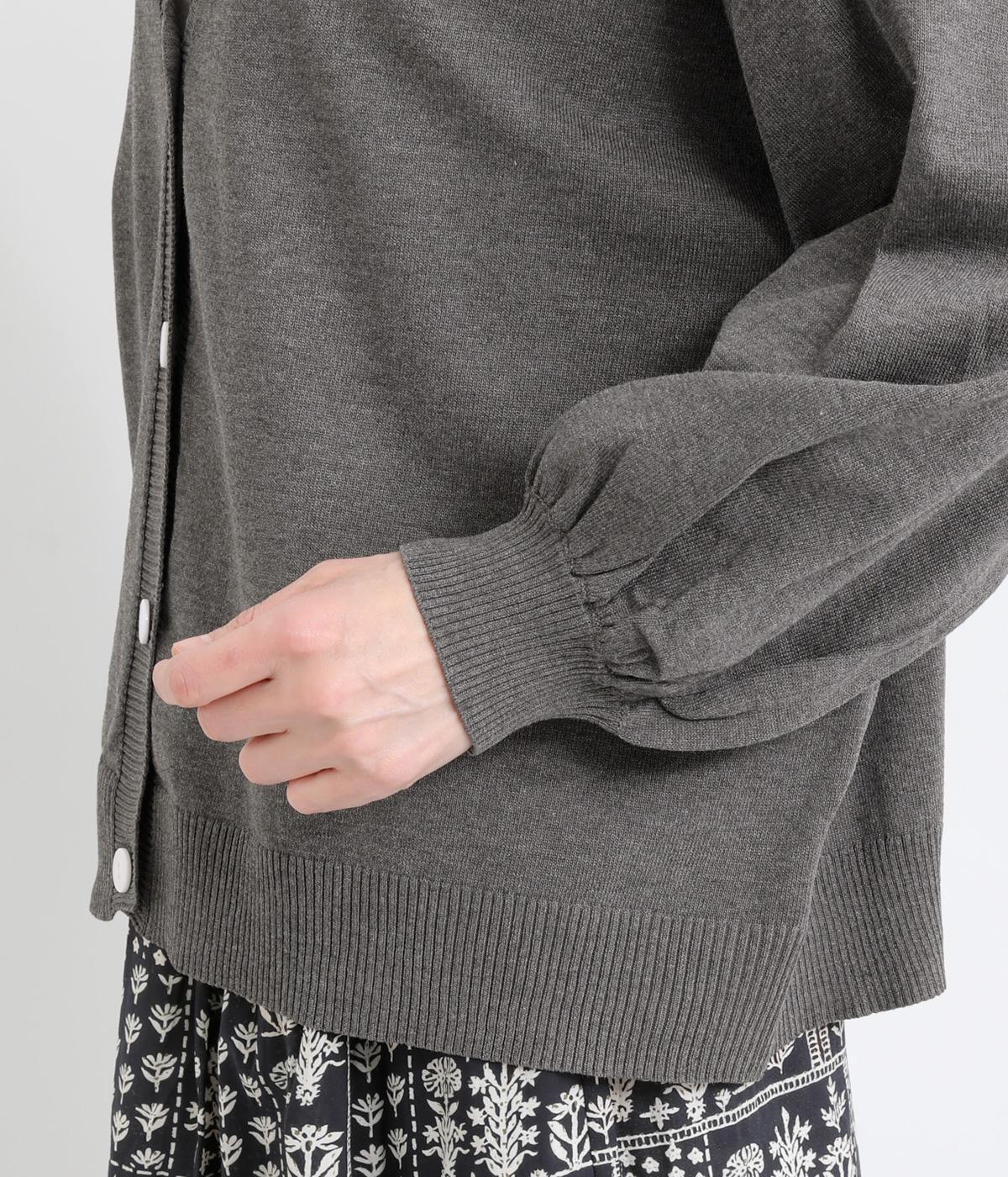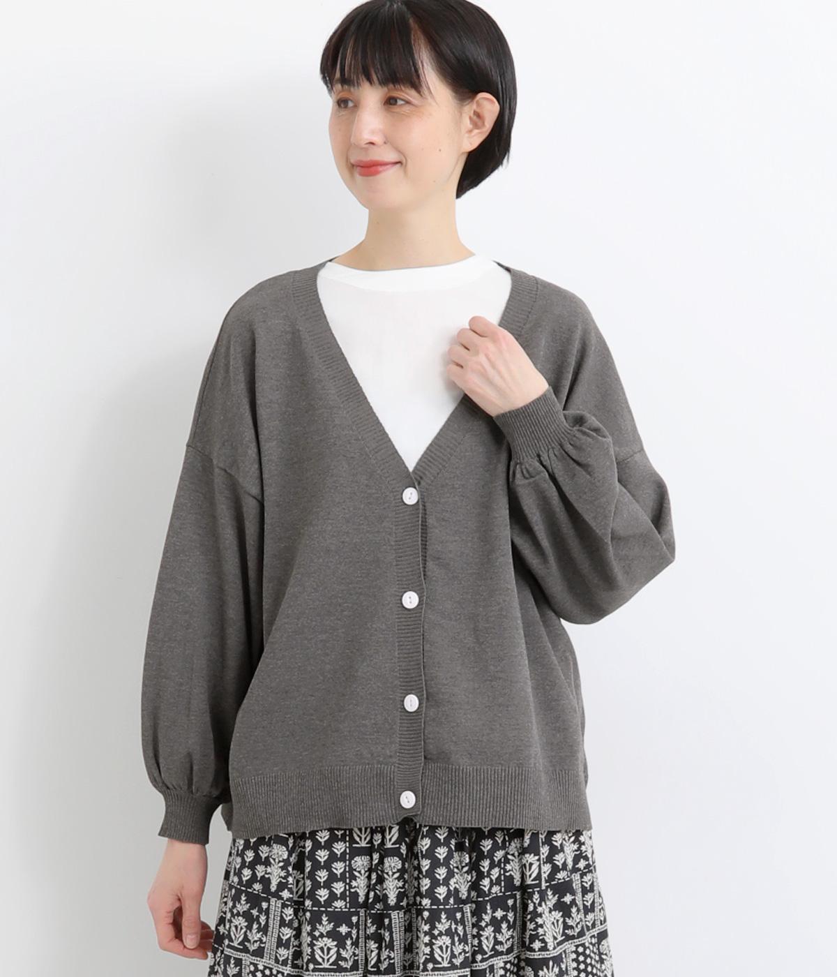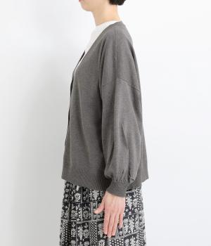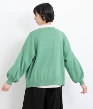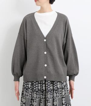 ふんわりと膨らんだ袖が、かわいらしい印象をもたらすVネックカーディガンです。伸縮性のあるドロップショルダーで、さまざまなインナーと重ねやすく仕立てました。前を開けてラフに羽織ってもサマになります。