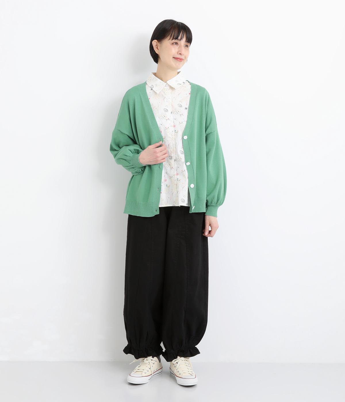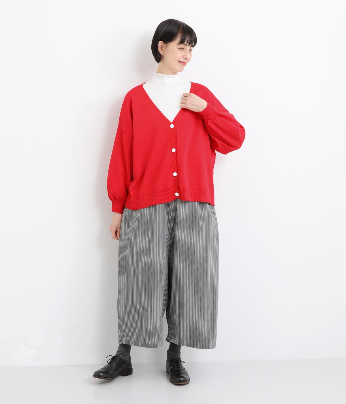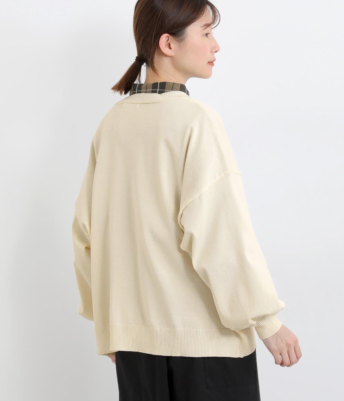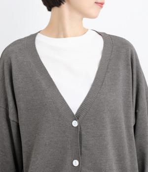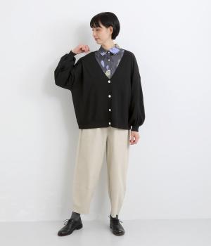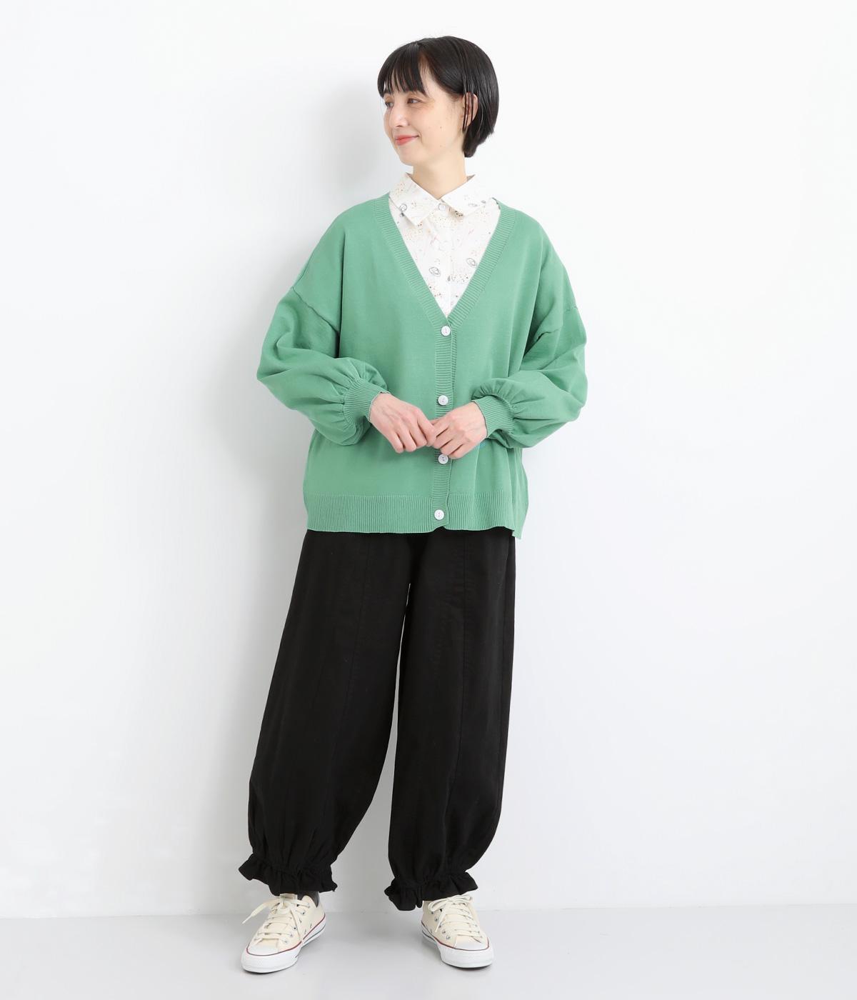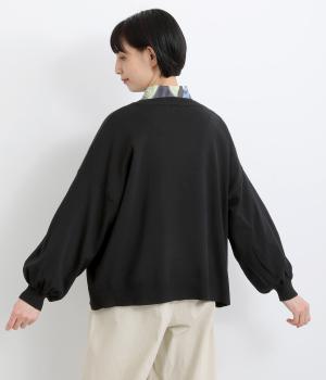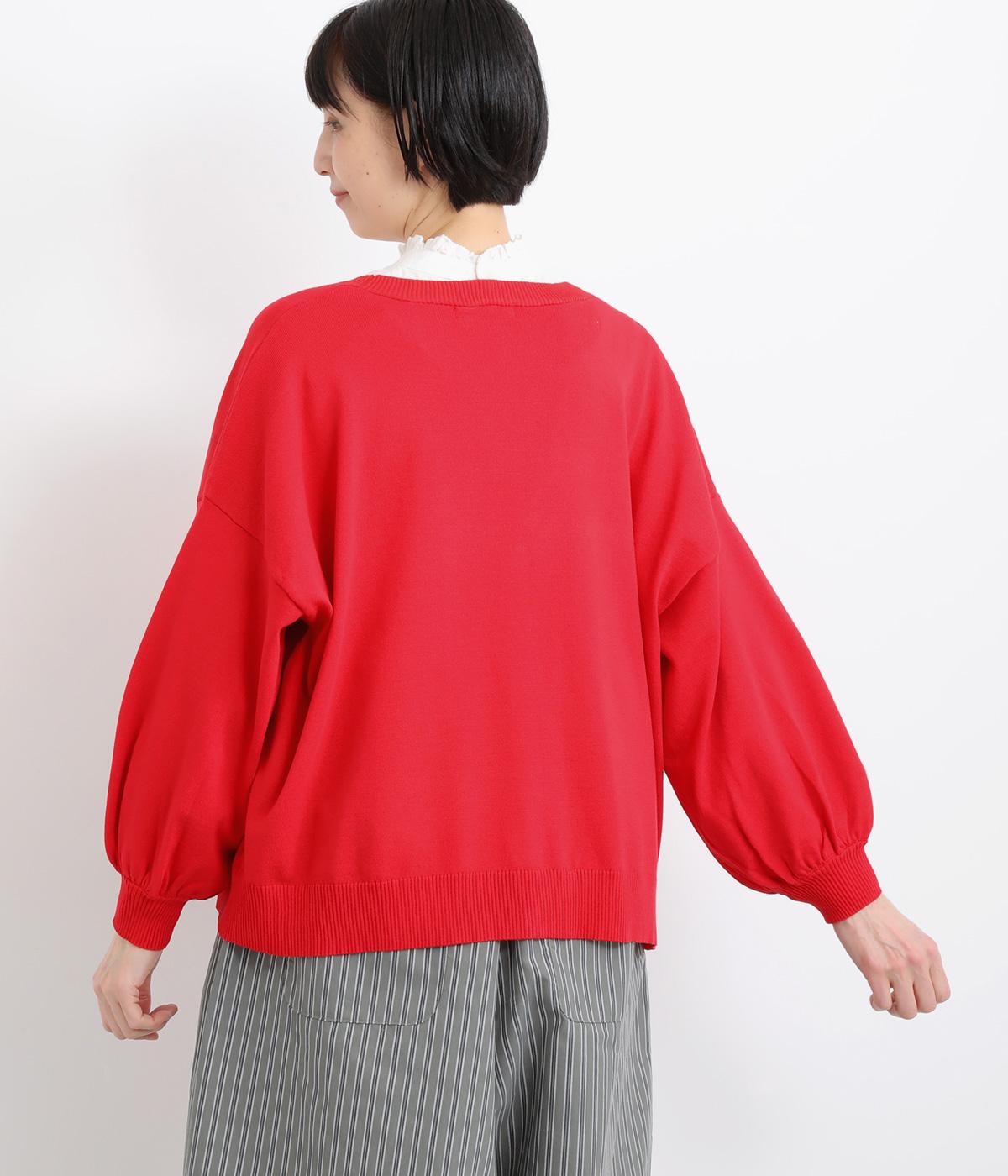 ふんわりと膨らんだ袖が、かわいらしい印象をもたらすVネックカーディガンです。伸縮性のあるドロップショルダーで、さまざまなインナーと重ねやすく仕立てました。前を開けてラフに羽織ってもサマになります。