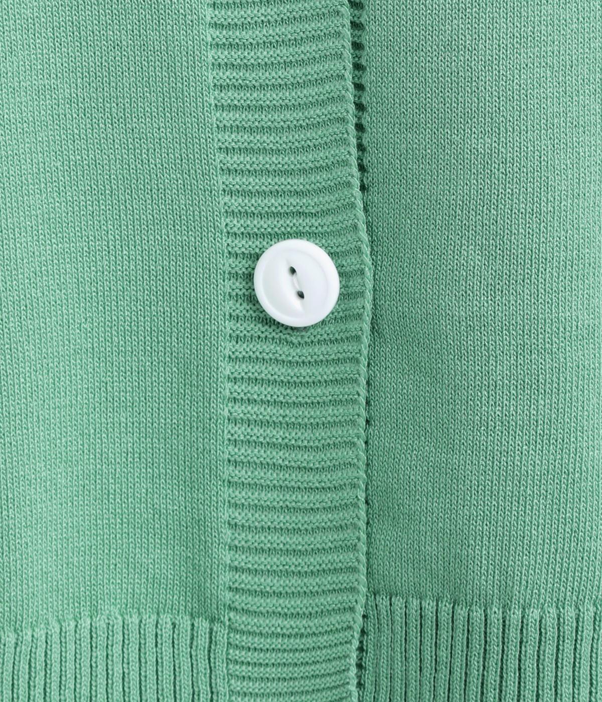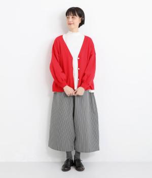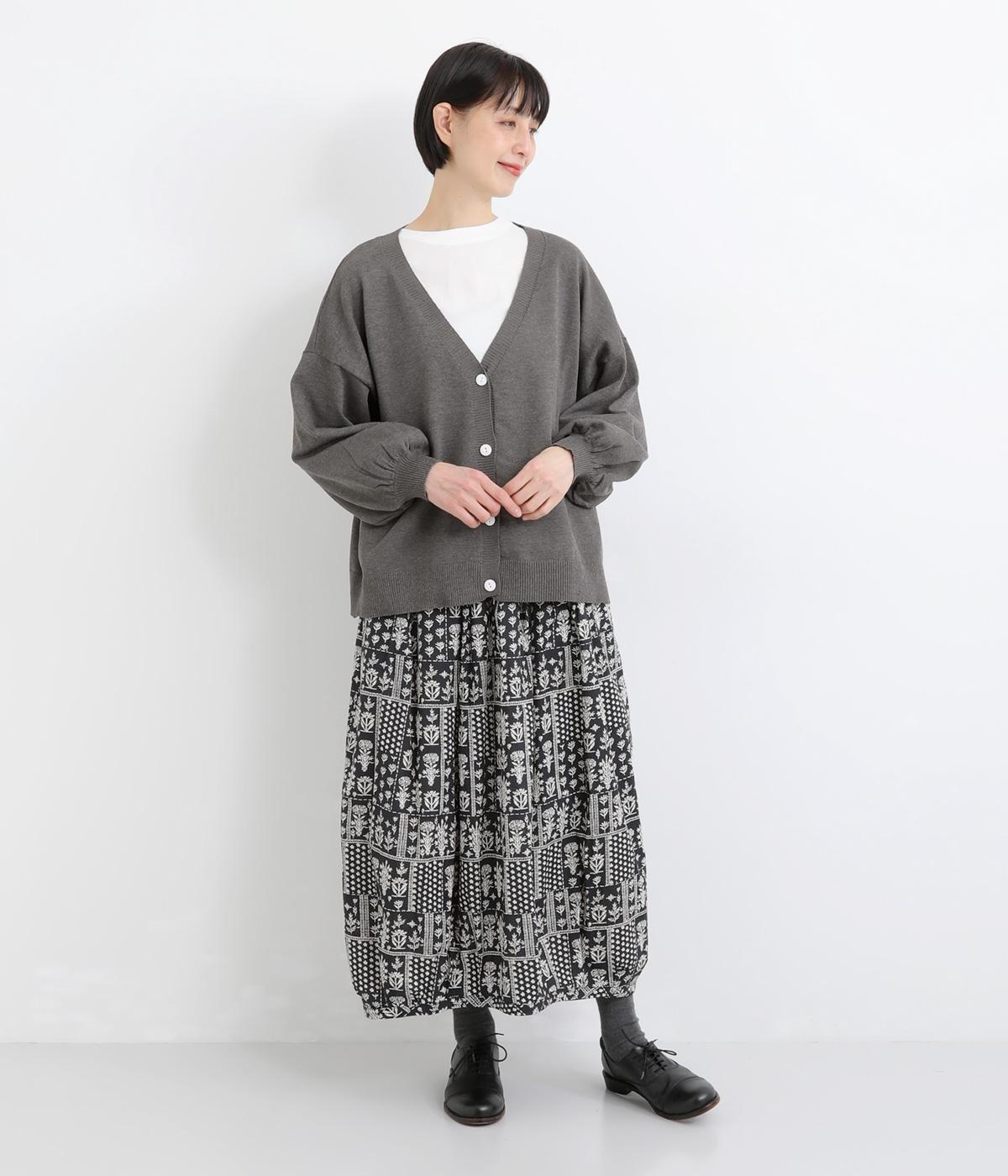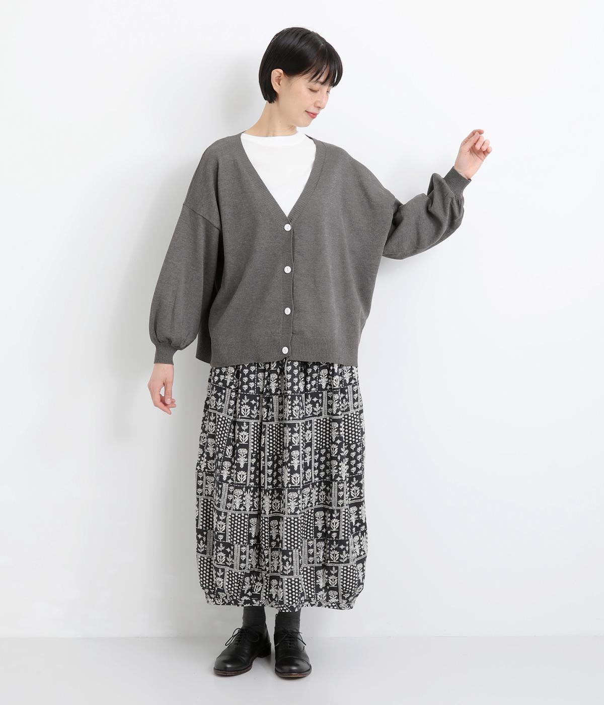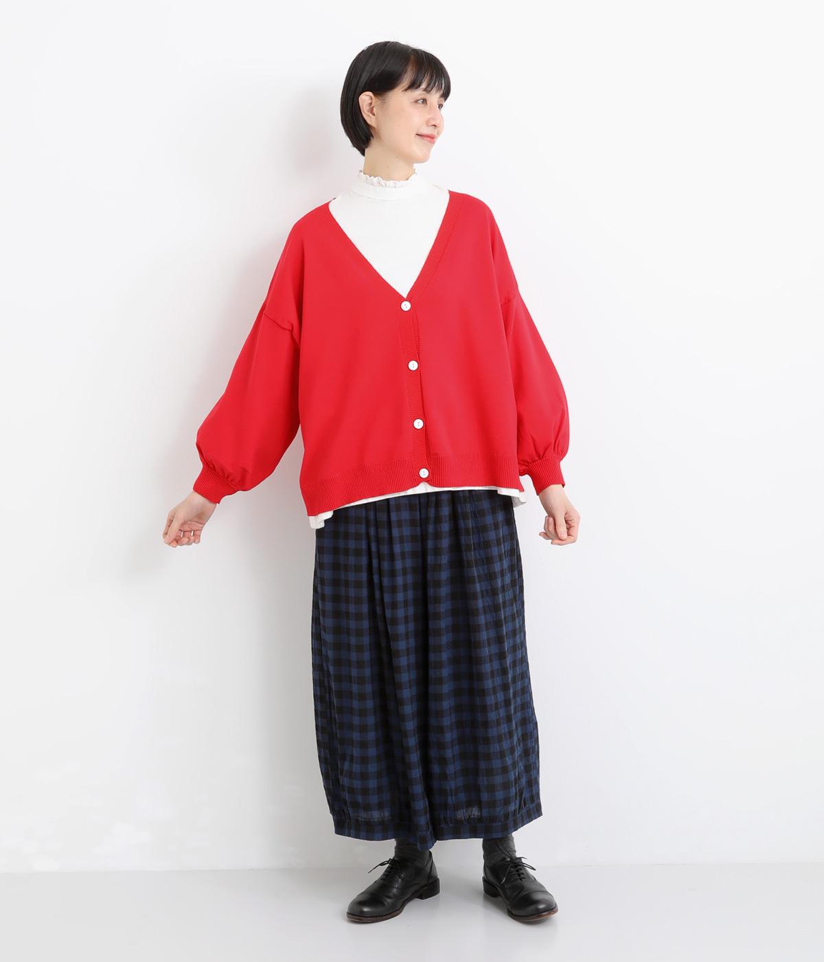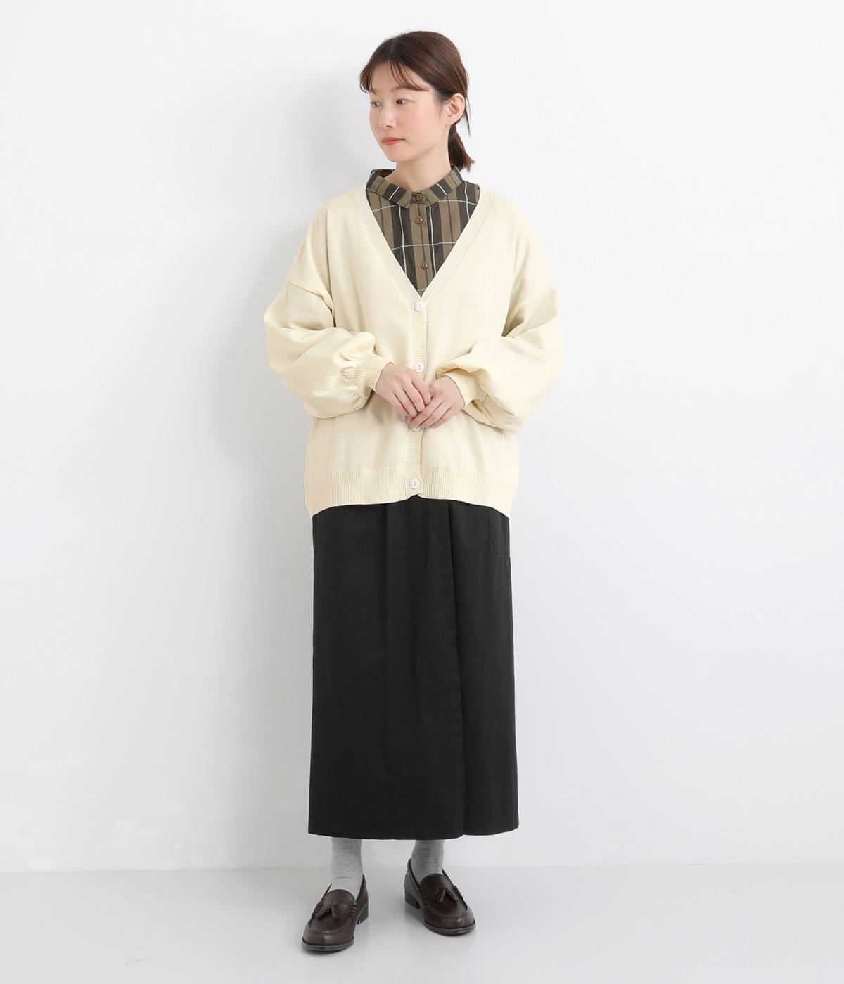 ふんわりと膨らんだ袖が、かわいらしい印象をもたらすVネックカーディガンです。伸縮性のあるドロップショルダーで、さまざまなインナーと重ねやすく仕立てました。前を開けてラフに羽織ってもサマになります。