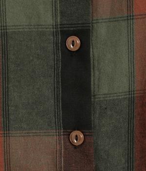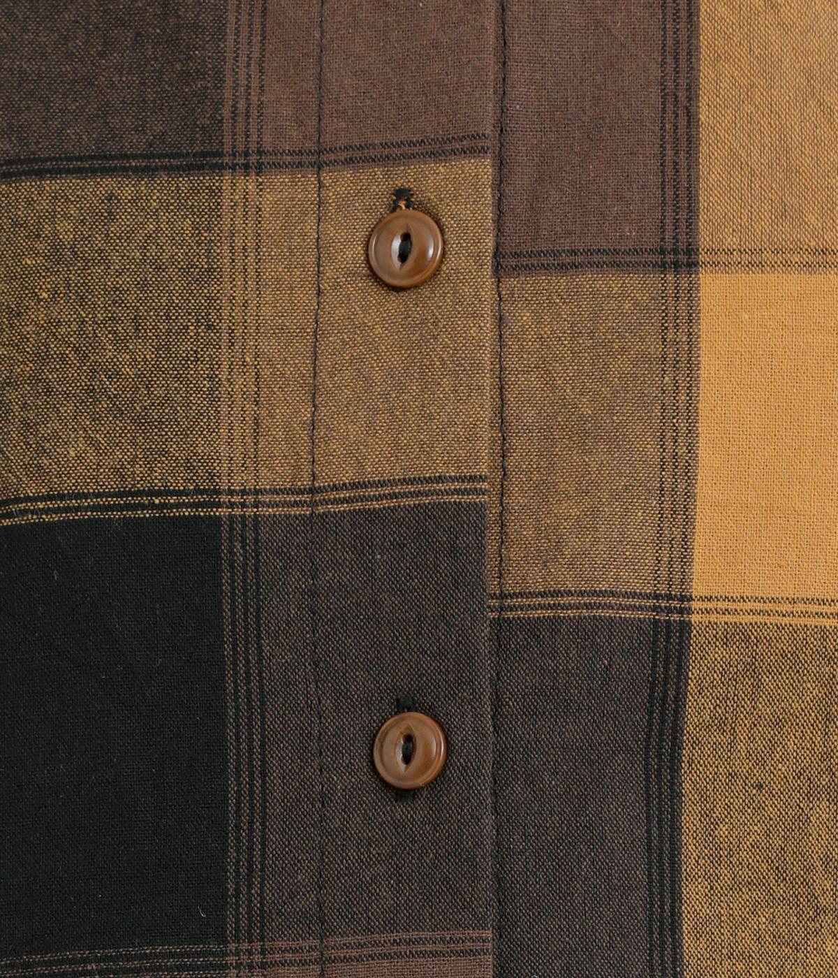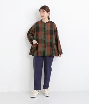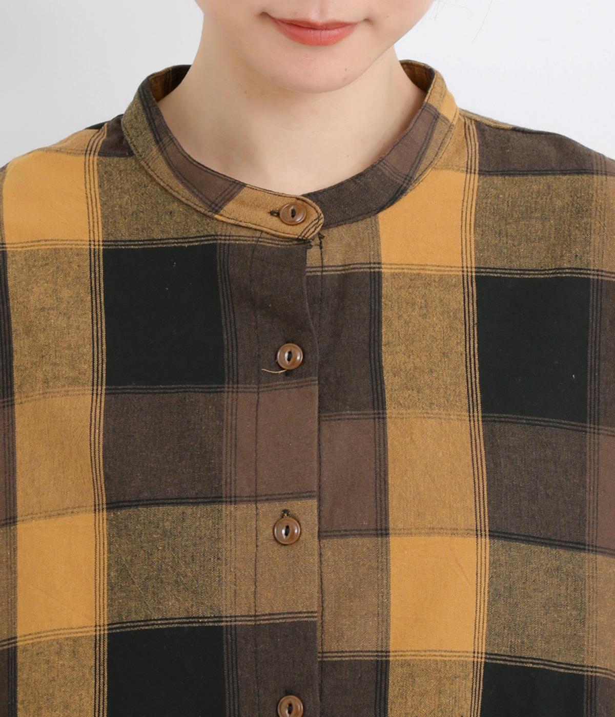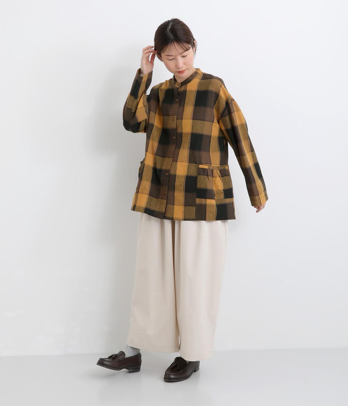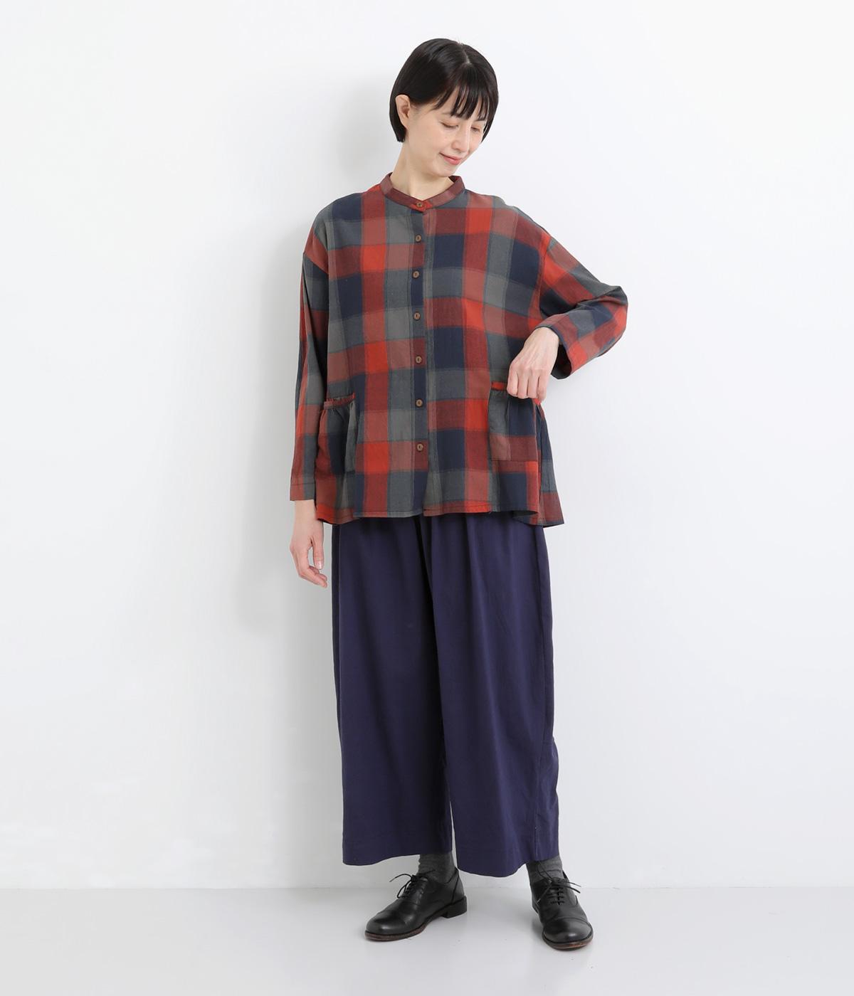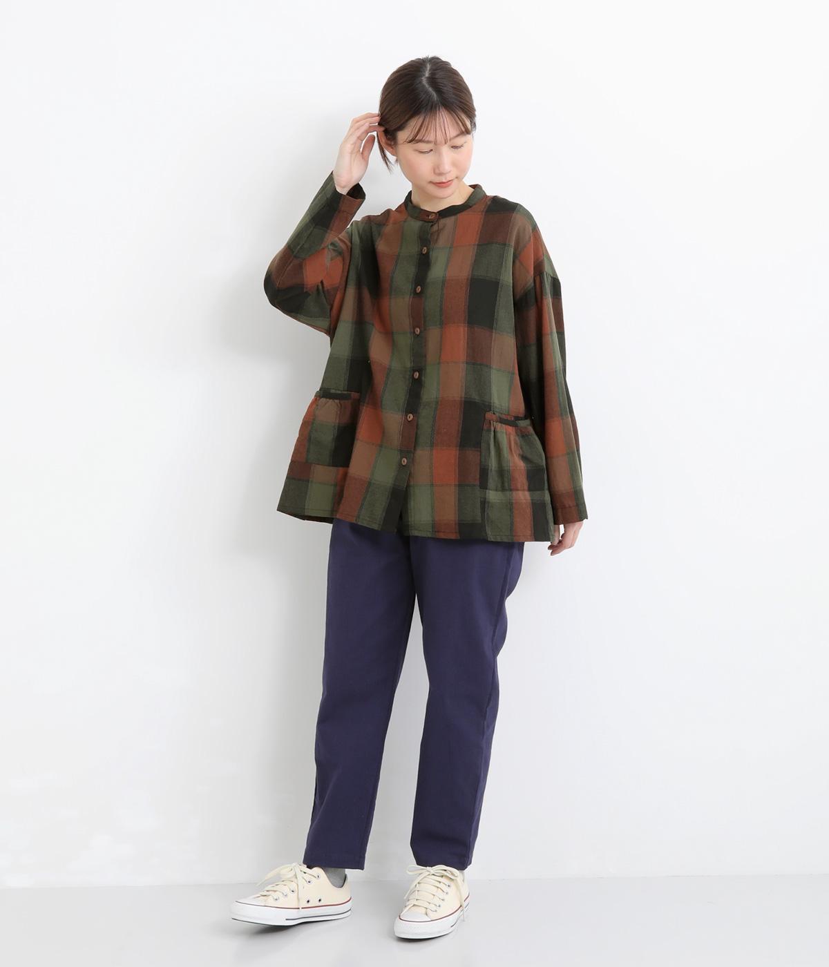 ニュアンスカラーのチェック柄が大人のカジュアルスタイルにぴったりなシャツです。腰まわりにほどこしたギャザーがふんわりと広がり、気になるヒップまわりをカバーします。立体的なポケットも、さりげなくアクセントを添えています。