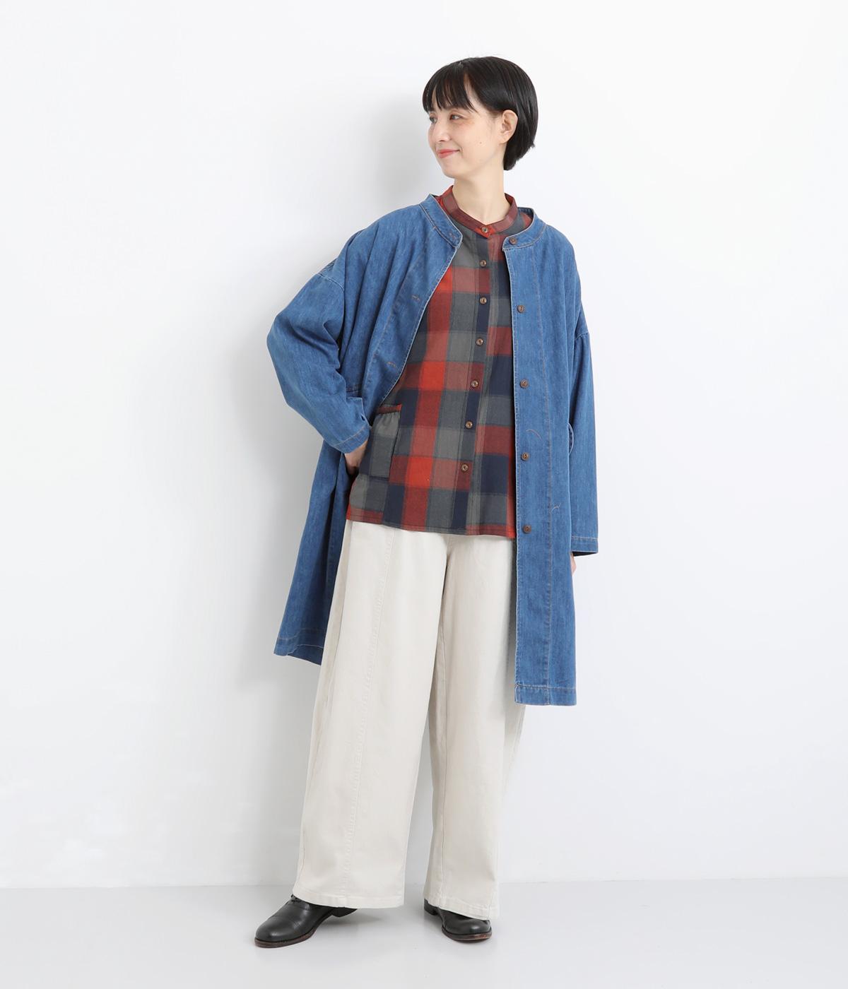 ネップのある自然な風合いがあたたかみのある表情のコットン生地です。やわらかい肌なじみで、心地よく纏えます。しなやかなハリが、シルエットをふわりと描きます。