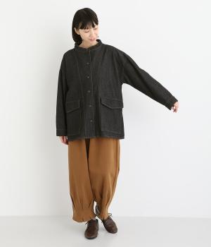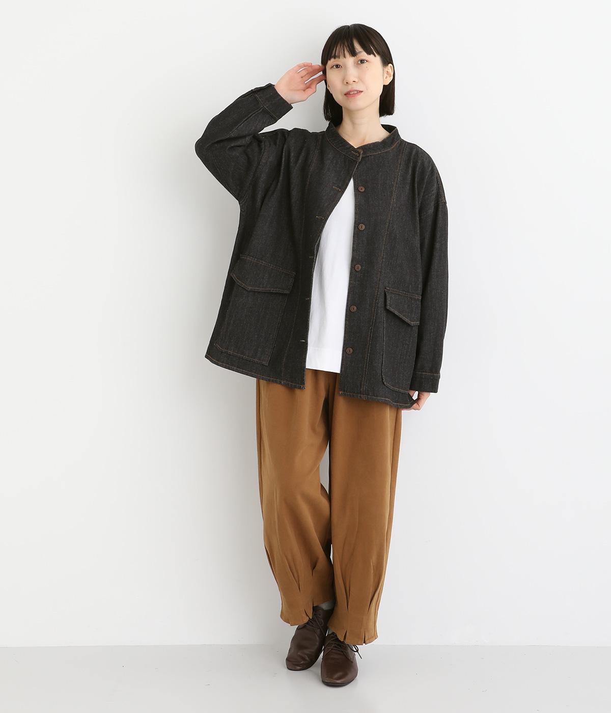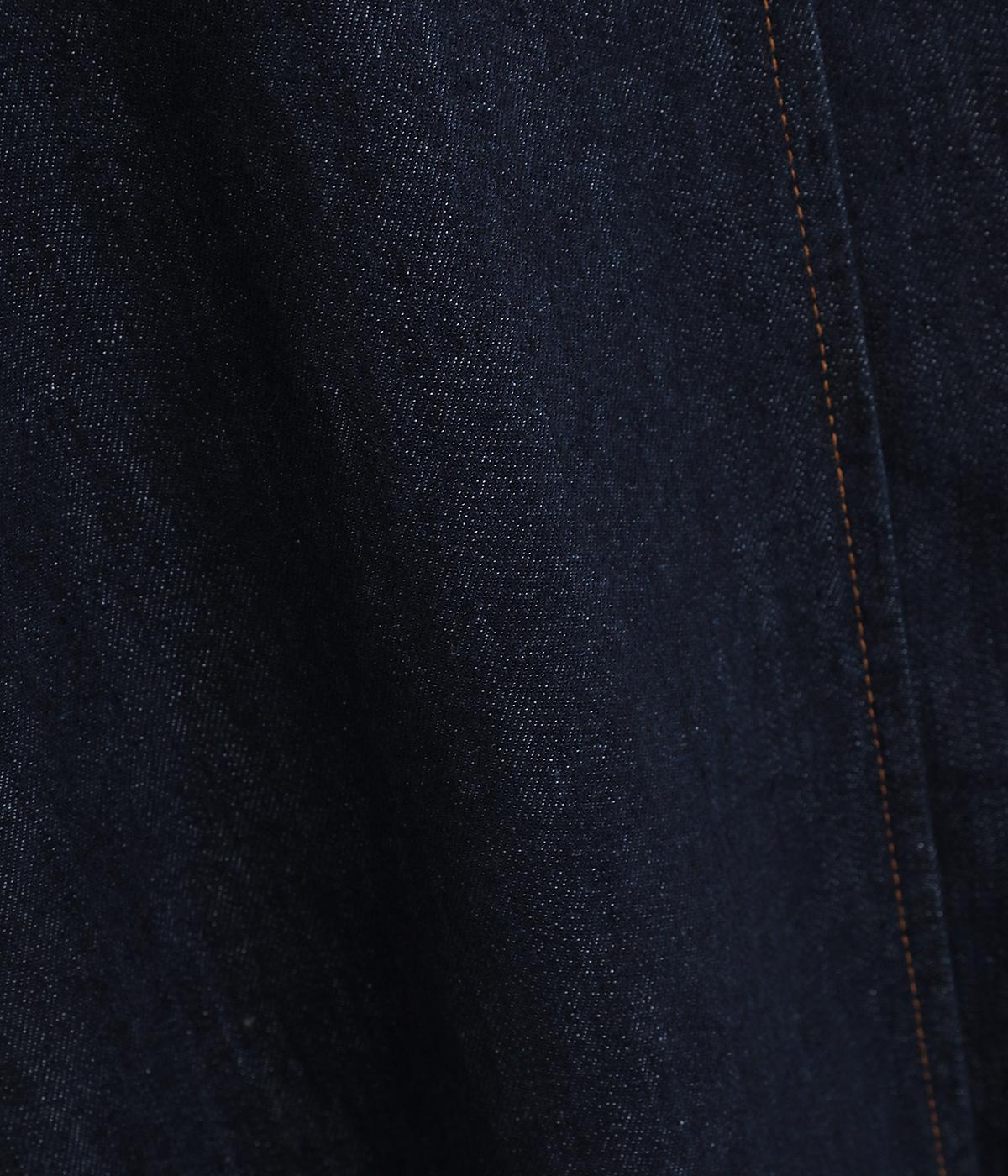 ほどよい肉感がありながらもやわらかな風合いを持ち、着心地にこだわったデニム生地を使用しています。着込むほどになじんでいき、風合いや色合いの変化をたのしめるのも魅力です。