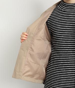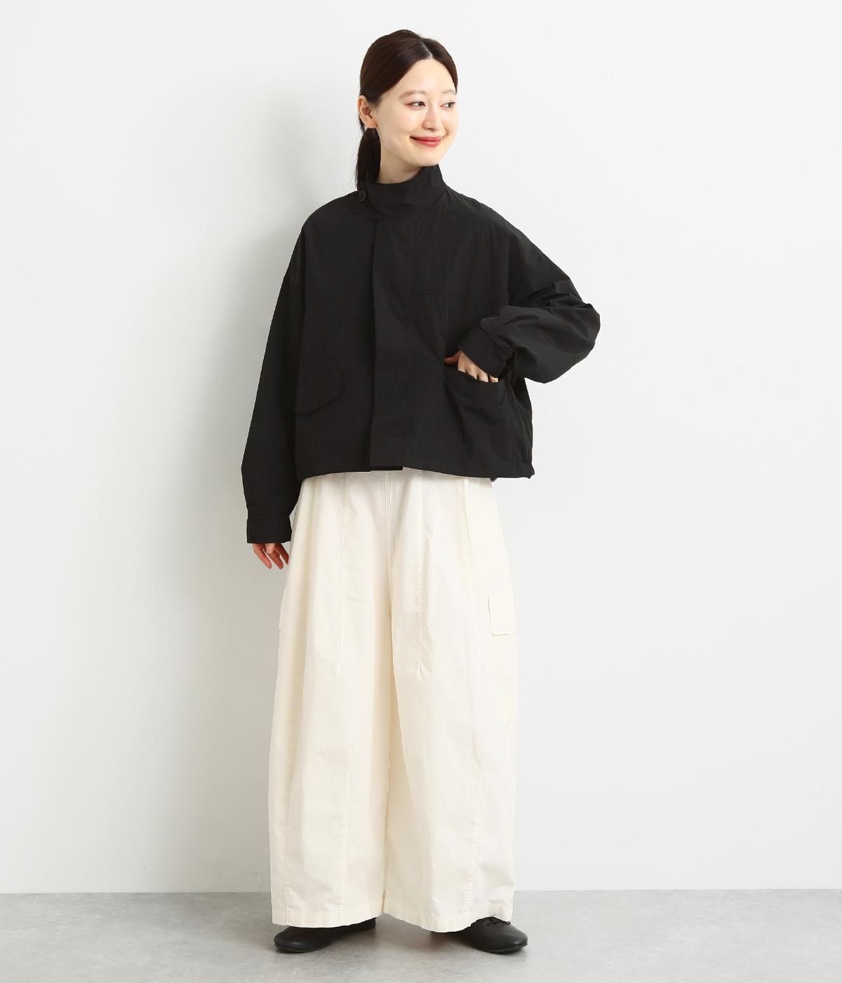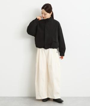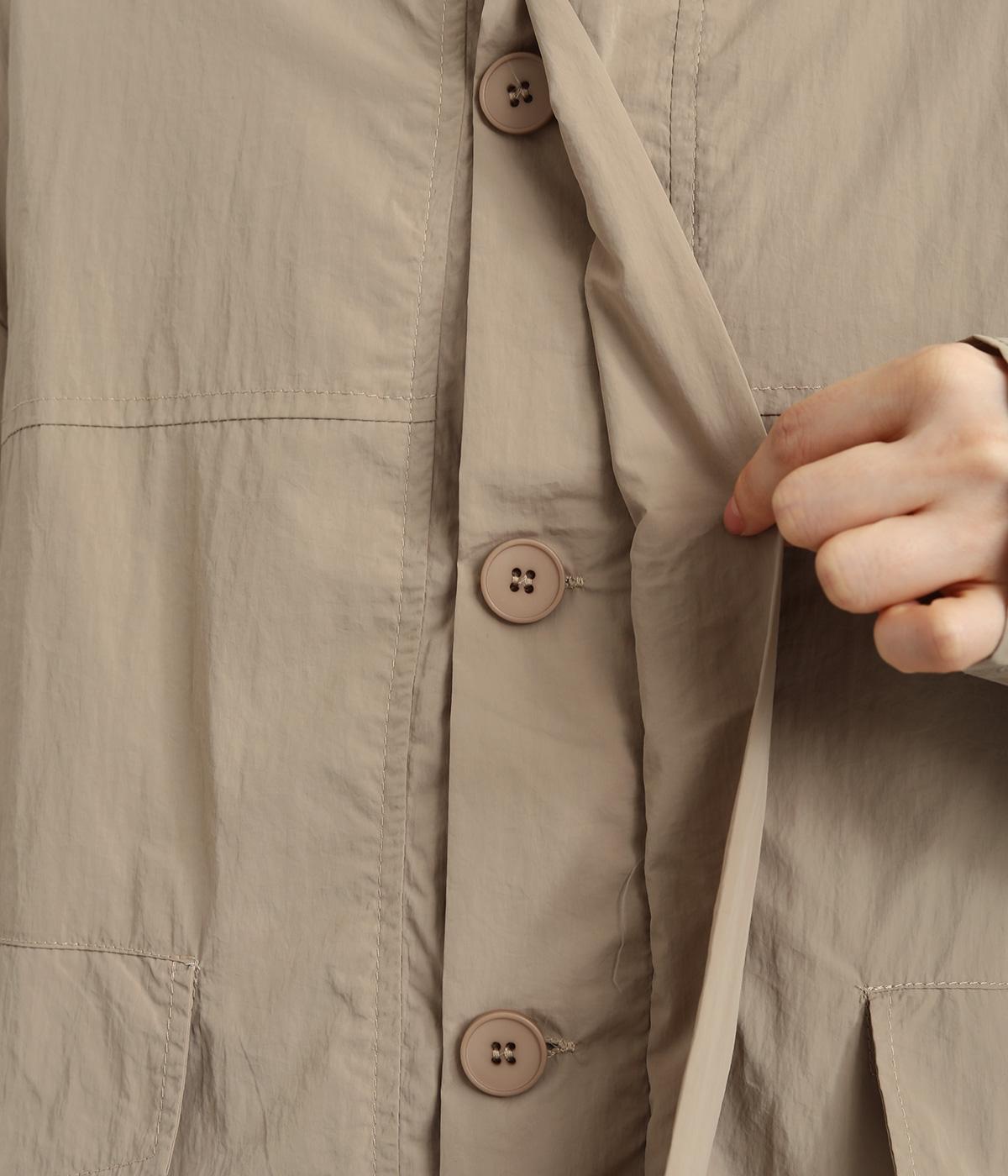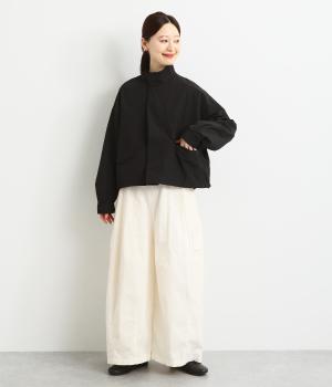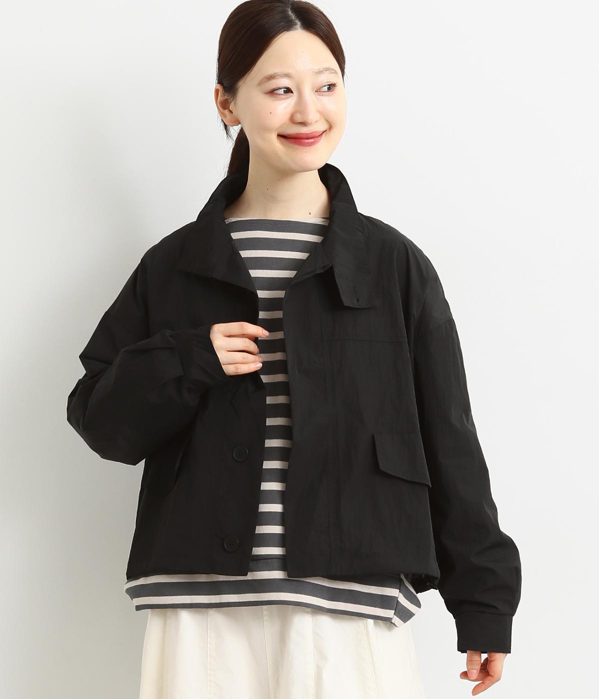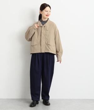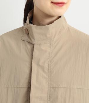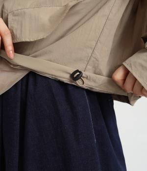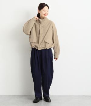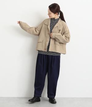 首元は襟を立てることもできる2way仕様。カジュアルに羽織るのも、襟を立ててシックに着るのもおすすめです。前面は比翼仕立てでスッキリと見えます。裾はドロストコードで調整でき、キュッと絞るとまた違った印象になります。