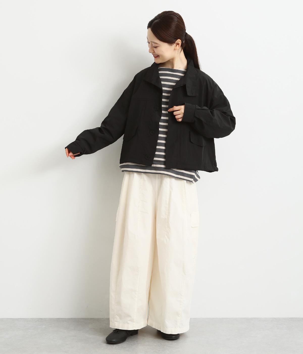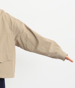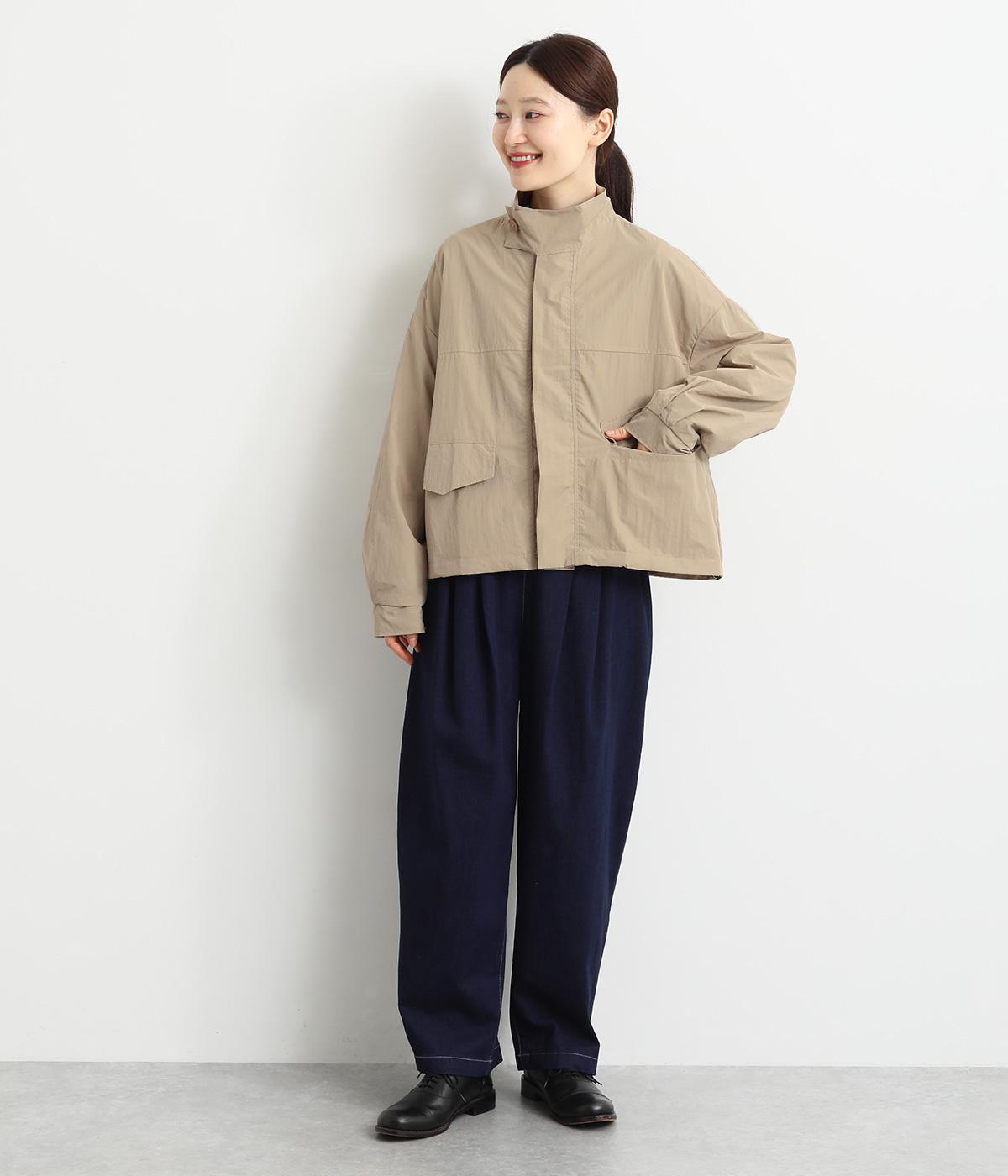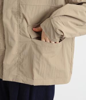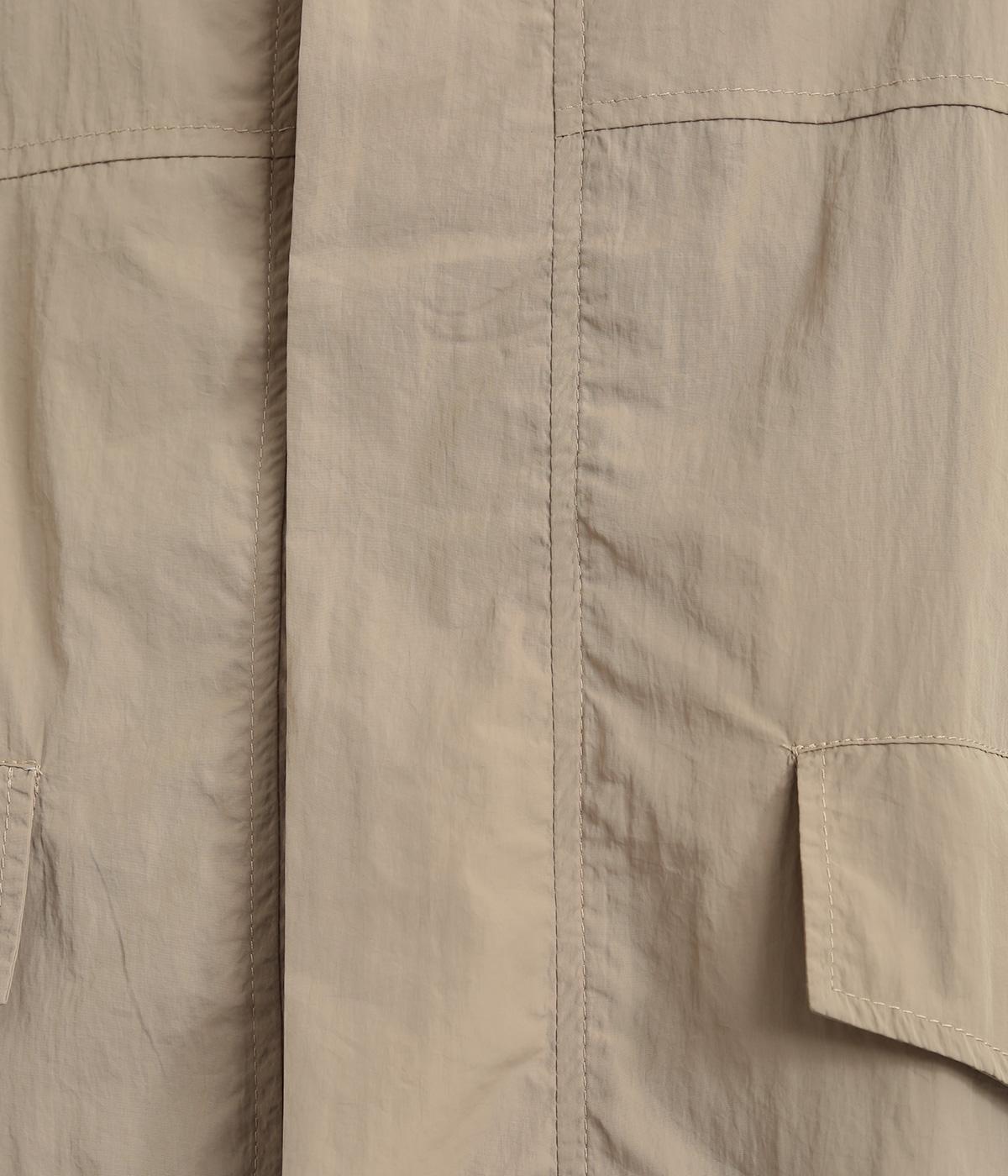 シャカシャカとした独特の質感が特徴のポリエステル素材。軽量かつシワになりにくいので持ち運ぶのにも◎。サラッとした着心地で、デイリー使いに活躍します。