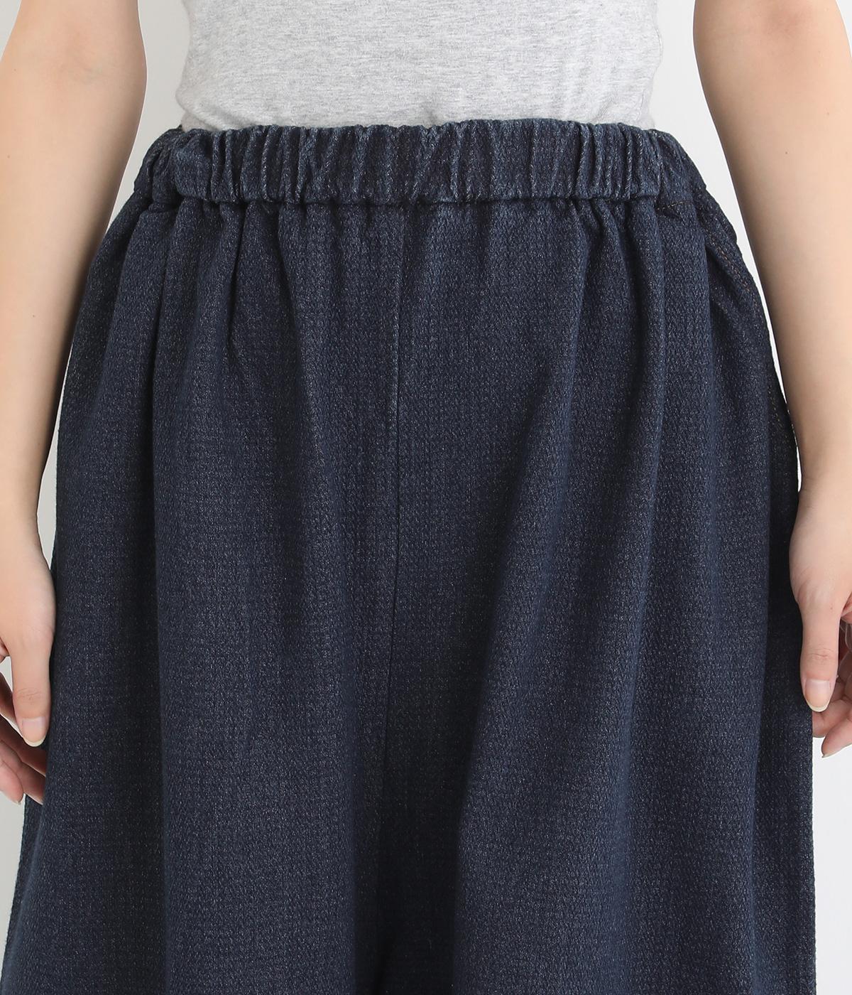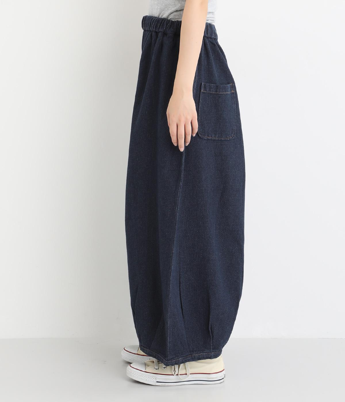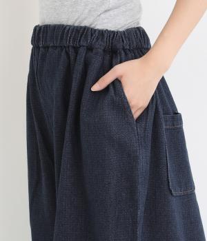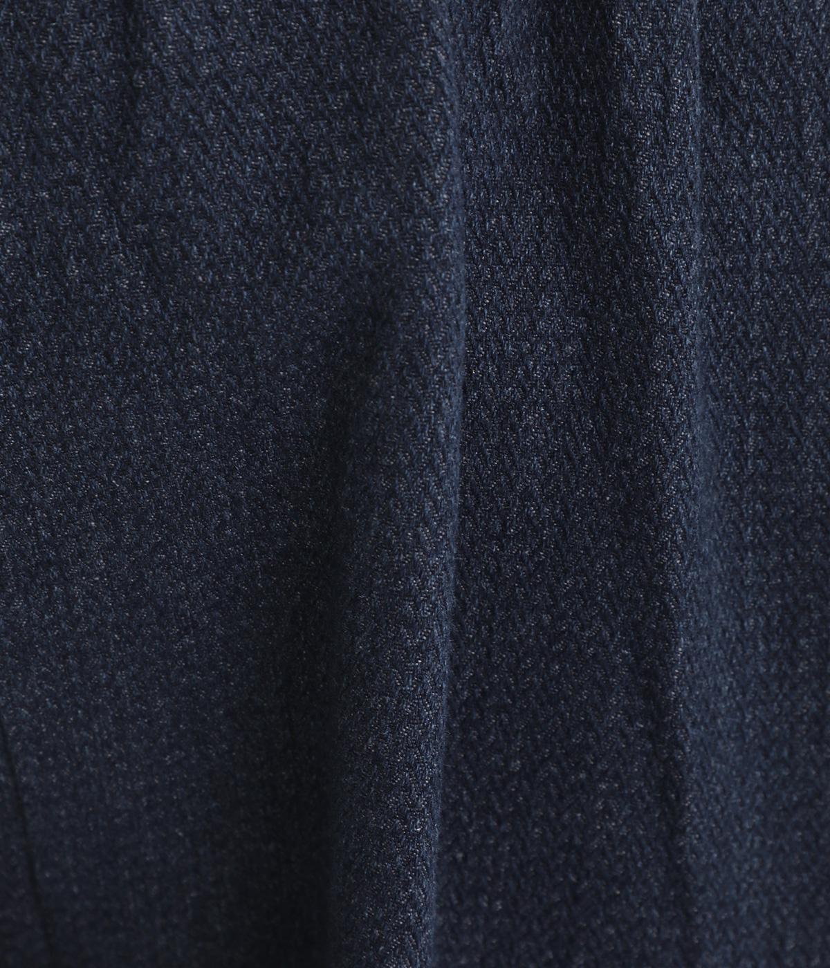 ポコポコとした独特な表面感が魅力のコットンデニム生地を使用しています。適度な肉感がありながらも、硬さやごわつきをおさえたとてもやわらかな風合いがポイントです。