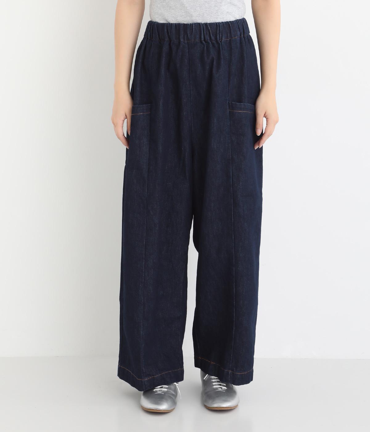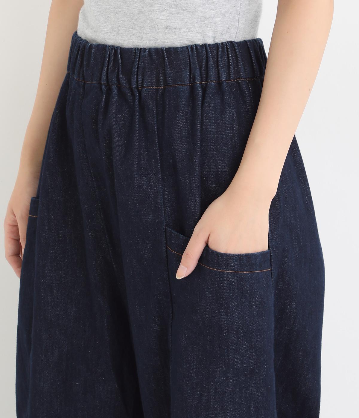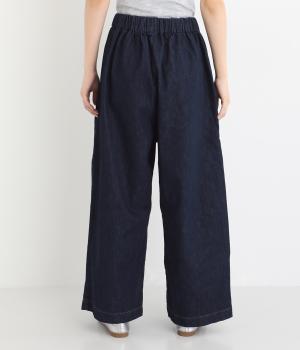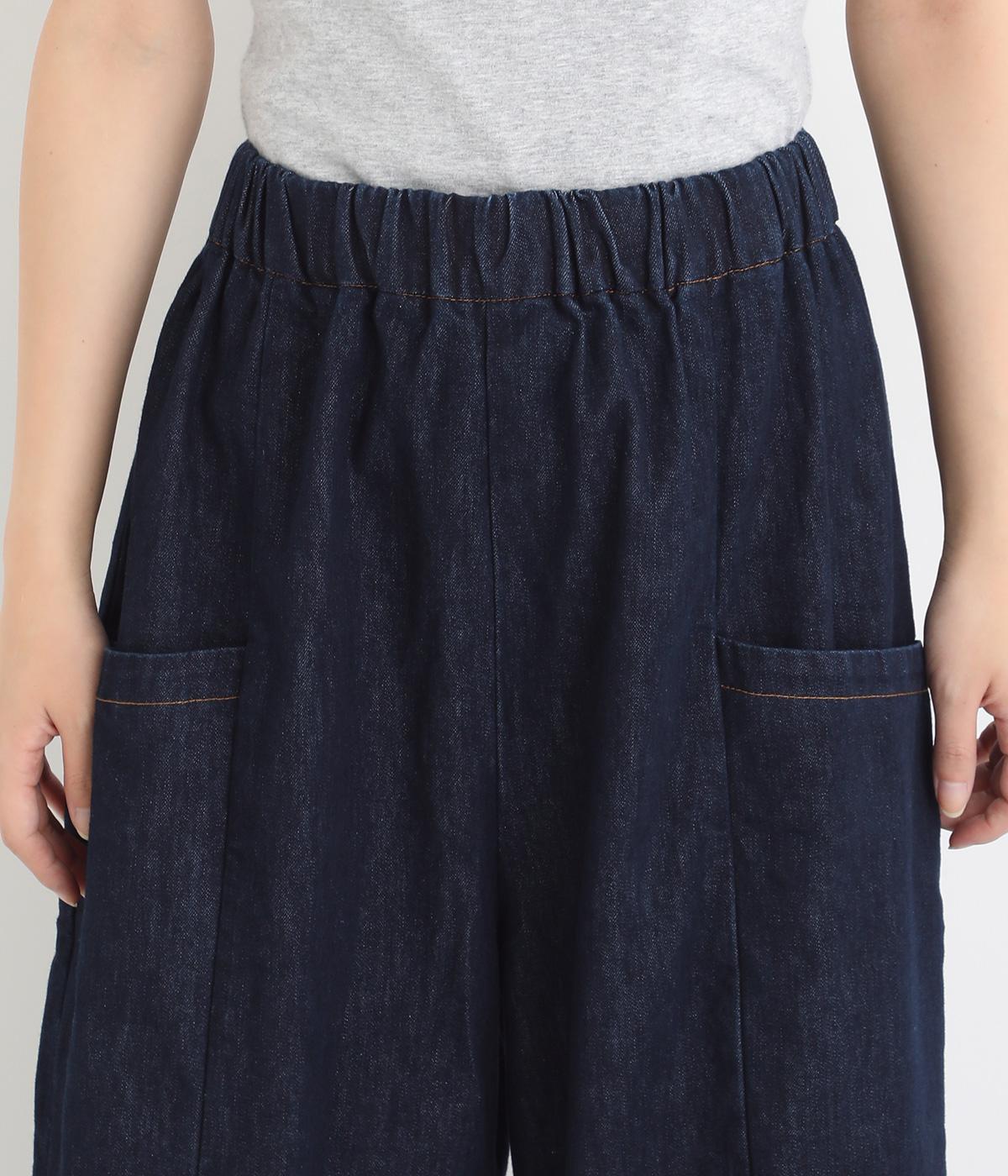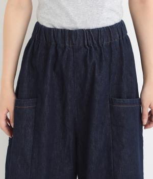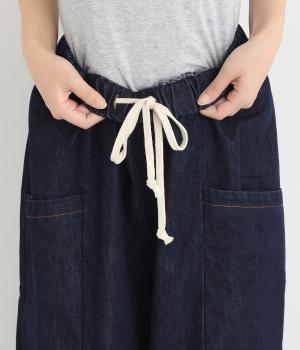 体のラインを拾いにくいゆったりとしたシルエットのデニムパンツ。両サイドに配置した大きめのポケットが気になる太ももをカバーしてくれます。ウエストは総ゴム仕様で、フィット感を高める紐つき。デイリーに気兼ねなくラフにはける、シーズン問わず活躍するアイテムです。