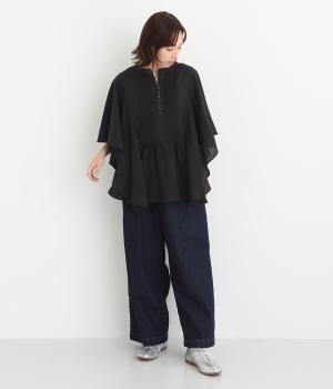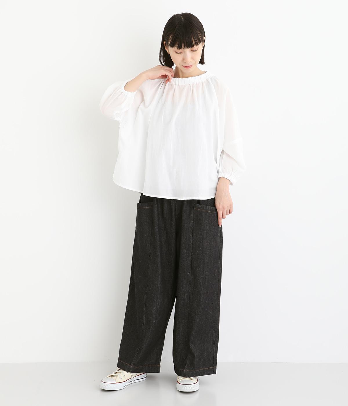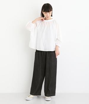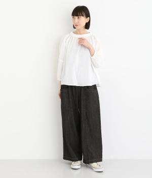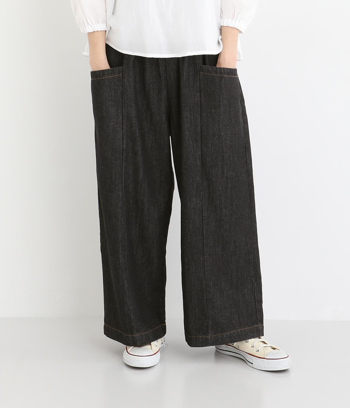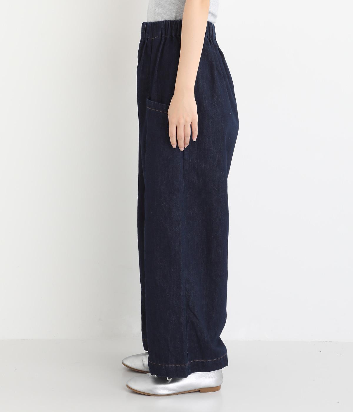 体のラインを拾いにくいゆったりとしたシルエットのデニムパンツ。両サイドに配置した大きめのポケットが気になる太ももをカバーしてくれます。ウエストは総ゴム仕様で、フィット感を高める紐つき。デイリーに気兼ねなくラフにはける、シーズン問わず活躍するアイテムです。