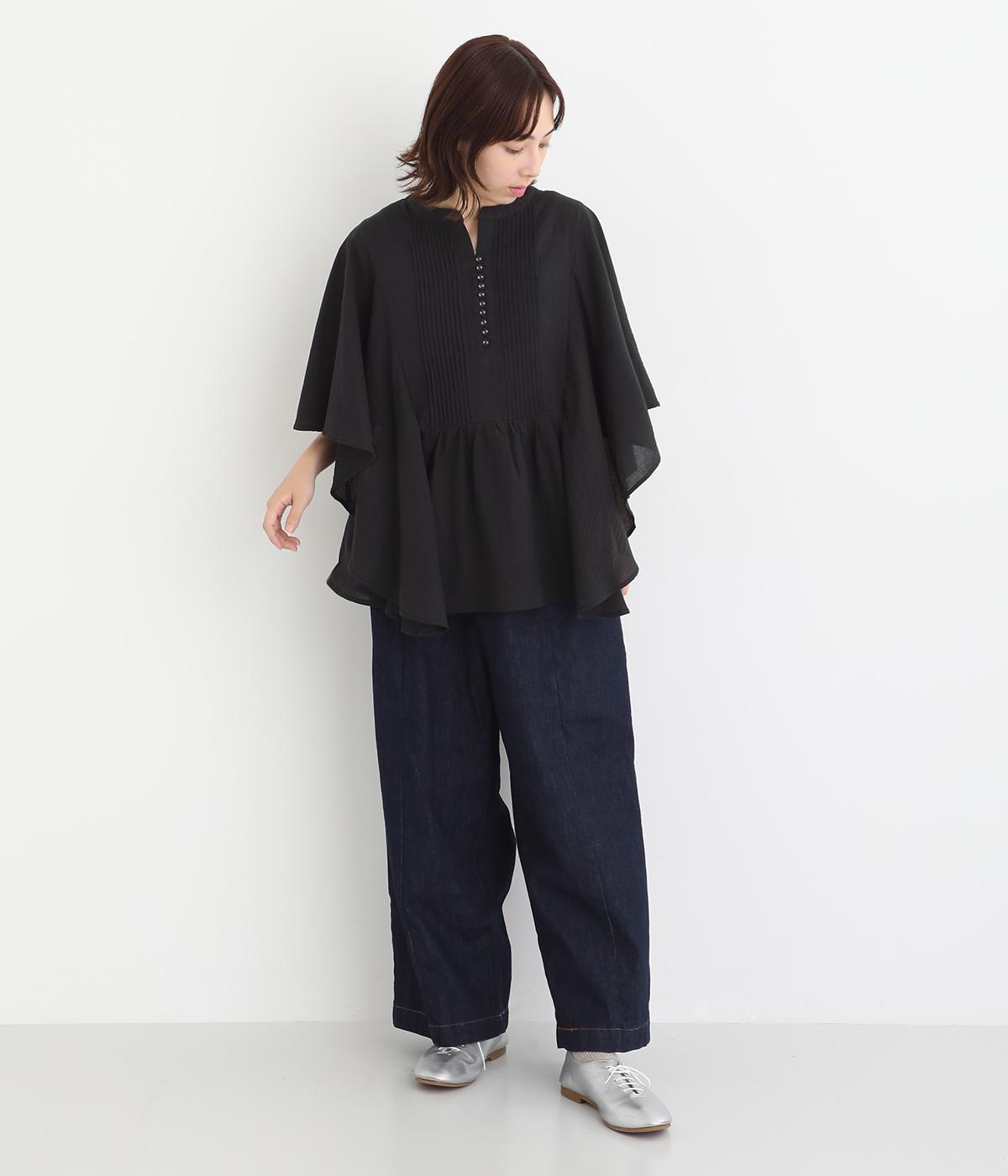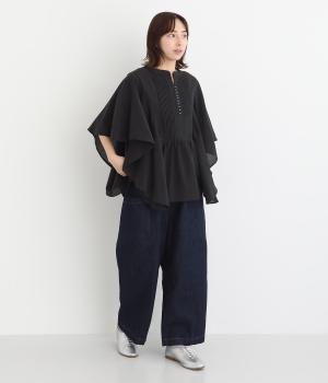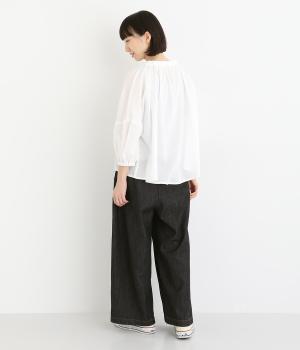ほどよい肉感がありながらもやわらかな風合いを持ち、はき心地にこだわったデニム生地を使用しています。着込むほどになじんでいき、風合いや色合いの変化をたのしめるのも魅力です。