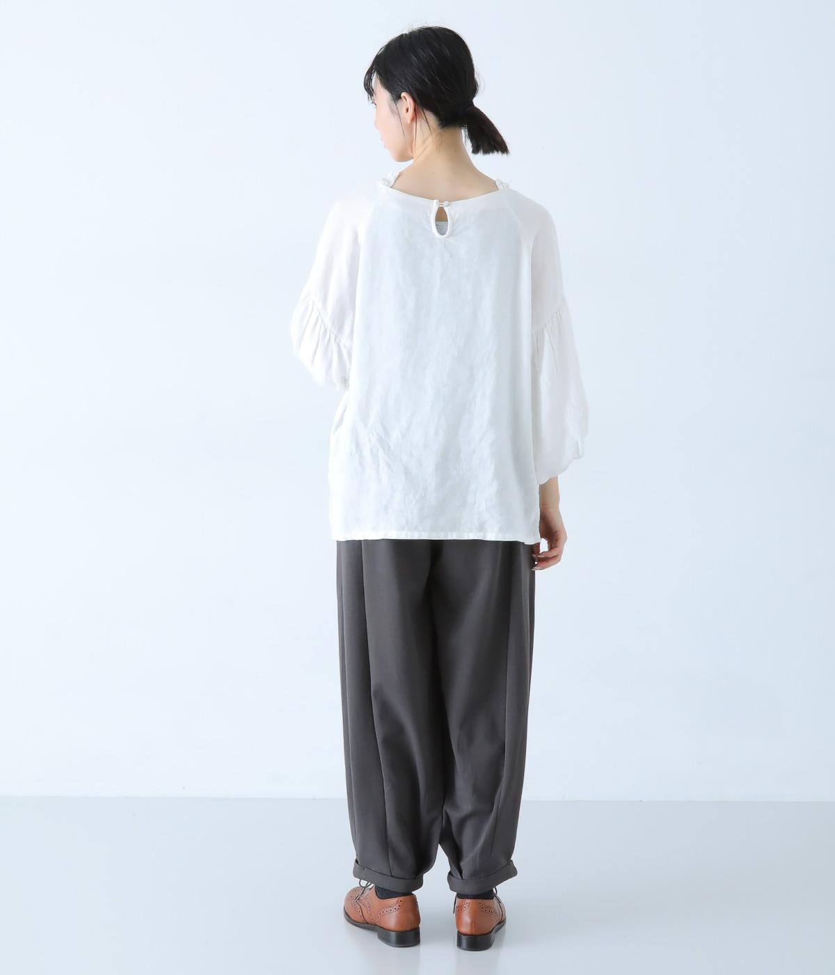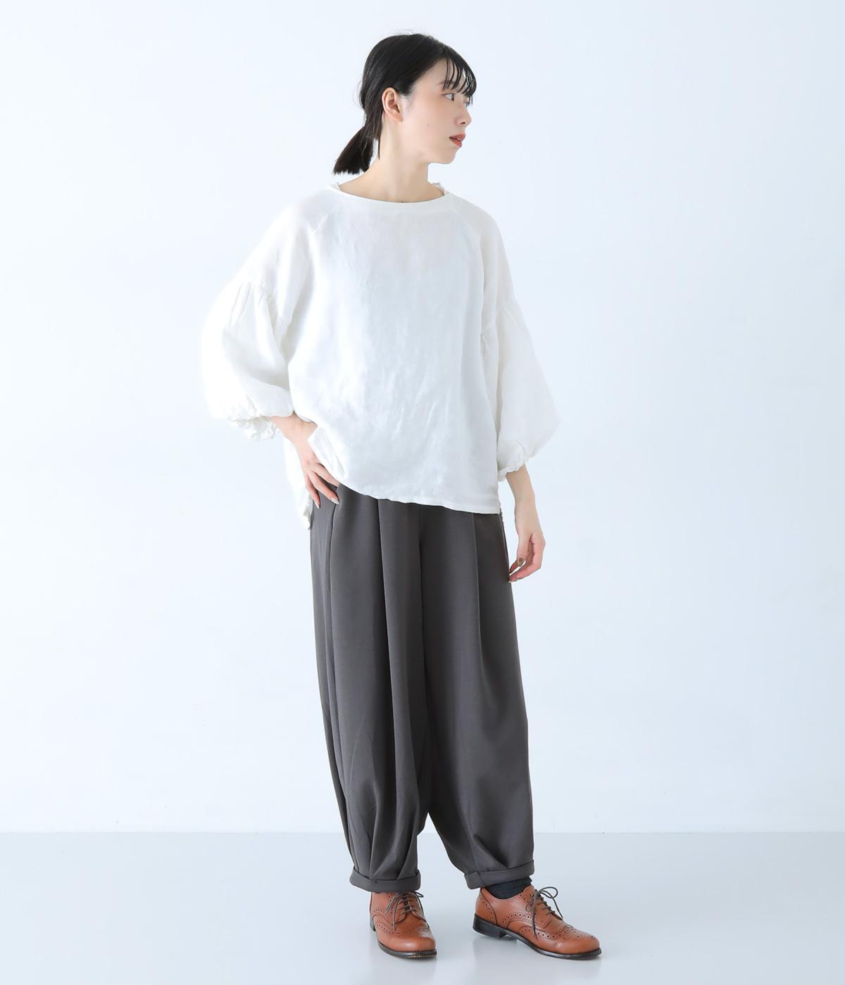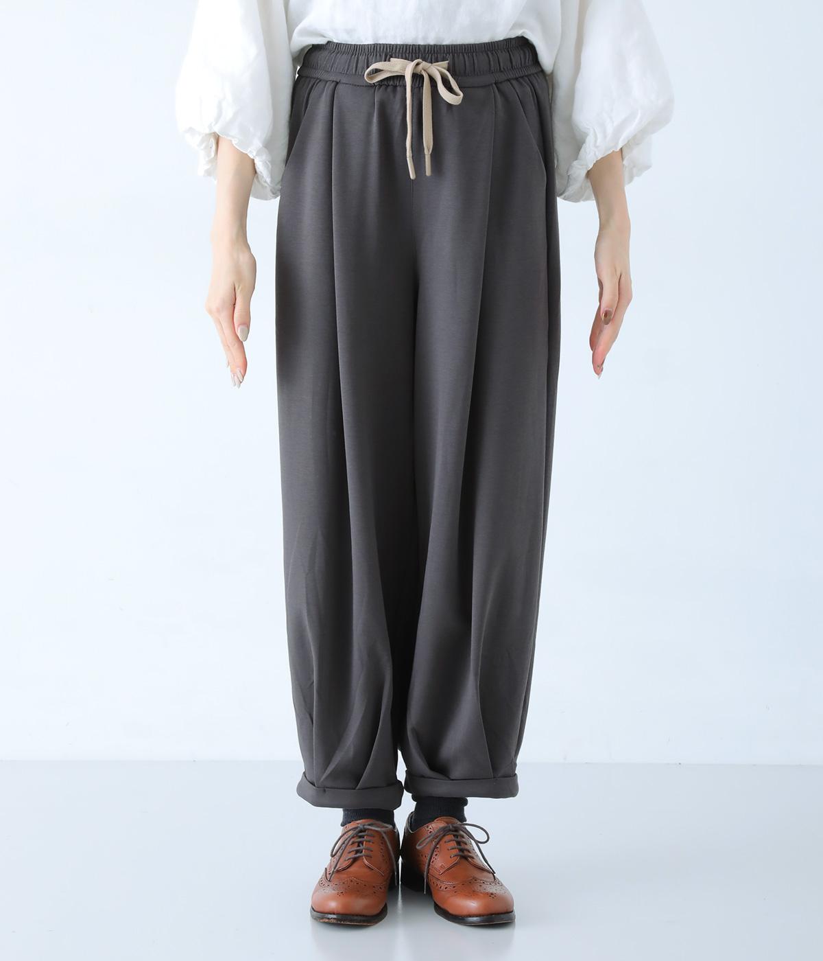 裾にタックを施したふんわりシルエットがかわいいパンツ。ウエストは総ゴム仕様で、ヒモによるサイズ調整も叶います。シンプルにボトムと合わせるのはもちろん、ワンピースやチュニックのインナーパンツとしてもおすすめ。