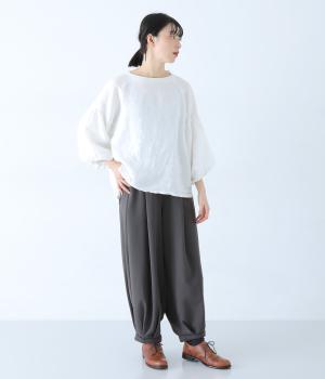 滑らかなコットンのポンチ素材を使用。ほどよい厚みで伸縮性があり、デイリー使いにぴったり。快適にはけてラフすぎない、大人らしい装いが楽しめる生地です。