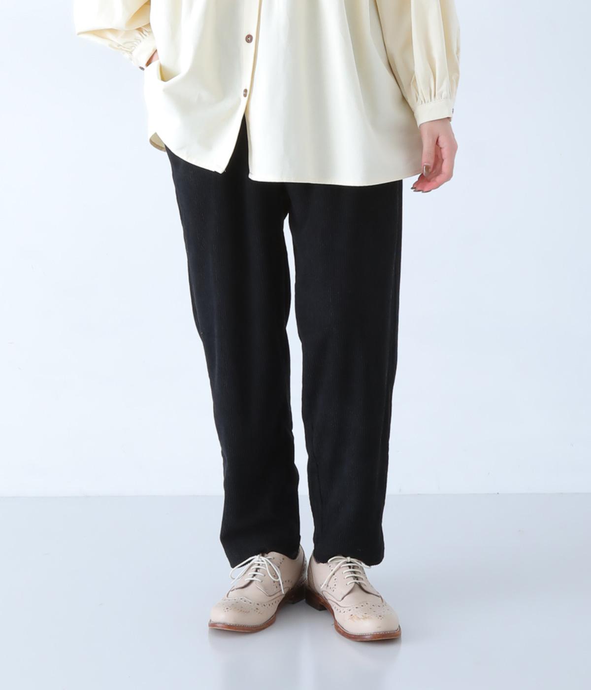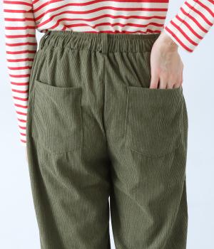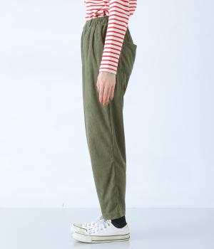 とてもやわらかく軽いはき心地のコール天素材。とろんとした落ち感があり、シルエットがきれいに出るのもうれしいポイント。やさしい肌触りが気持ちよく、季節のおしゃれの定番として活躍してくれます。