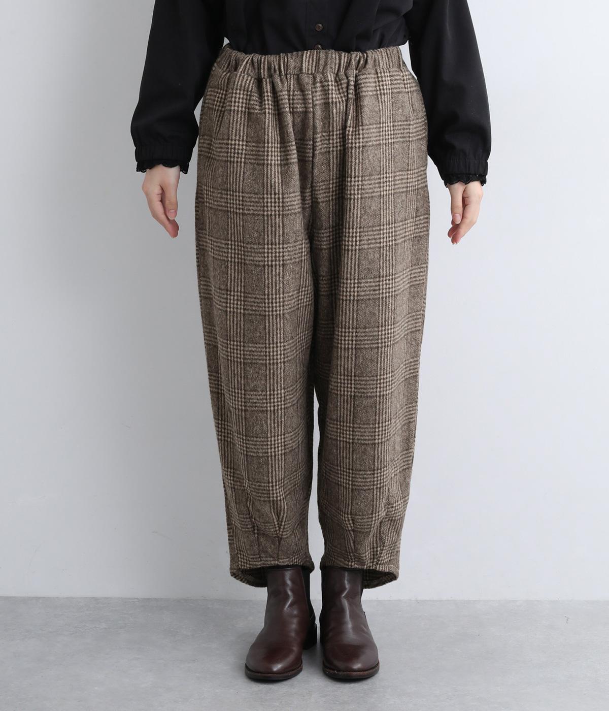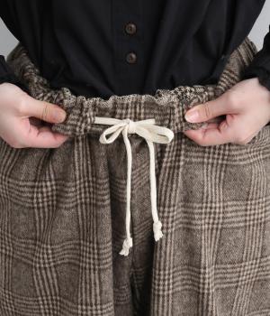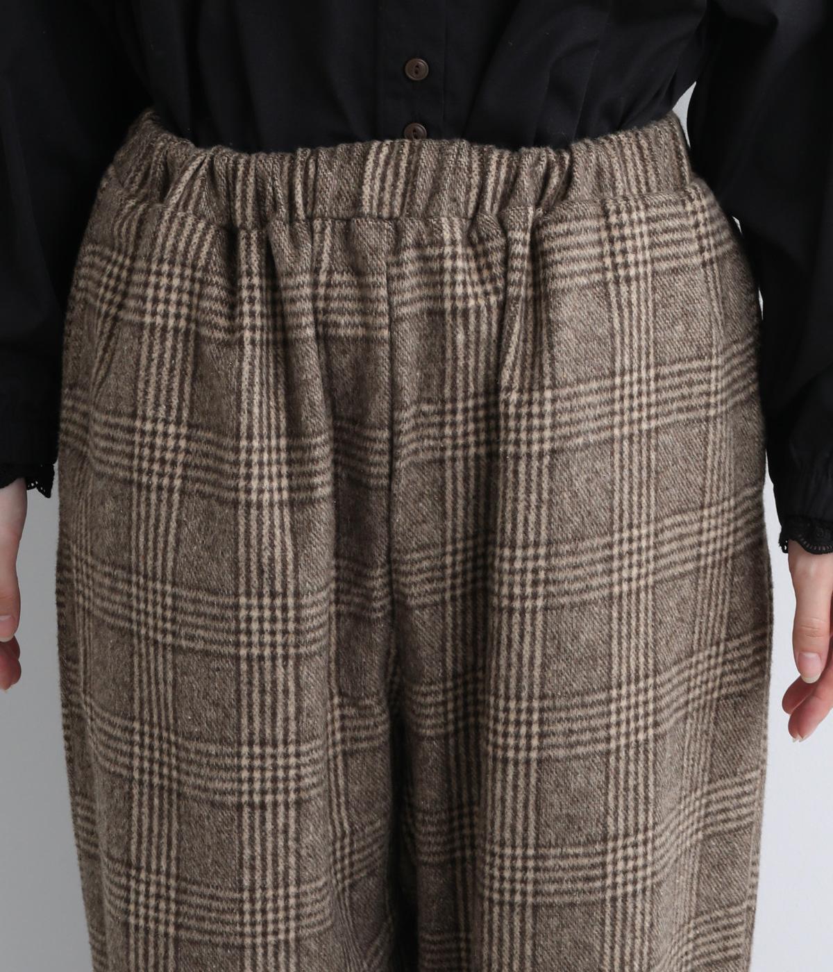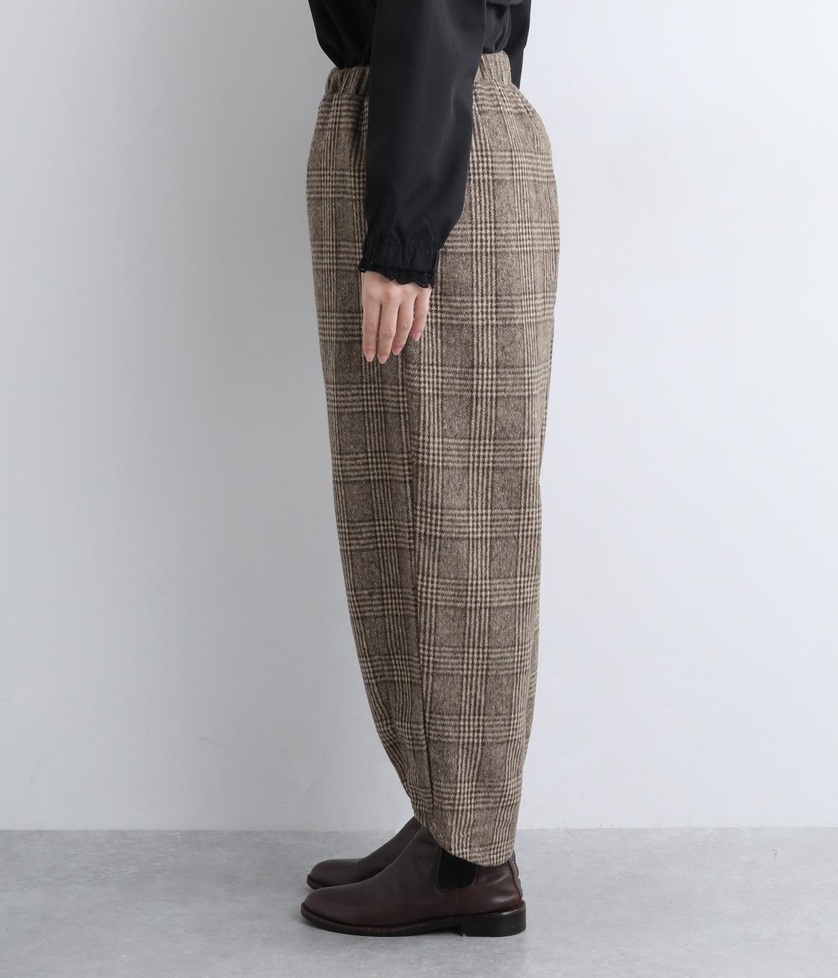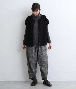 ヒップや腰まわりにゆとりをもたせた、リラックス感のあるシルエット。裾にかけて少し細くなるテーパードラインが、すっきりとした印象をあたえます。後ろの裾は、あえて長めにラウンドさせることで、抜け感をプラスし、足元を美しく見せてくれるデザインに。トップスを選ばず、上品な大人カジュアルに仕上がります。