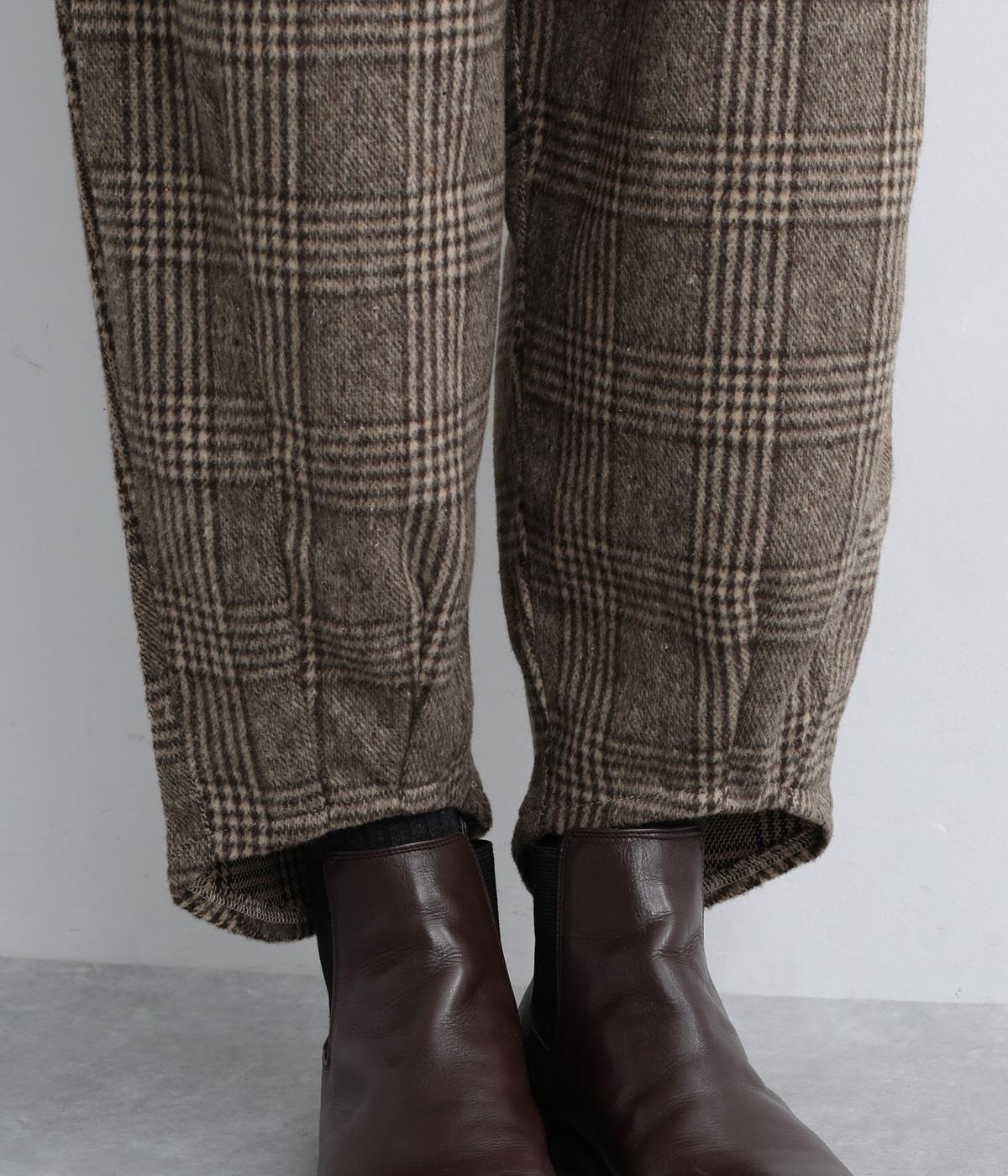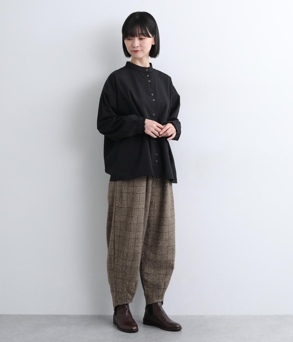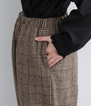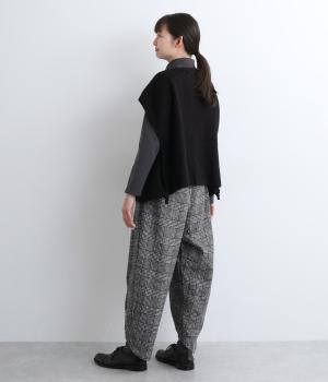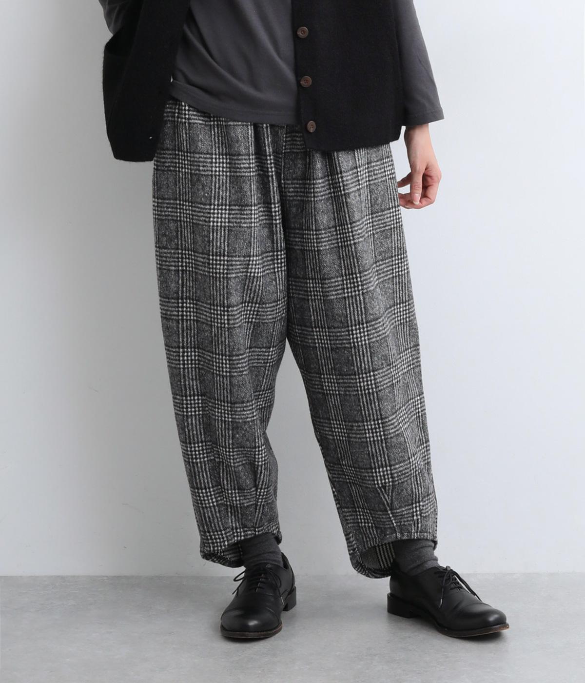 ヒップや腰まわりにゆとりをもたせた、リラックス感のあるシルエット。裾にかけて少し細くなるテーパードラインが、すっきりとした印象をあたえます。後ろの裾は、あえて長めにラウンドさせることで、抜け感をプラスし、足元を美しく見せてくれるデザインに。トップスを選ばず、上品な大人カジュアルに仕上がります。