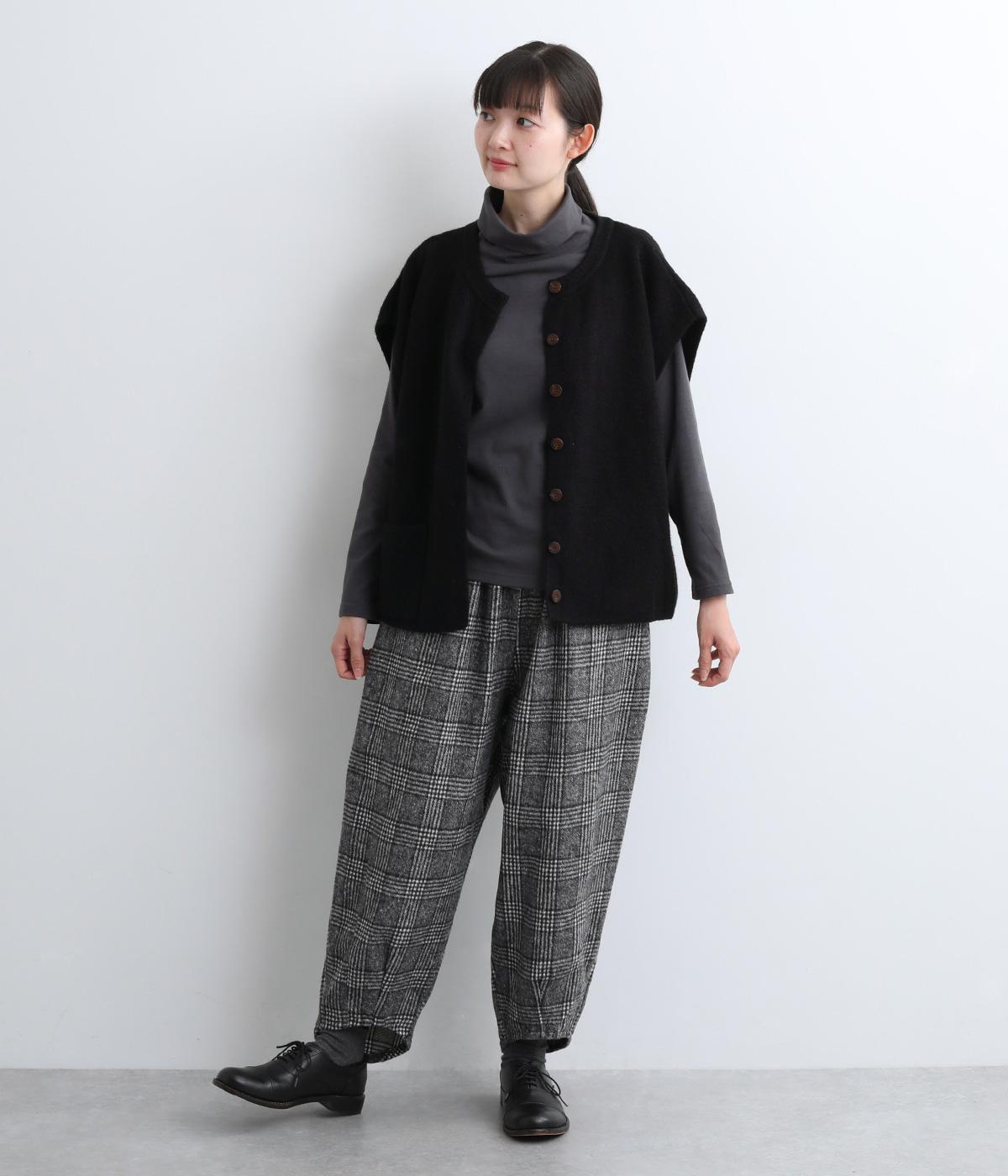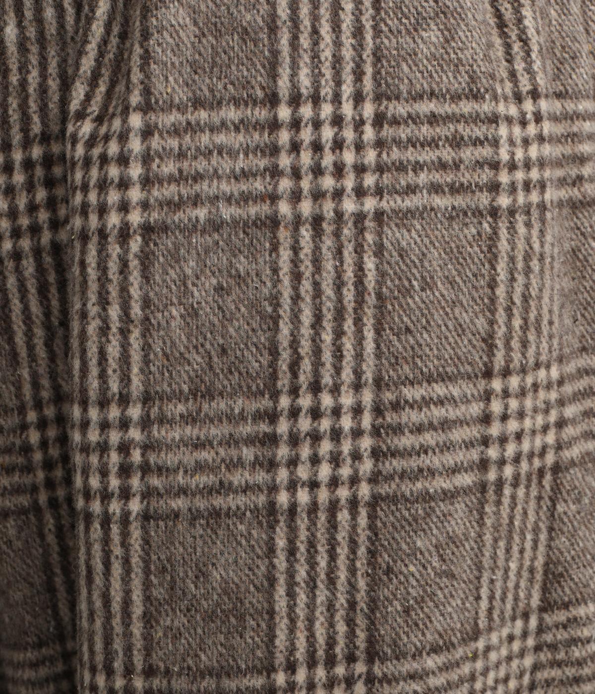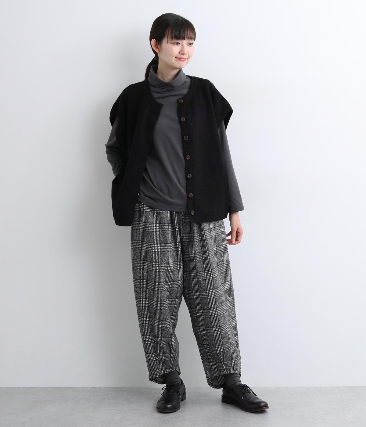 やわらかく起毛したウール混素材を使用しました。ふっくらとなめらかな手触りで、あたたかみのある生地感が特徴です。ウールの上品な風合いにポリエステルを混ぜることで、軽さと丈夫さもプラスしました。