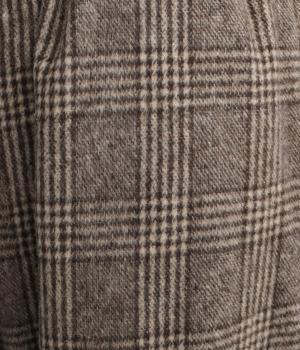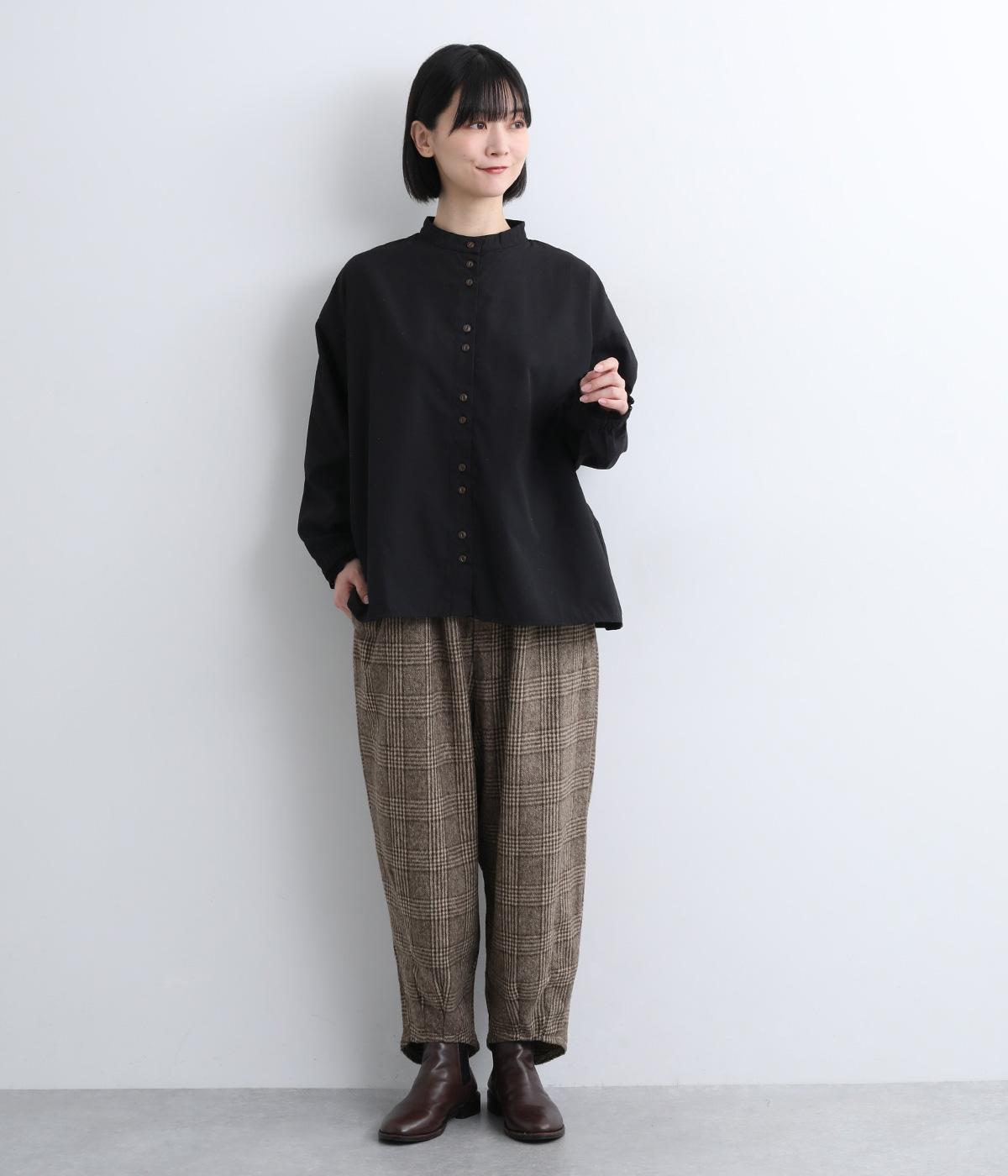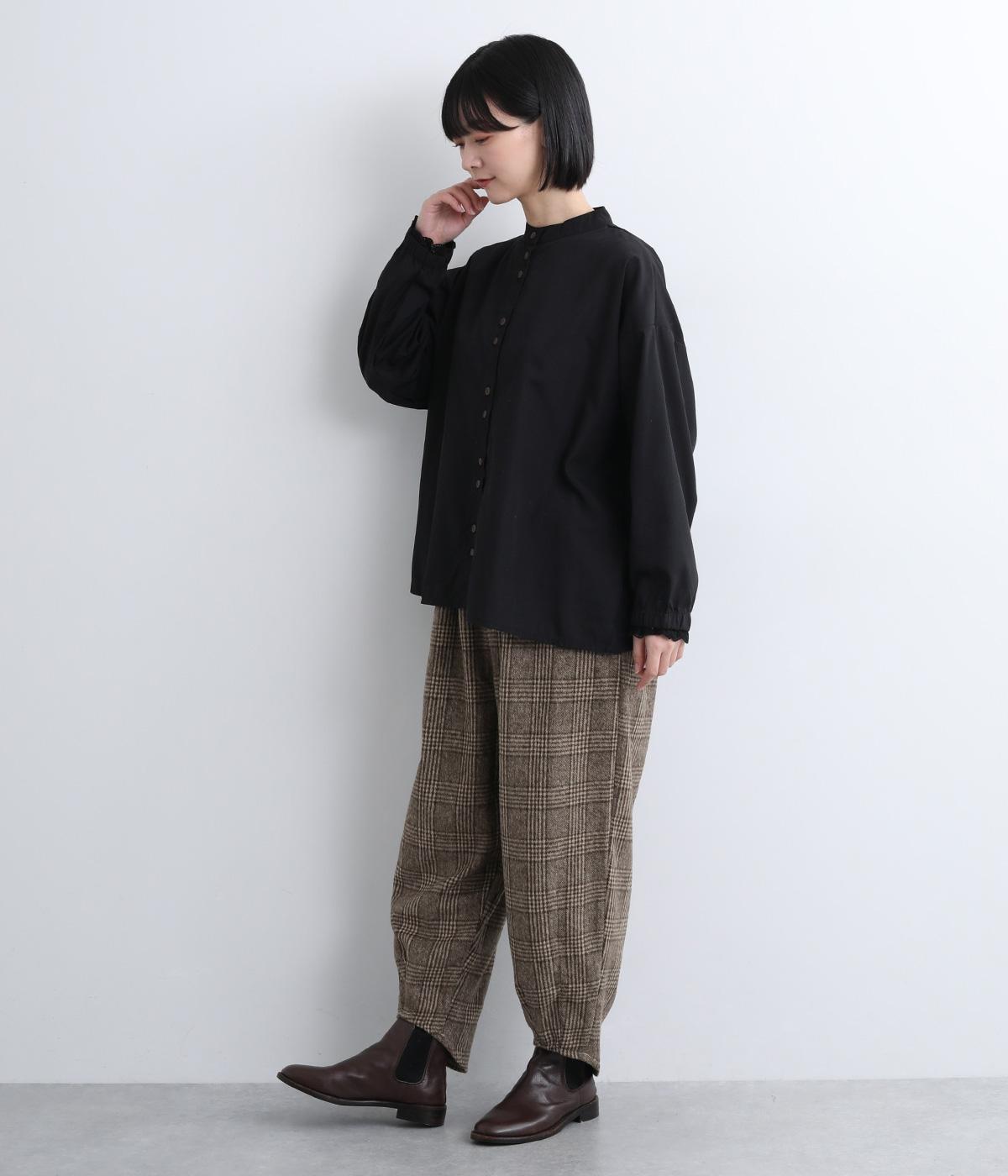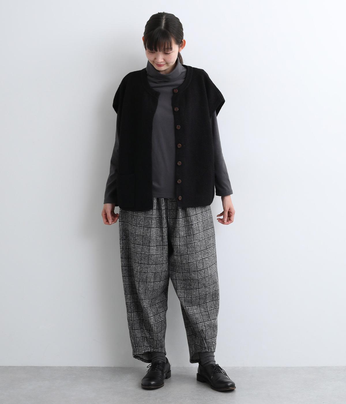 やわらかく起毛したウール混素材を使用しました。ふっくらとなめらかな手触りで、あたたかみのある生地感が特徴です。ウールの上品な風合いにポリエステルを混ぜることで、軽さと丈夫さもプラスしました。