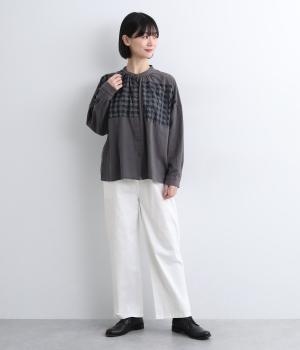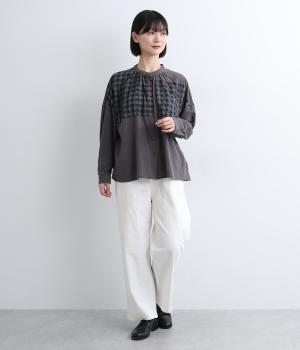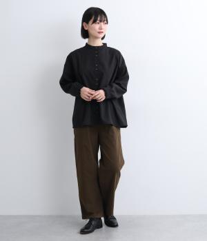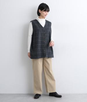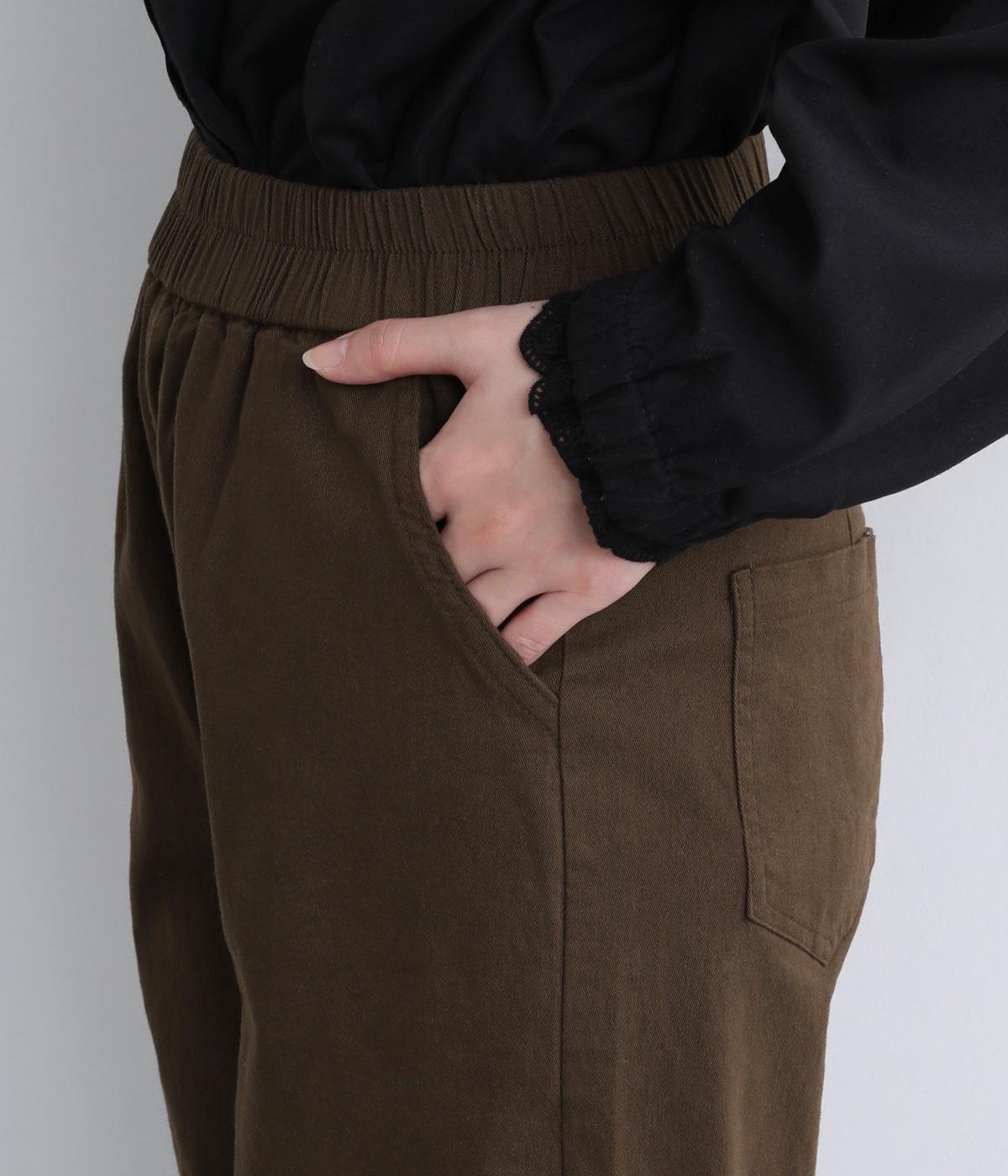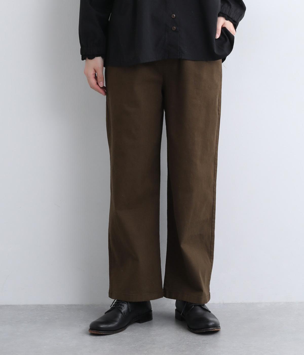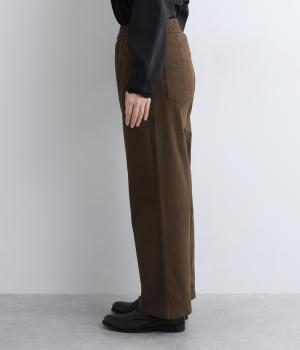 やわらかで自然な風合いのコットン素材に、ほんのり起毛を施してぬくもりをプラスしました。ストレッチがきいているので動きやすく、リラックスしたはき心地です。ほどよい厚みとハリがあり、シルエットをきれいに保ちながら軽やかに着こなせます。