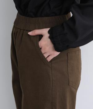 毎日のコーディネートに取り入れやすい、ベーシックなデザインです。ゆったりとしたはき心地ながら、だらしなく見えない絶妙なシルエットが魅力です。ウエストは総ゴム仕様なので、はき心地も◎。季節を通してはけて、さまざまなトップスとも相性がよい、頼れる定番パンツです。