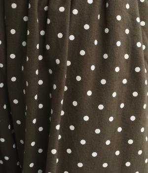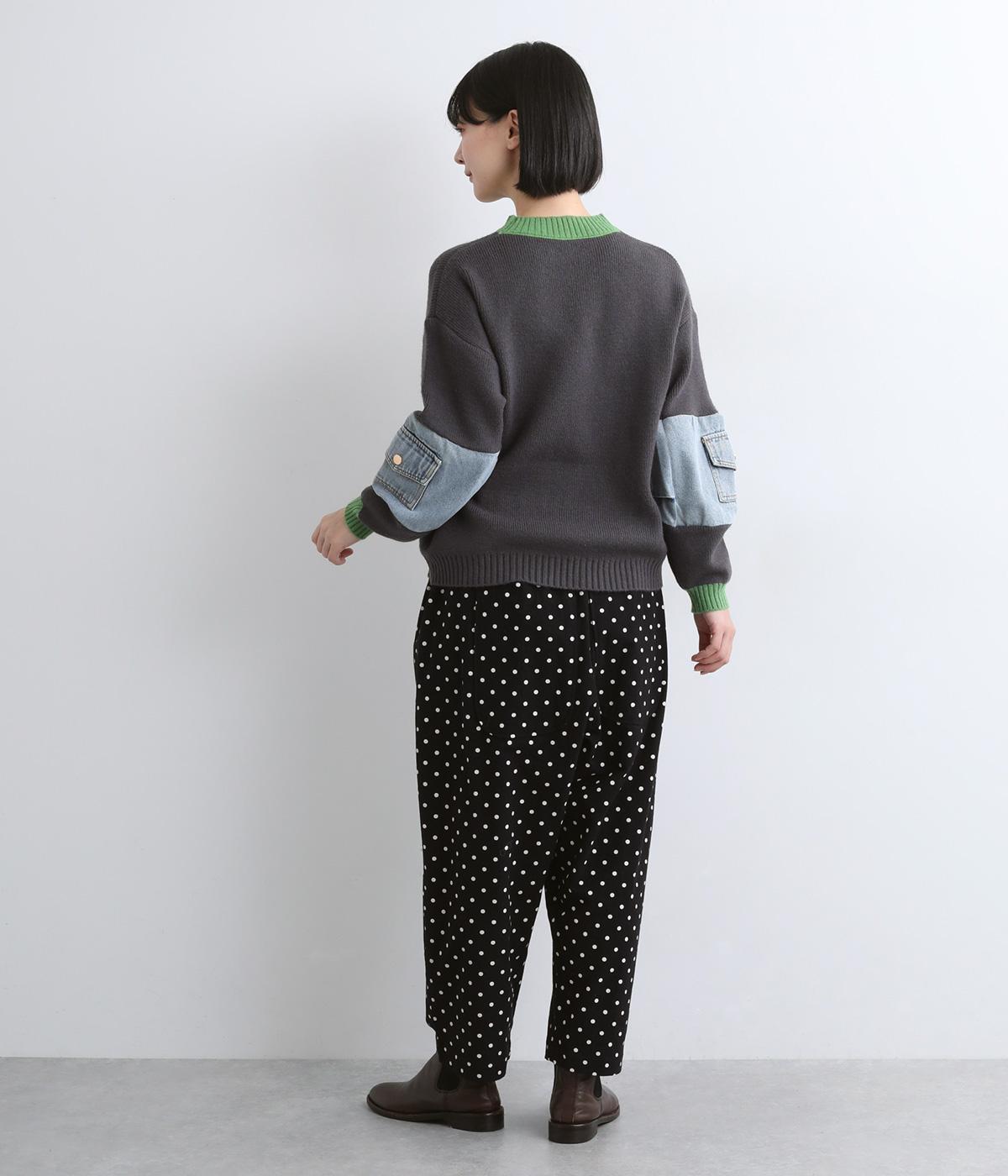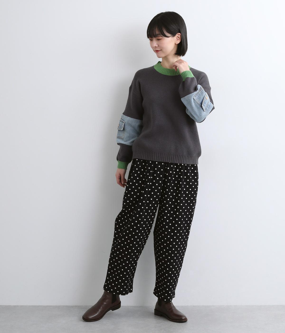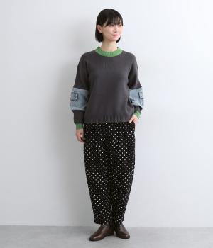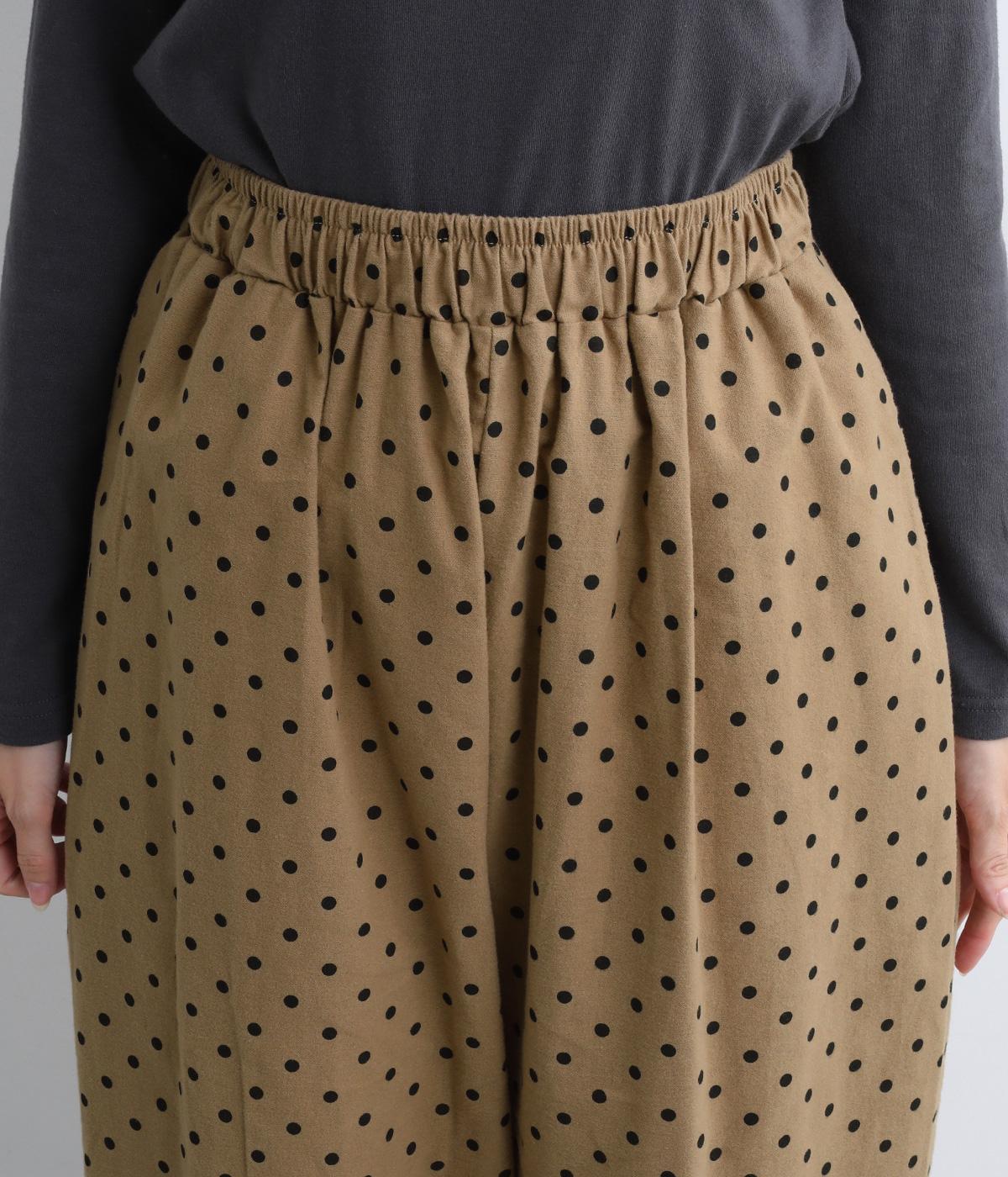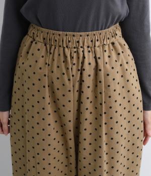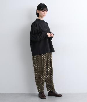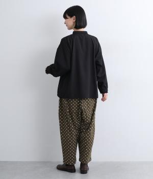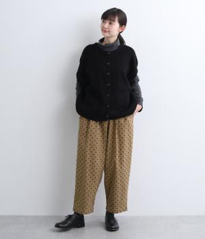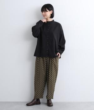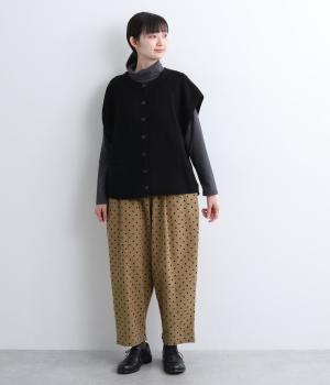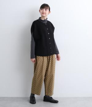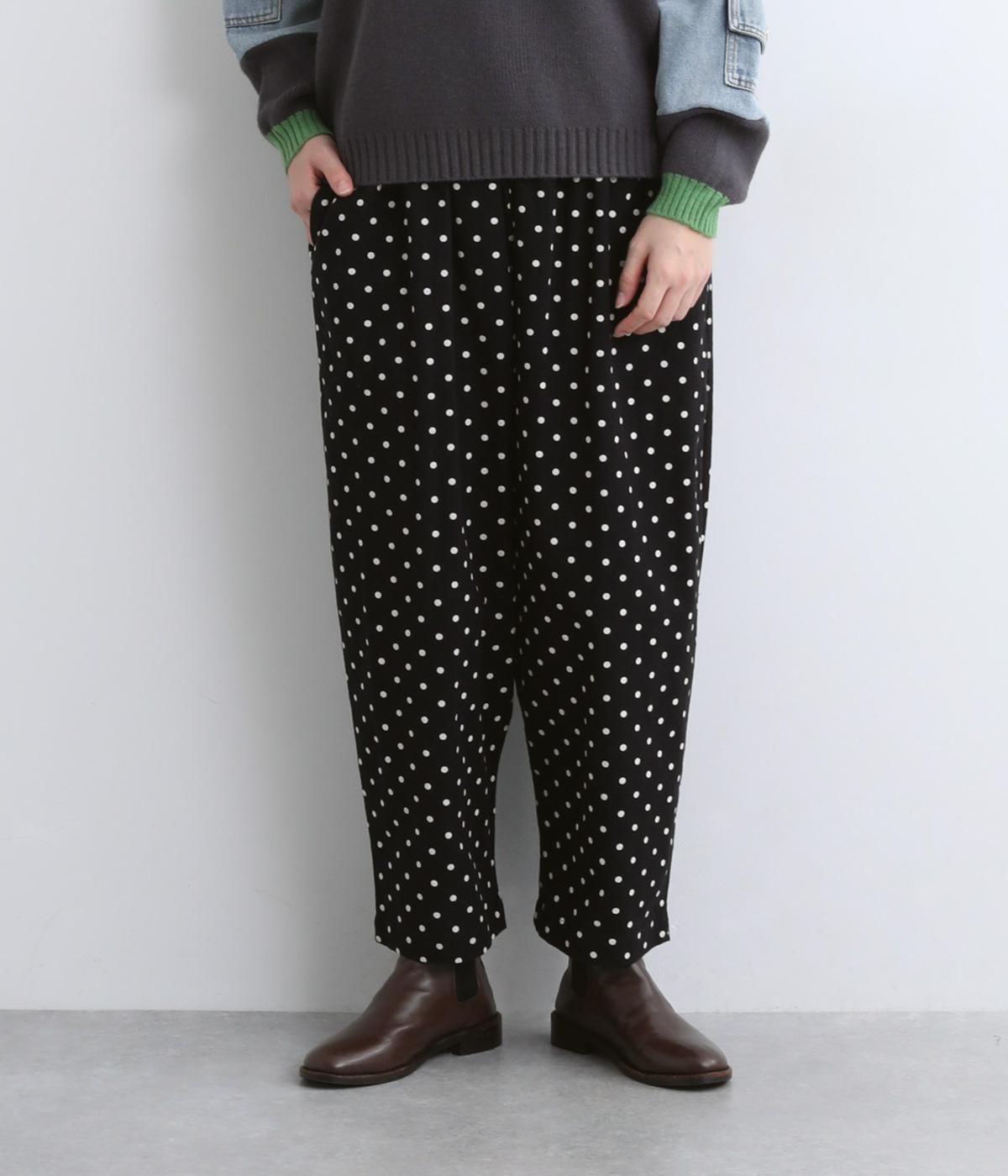 ふんわりとしたサルエルパンツに、立体感を引き立てる深めのヒップポケットをプラスしました。バックスタイルにも表情があり、どの角度から見ても印象的です。ゆとりのあるシルエットで動きやすく、ドット柄が軽やかさを添えた、カジュアルで上品な一本です。