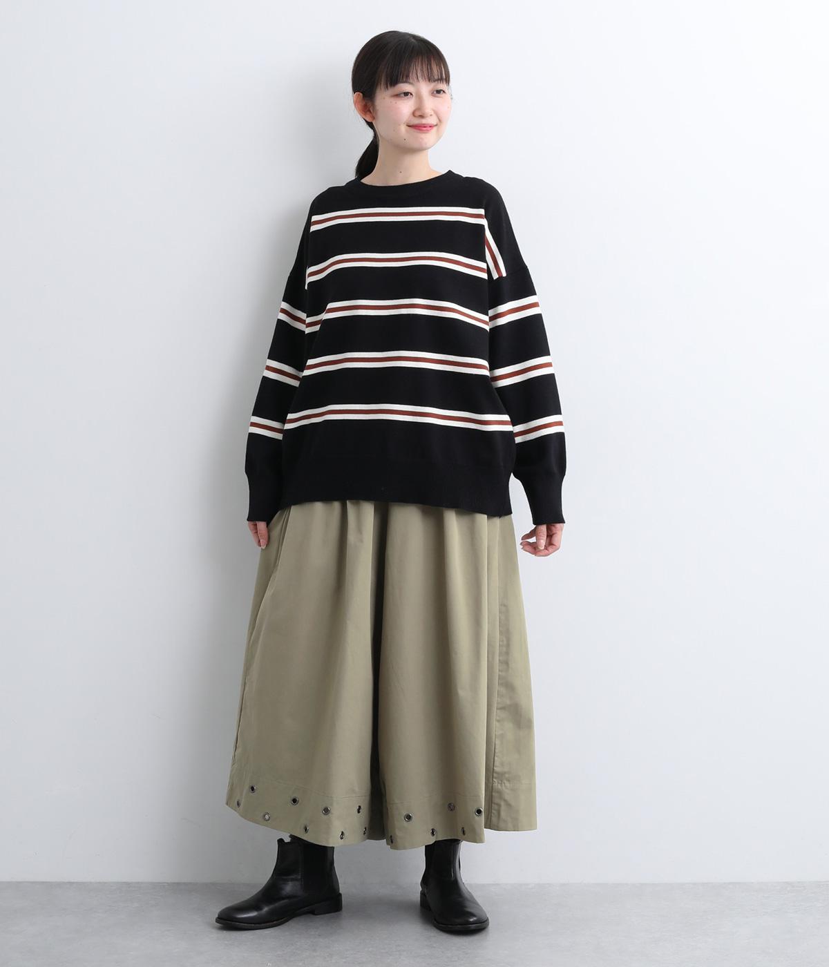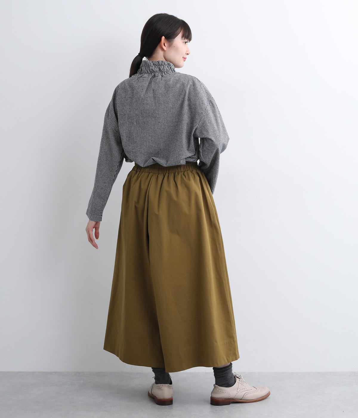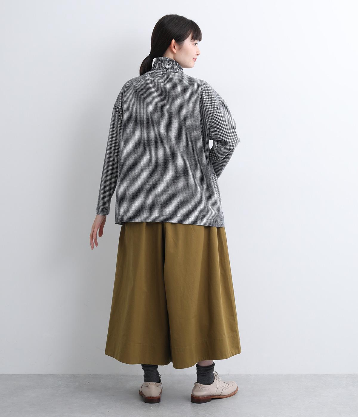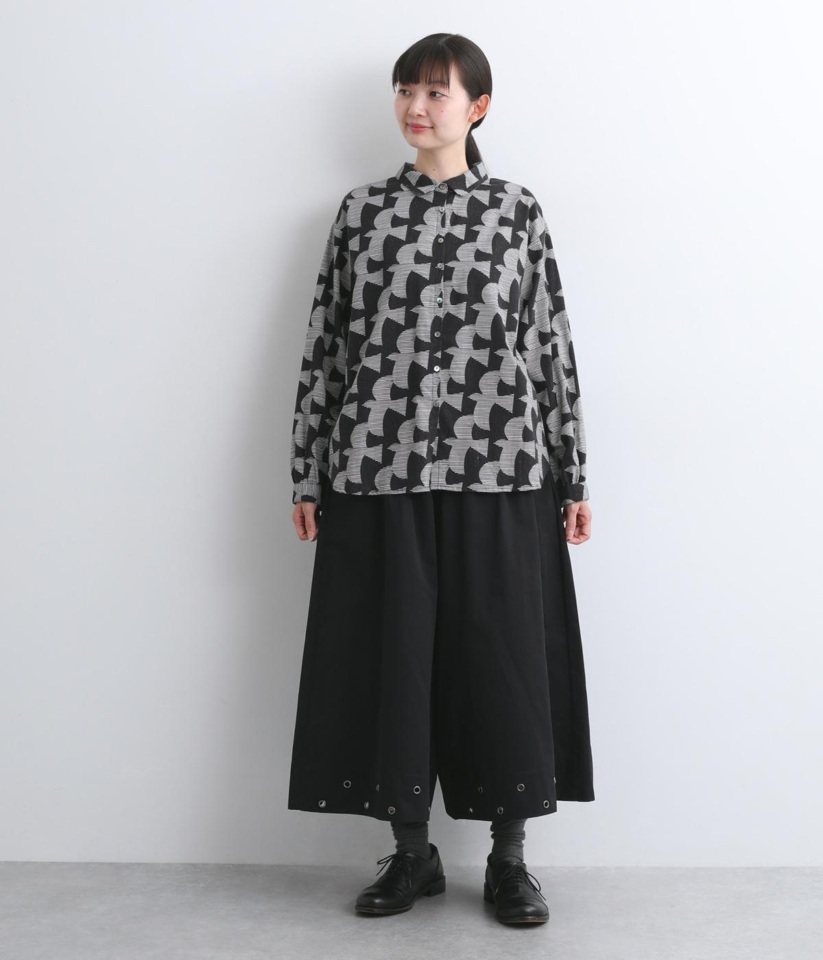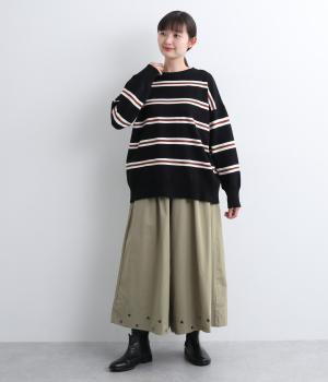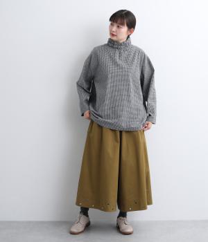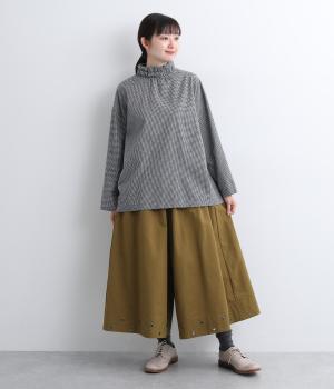 裾にあしらわれたアイレットが、シンプルなデザインにさりげない個性を添えるワイドパンツです。たっぷりとしたシルエットが体のラインを拾いにくく、リラックスしたはき心地をかなえます。ほどよいハリ感のあるダンプ生地が、立体的なフォルムをキープし、大人のナチュラルスタイルをすっきりとまとめます。