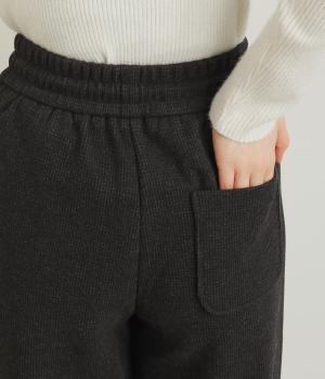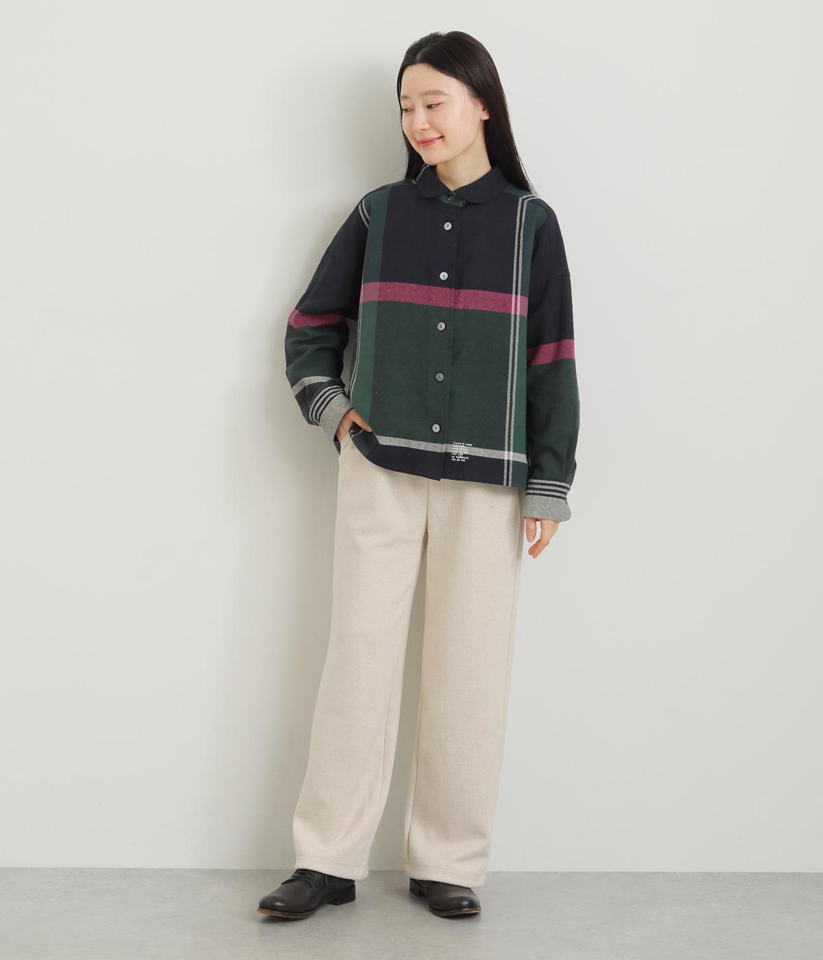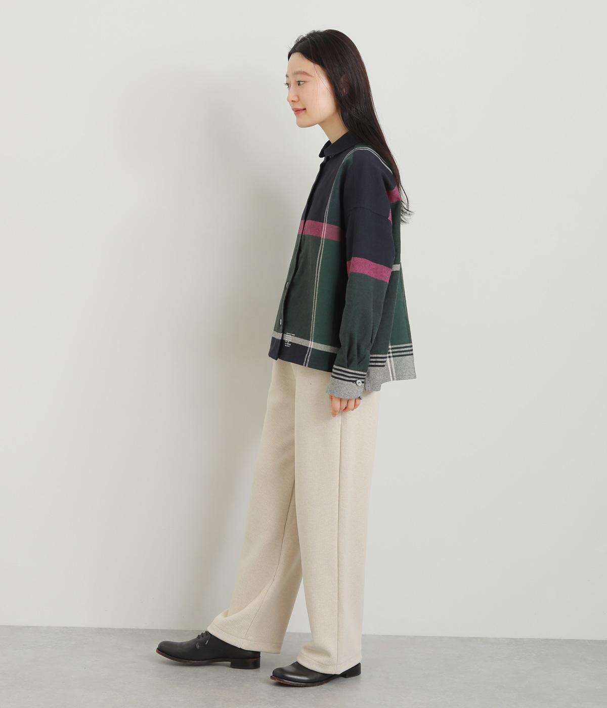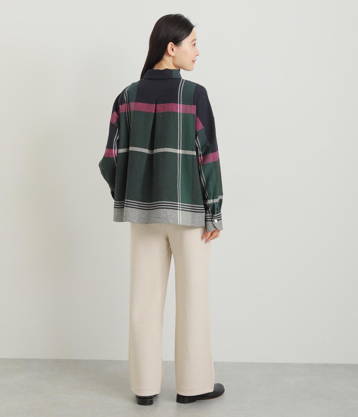 もちっとしたやわらかな肌触りに伸縮をきかせたストレスフリーなチェック柄生地を採用。ほわっとした微起毛の表面感で着用感も見た目もあたたかです。