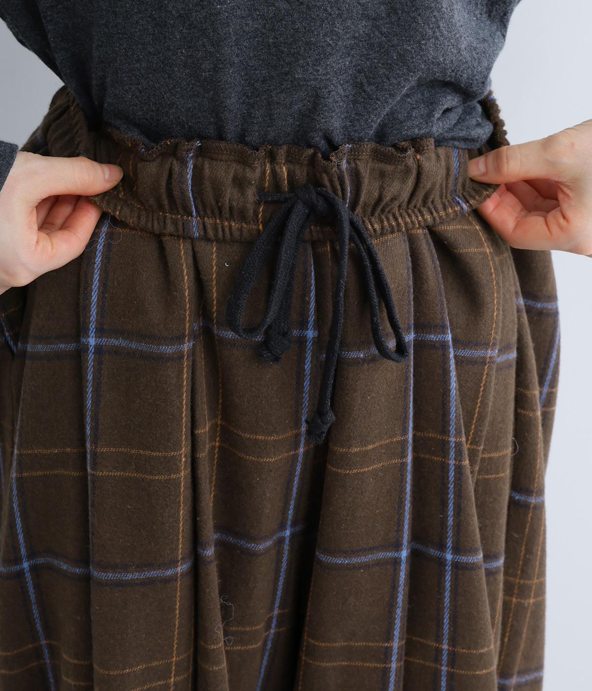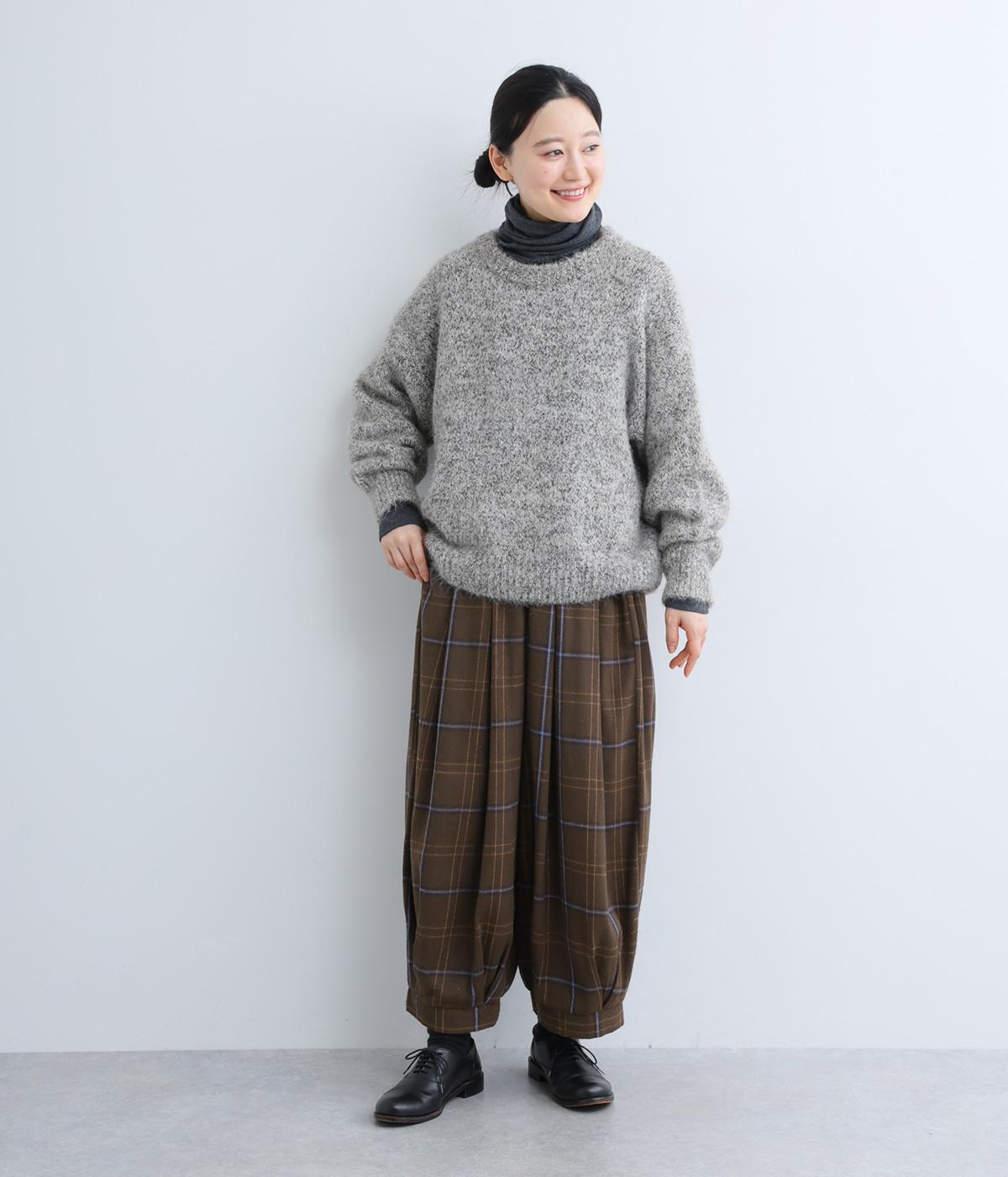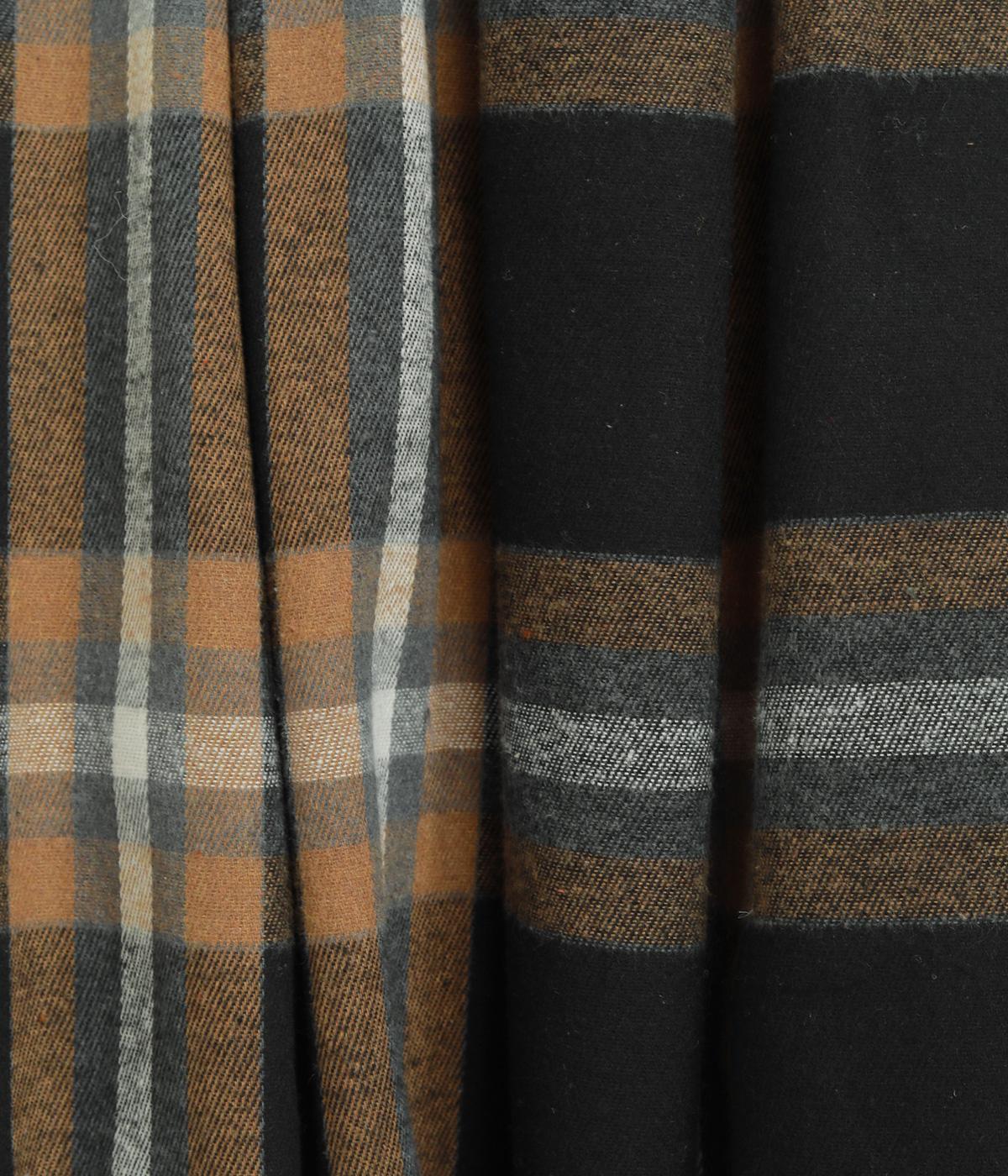 厚みをおさえ、軽くやわらかな風合いのイージーなはき心地を叶える生地感です。表面のふっくらとした起毛とチェック柄が着こなしに季節感を添えてくれます。