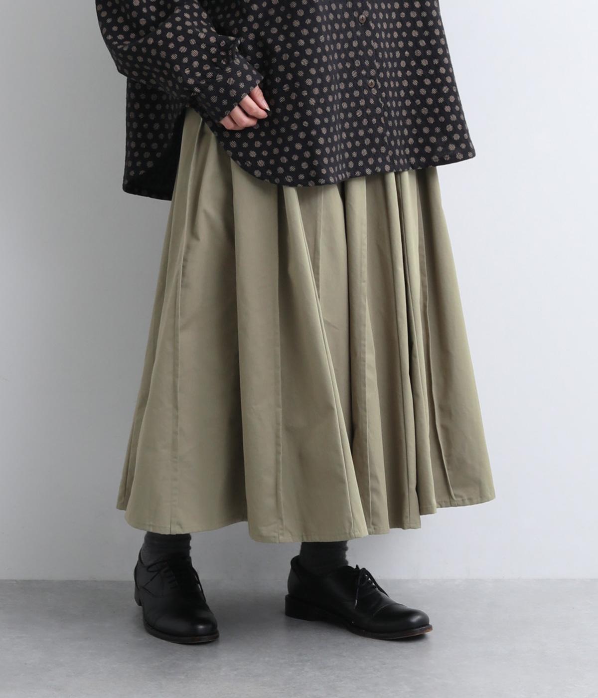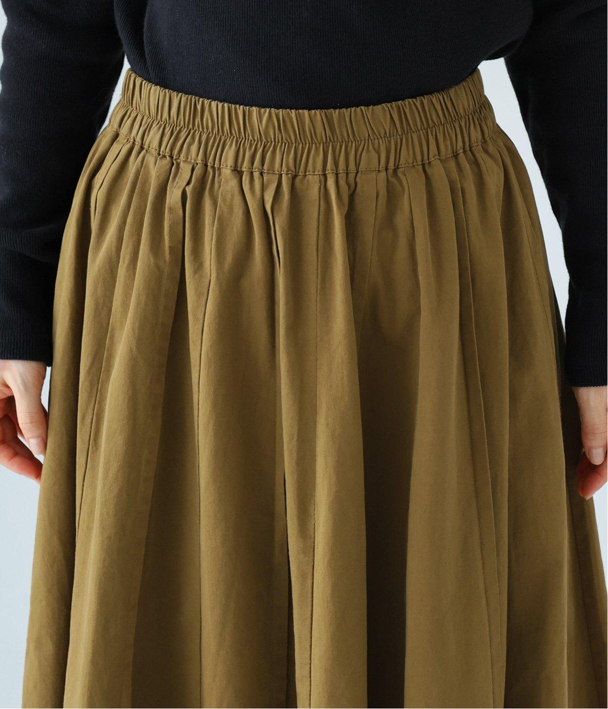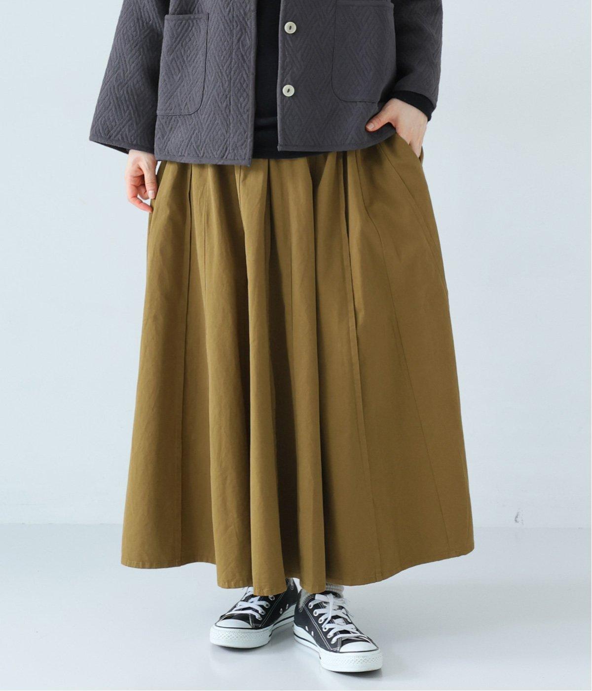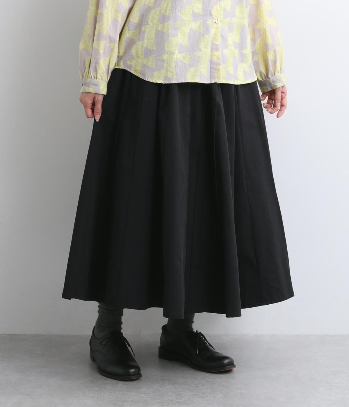 縦ラインにタックや切り替えを入れ、裾に向かってボリュームを出したスカート。カジュアルな生地感とフェミニンなシルエットのバランスが◎です。ウエストは総ゴム仕様で、快適な着用感にもこだわりました。