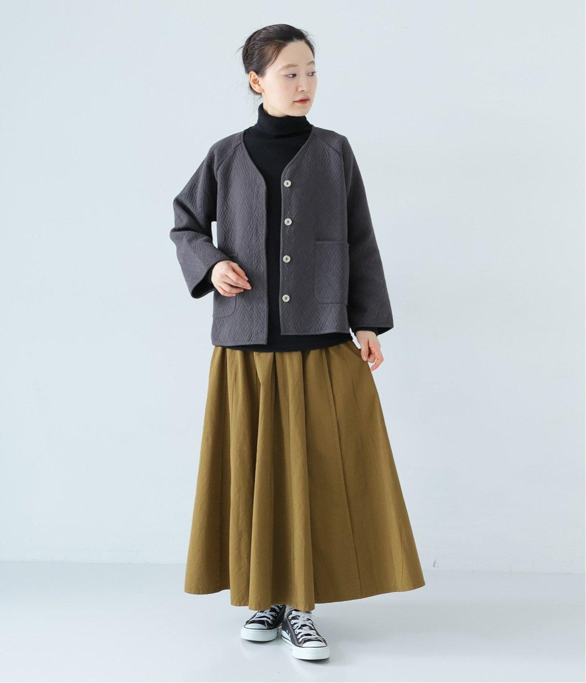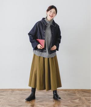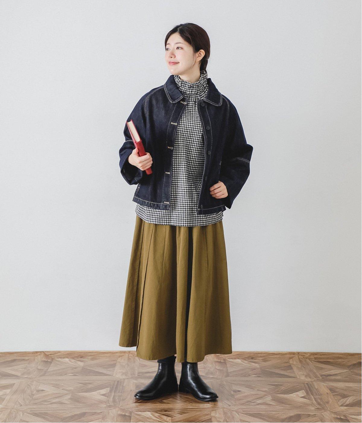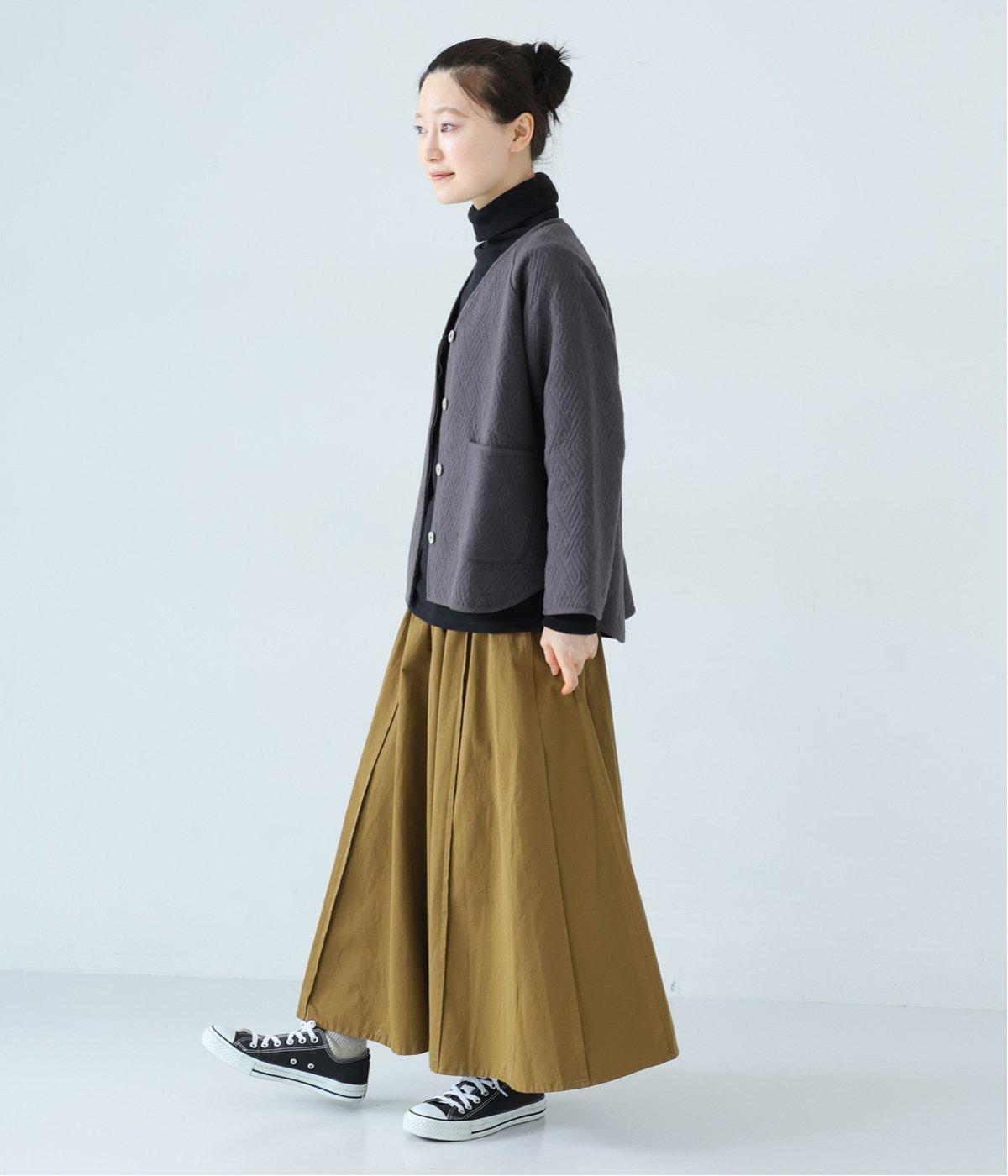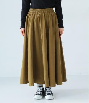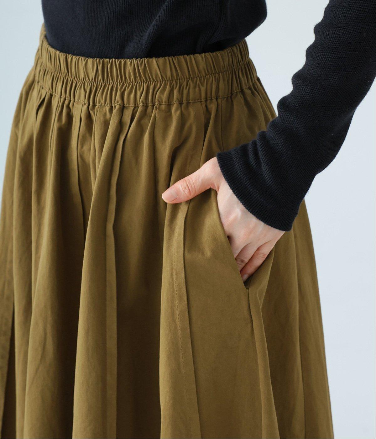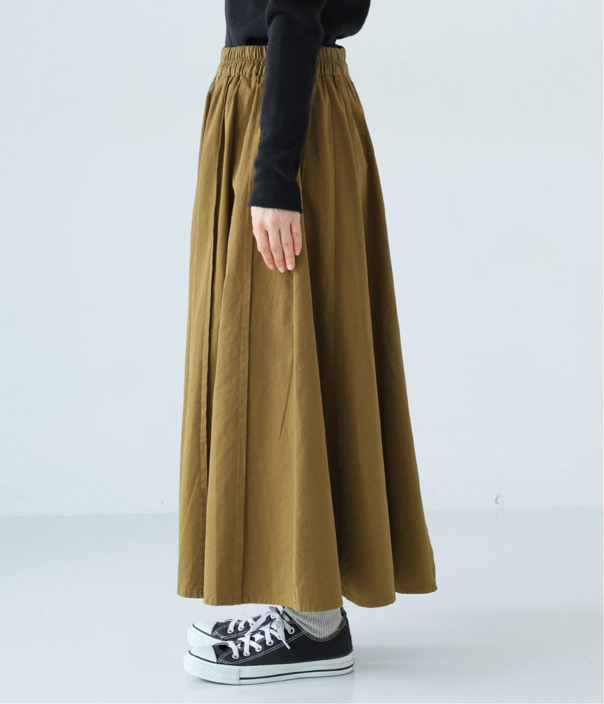 縦ラインにタックや切り替えを入れ、裾に向かってボリュームを出したスカート。カジュアルな生地感とフェミニンなシルエットのバランスが◎です。ウエストは総ゴム仕様で、快適な着用感にもこだわりました。